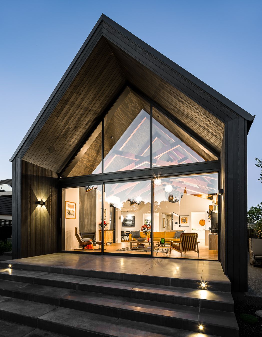 Lightweight timber takes the place of concrete, and the home is well elevated from the ground to deal with any potential flooding. And, instead of being composed of white concrete, as many of the early Warren and Mahoney designs were, it was to be black.