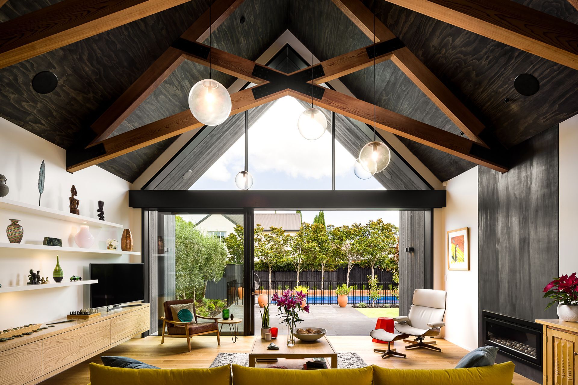 Just prior to the earthquakes, a local couple approached Young Architects’ director Greg Young to design for them a simple, gable form house in Merivale, based on classic 1970s Warren and Mahoney design features, similar to their previous home. Little did they know that this was to be the start of an almost ten-year long journey to reach the final iteration of their dream home.