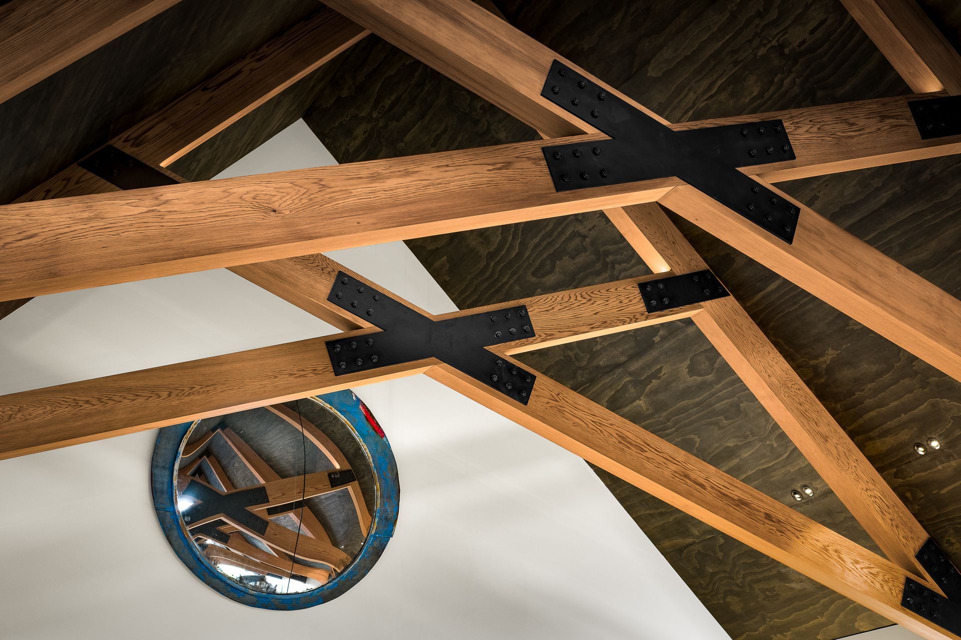 As well as enjoying simple, symmetrical forms, the clients were also drawn to the central Otago aesthetic that focuses on the widespread use of timber both inside and out, with lofty spaces and exposed internal trusses. A mainly raw material palette has been chosen for the home, including the use of stone, timber and steel, similar to many buildings that you might see in the lower South Island.