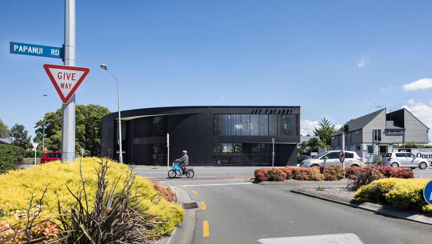 ArchiPro Project Summary - A dynamic orthodontic clinic seamlessly blending residential charm with commercial vitality on Papanui Road, featuring a unique architectural form that balances scale and perspective.