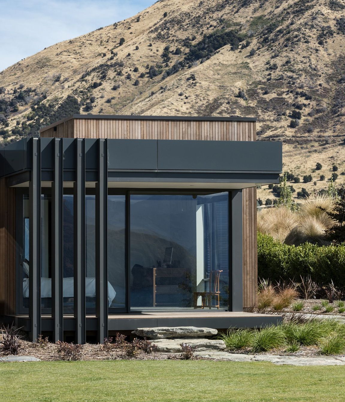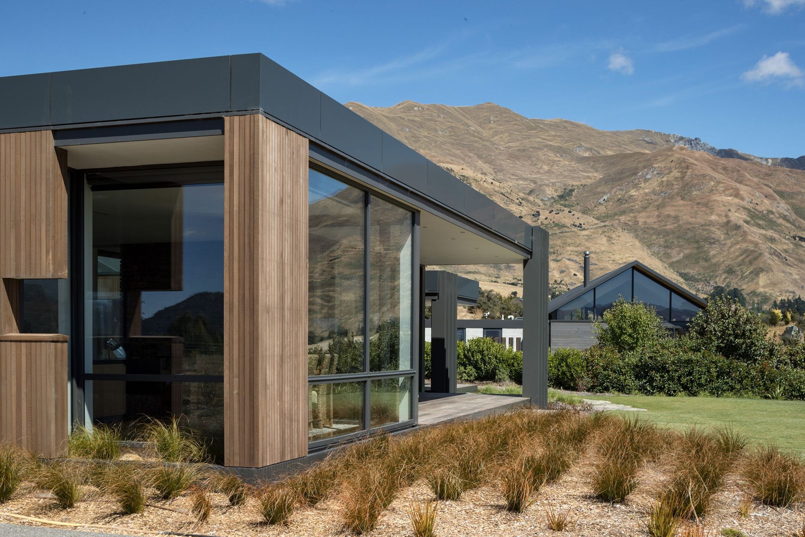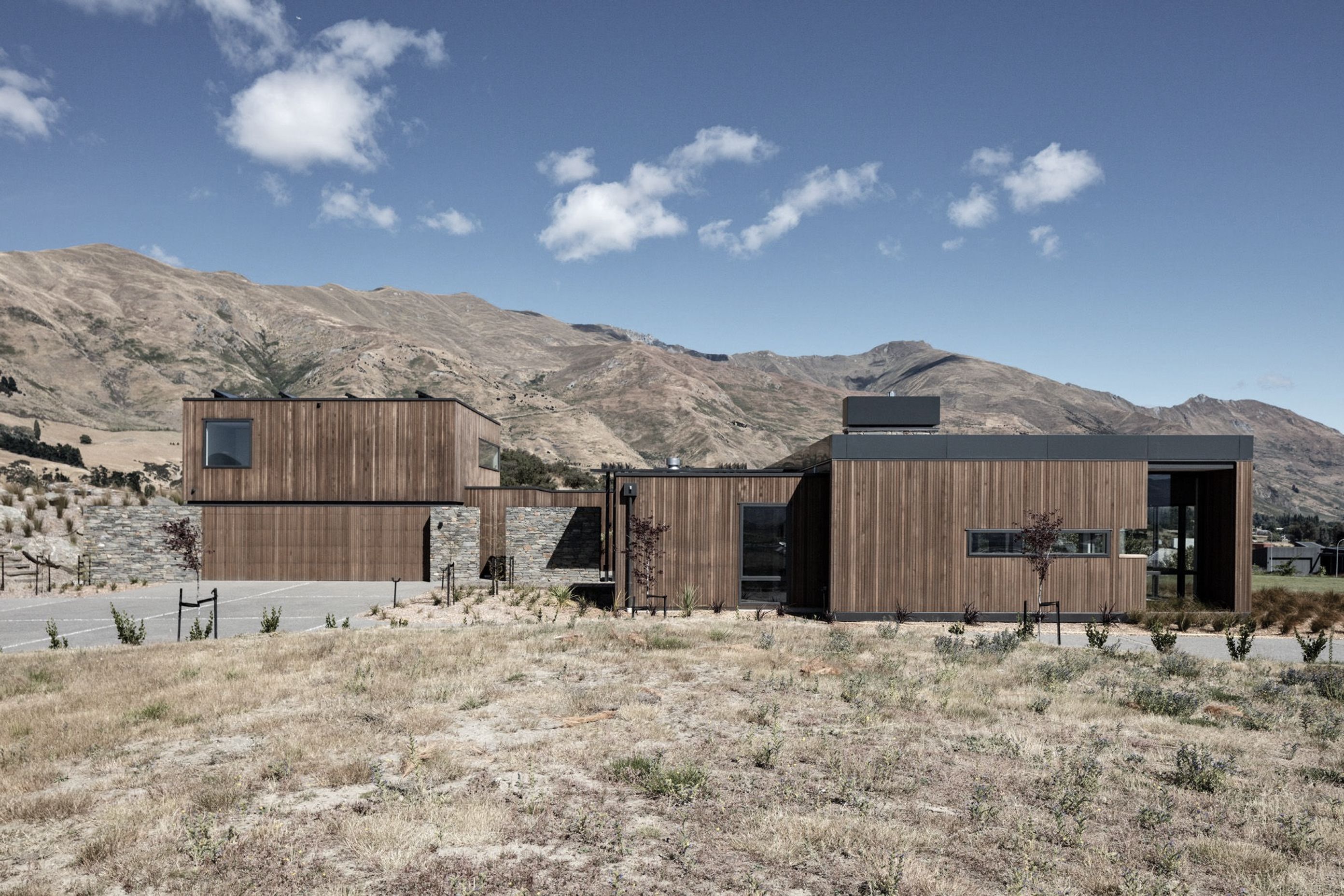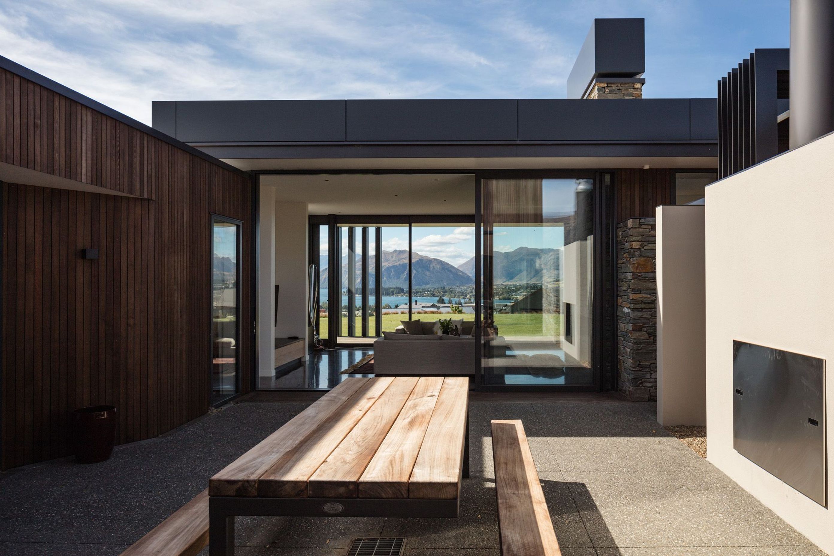 ArchiPro Project Summary - A contemporary family residence designed to harmonize with its elevated landscape, featuring expansive glazing for stunning views of Lake Wanaka and a central courtyard that enhances year-round entertainment and seamless indoor-outdoor living.