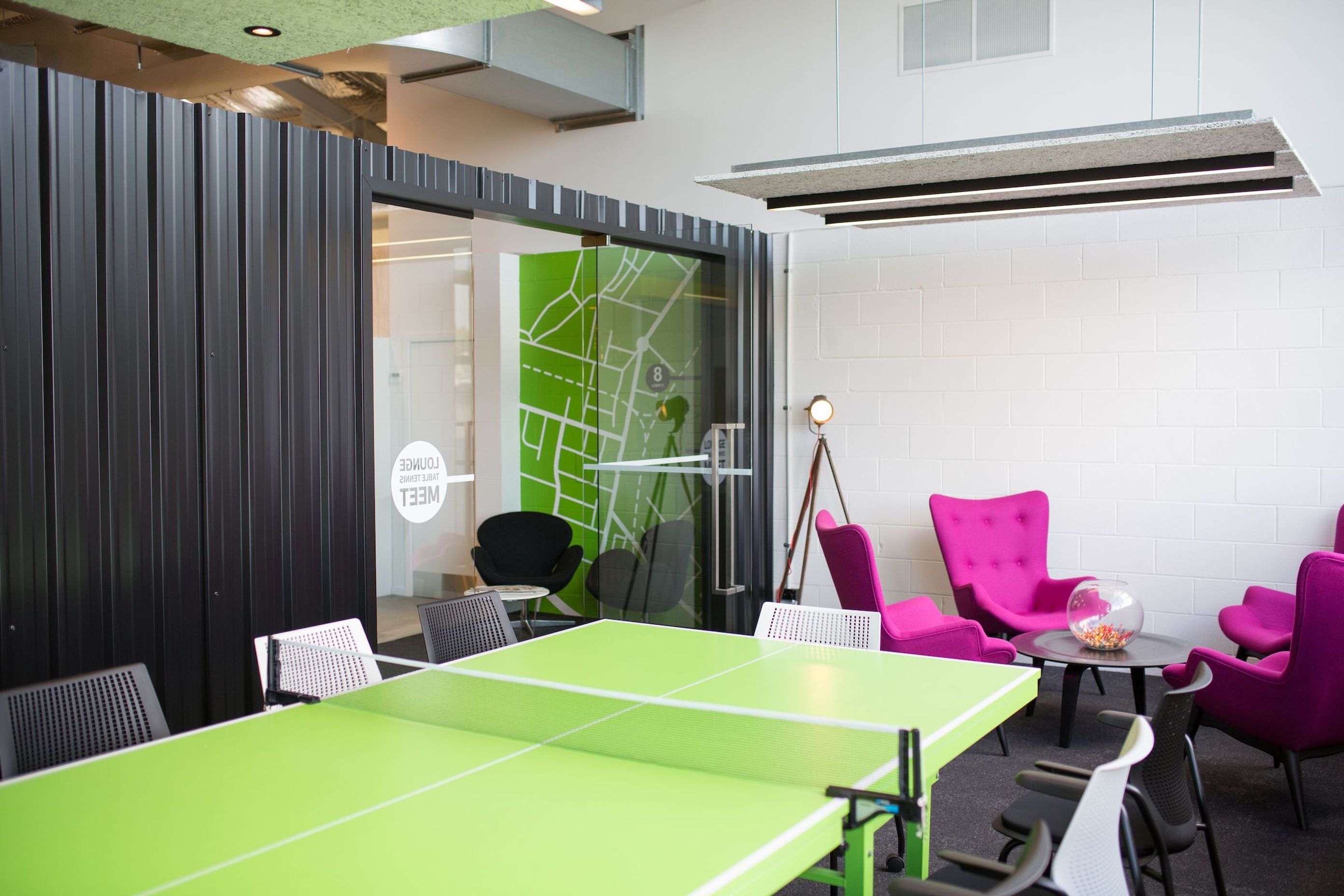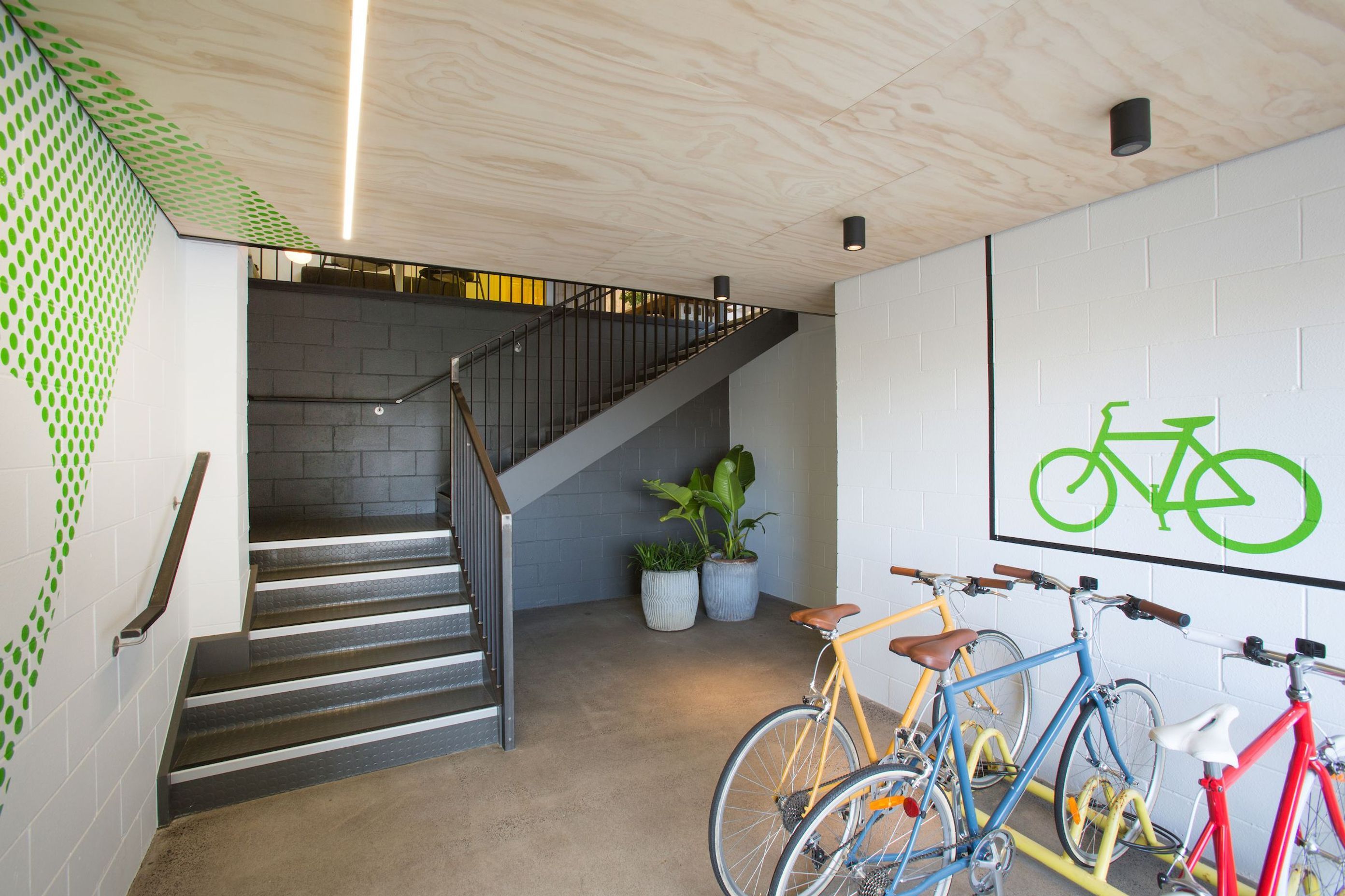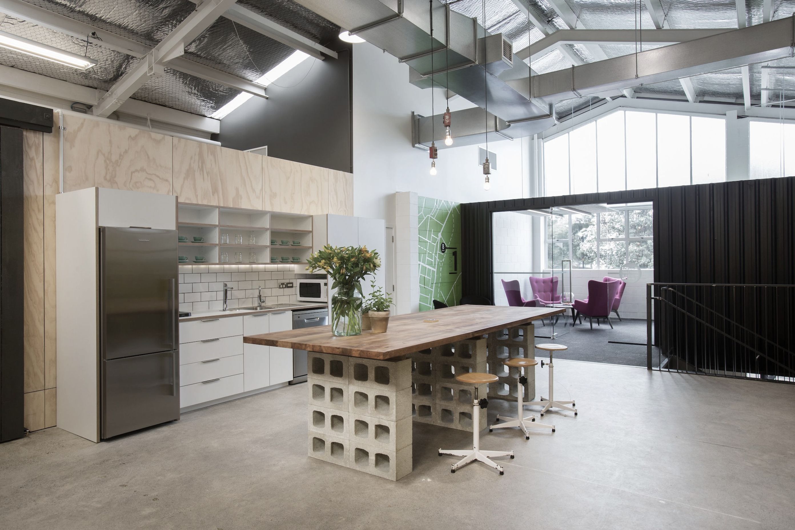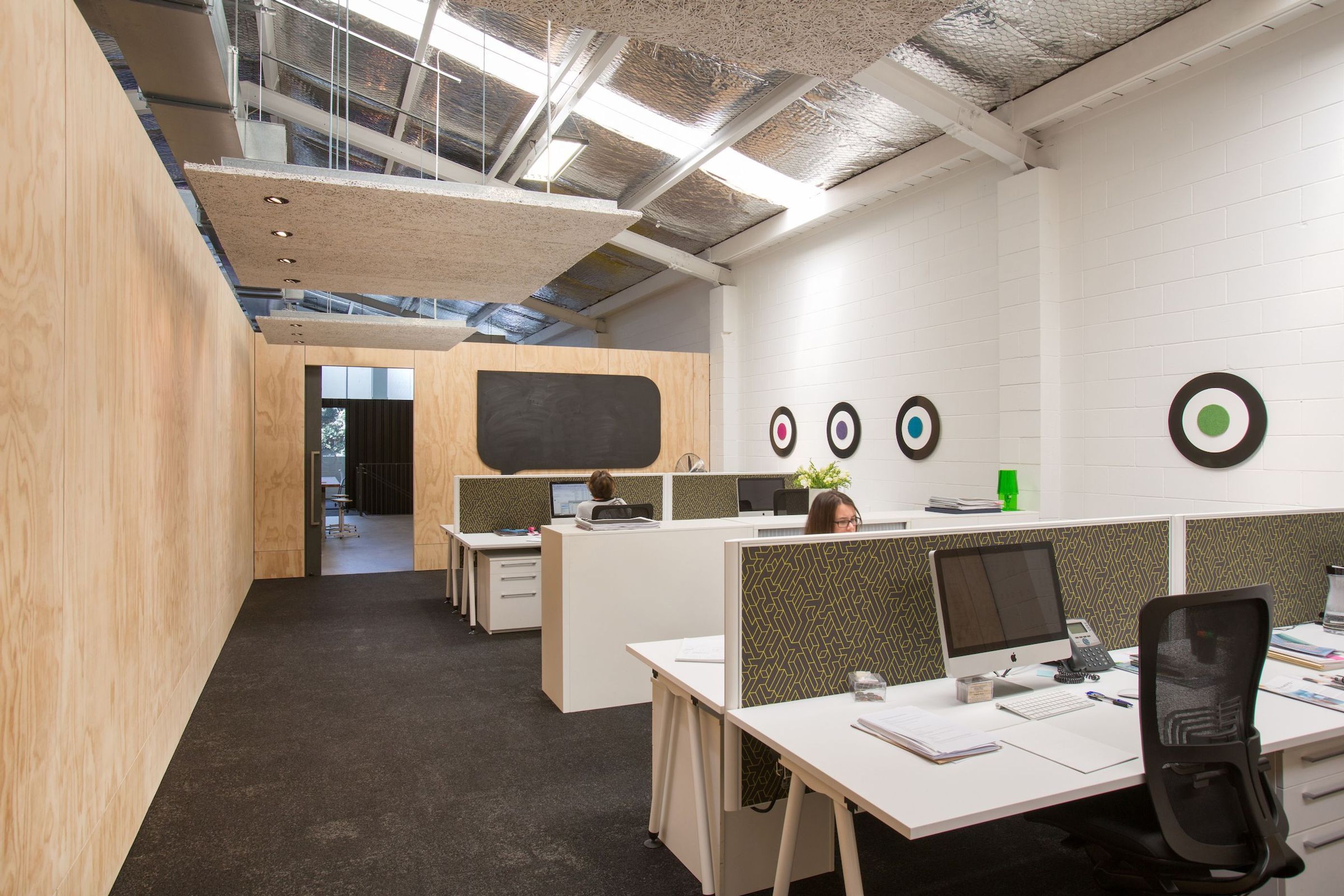 ArchiPro Project Summary - Transforming a former carpark into a vibrant office space with semi-industrial decor, featuring bold colors and a retro feel, supported by comprehensive project management and interior design expertise.