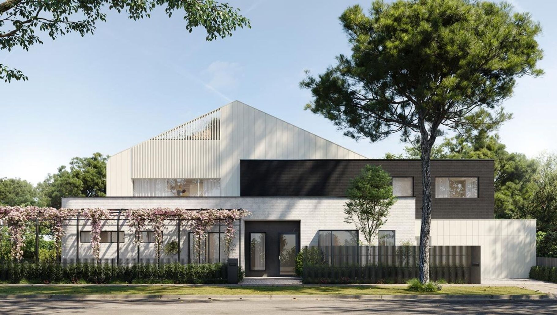 ArchiPro Project Summary - Innovative townhome design featuring reverse living and roof terraces, maximizing bay views while maintaining a bold street presence with a contemporary black and white palette.
