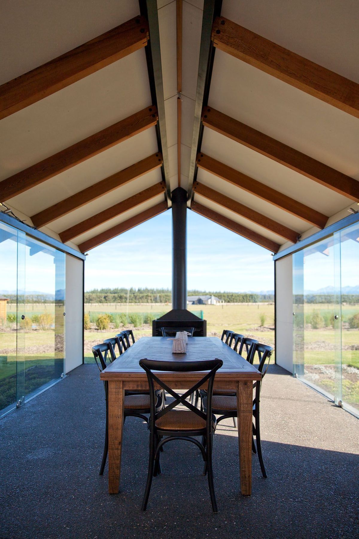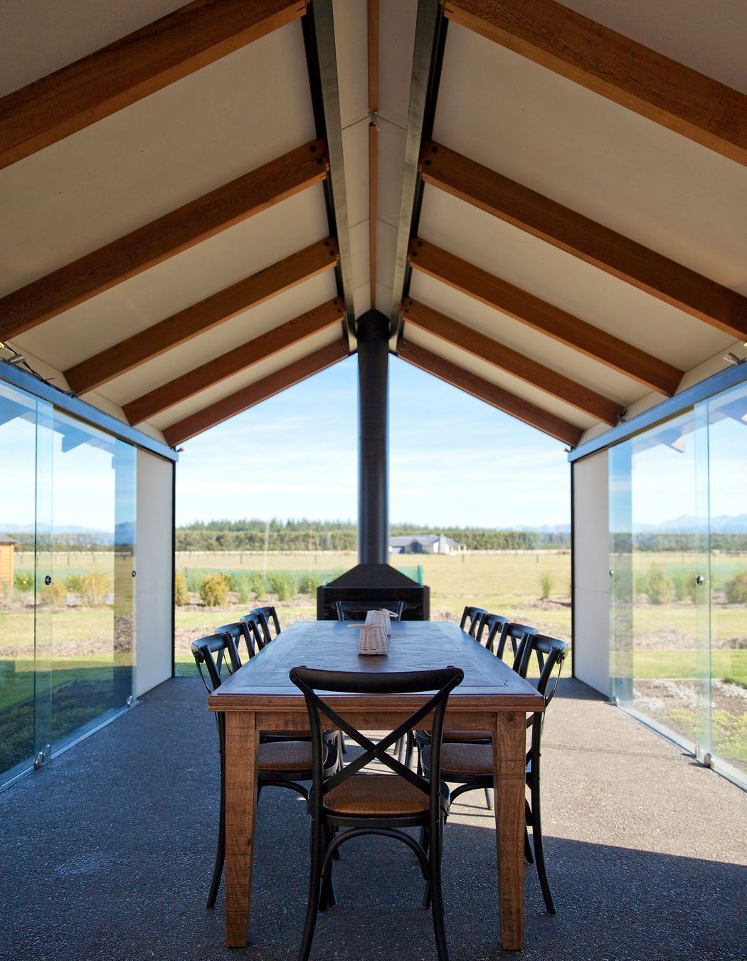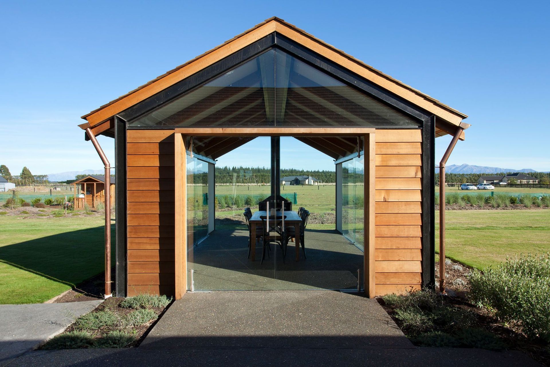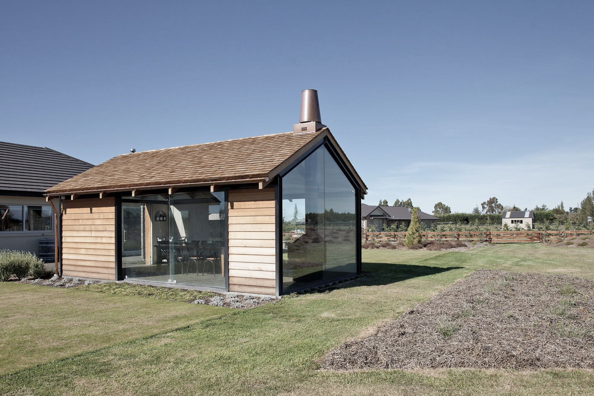 ArchiPro Project Summary - A contemporary interpretation of the Native North American Cook House, completed in 2013 in Darfield, Canterbury, and recognized as the National Winner in the Designing with Glass category at the GANZ 2013 Glass Industry Awards.