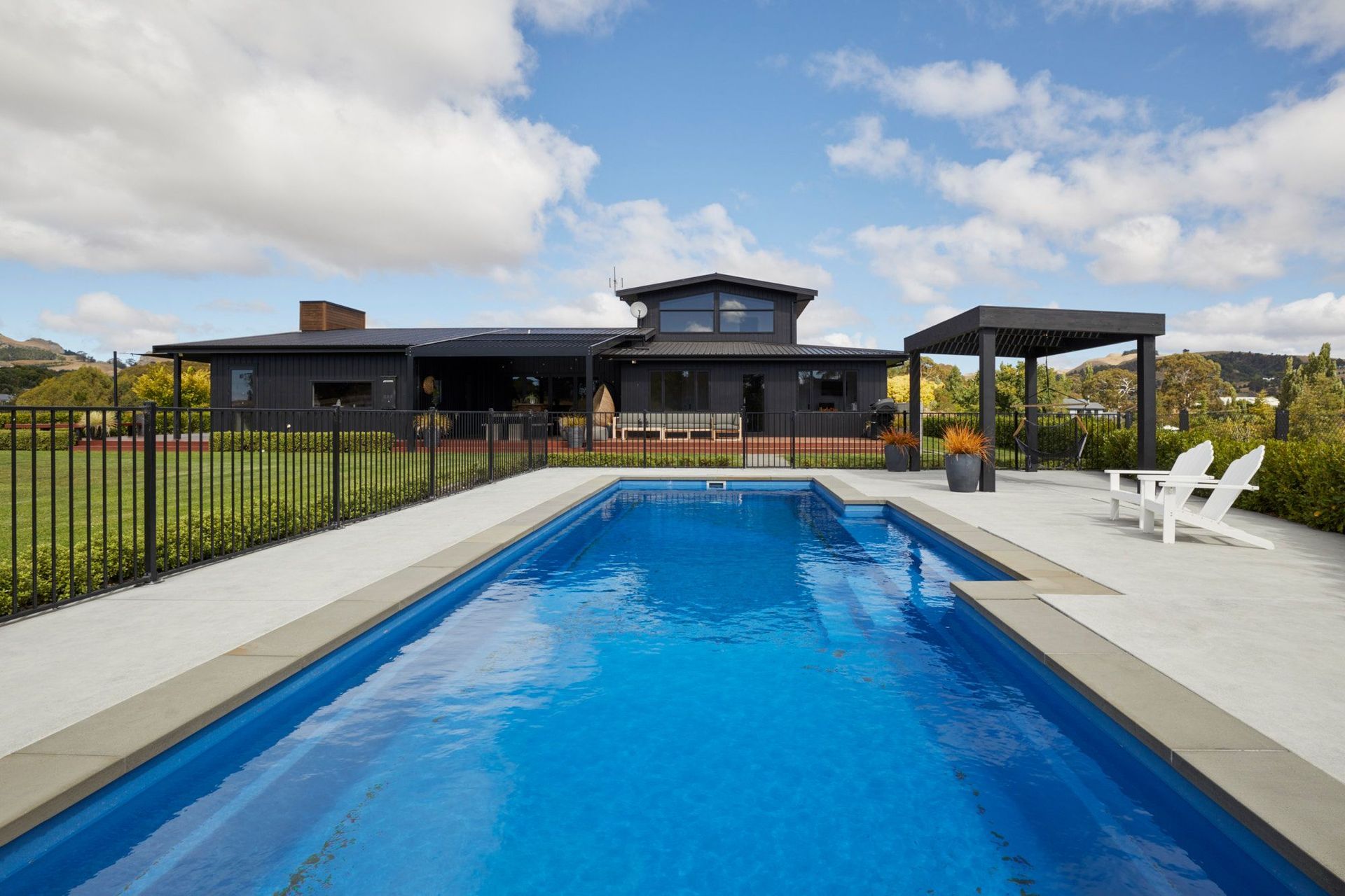 ArchiPro Project Summary - A stunning fusion of contemporary design and craftsmanship, featuring stylish timber flooring, seamless indoor/outdoor flow, and a refreshing swimming pool, all set within beautifully landscaped grounds in Havelock North.