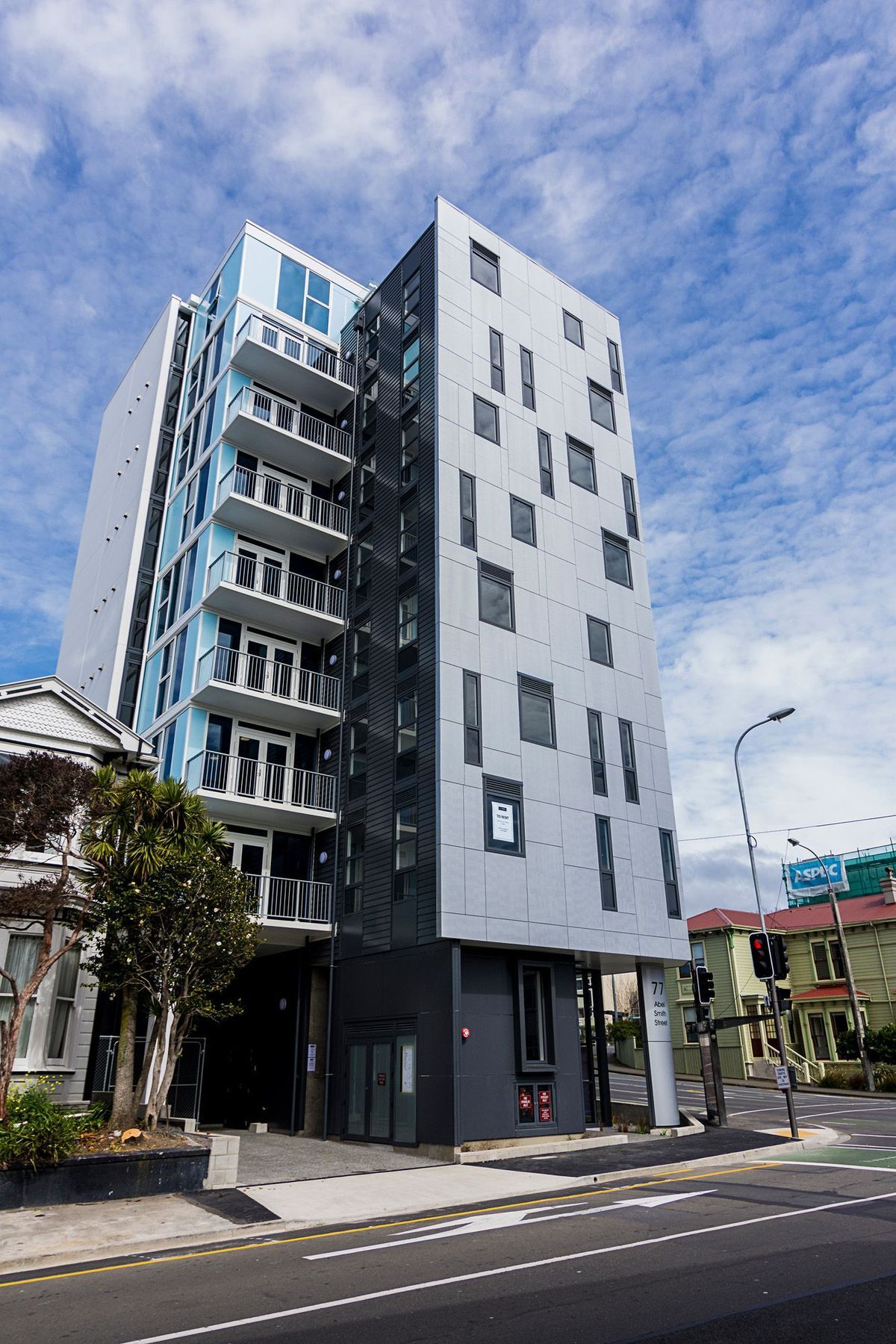 ArchiPro Project Summary - Abel Smith Street Apartments: A contemporary high-density housing solution in Wellington, featuring three to four-bedroom layouts with a striking design that harmonizes with the urban landscape.