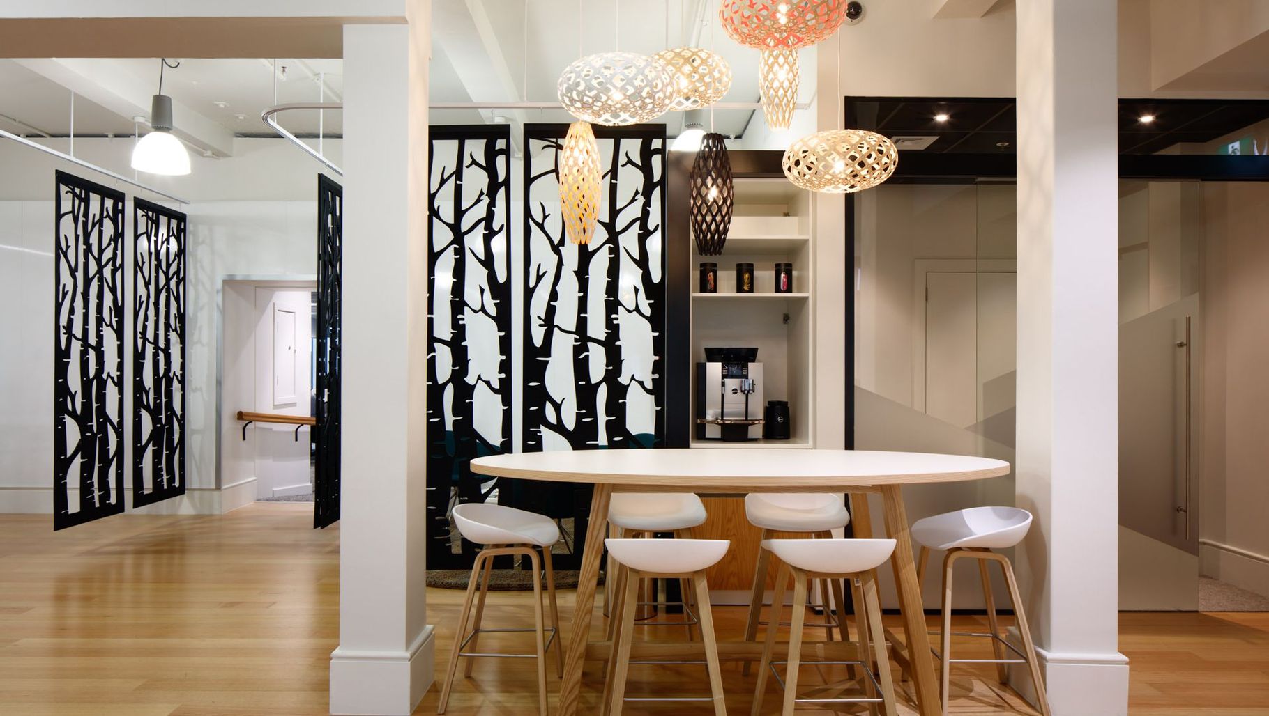 ArchiPro Project Summary - The Accenture project highlights modern design with wood flooring and stylish light fixtures, fostering creativity and collaboration.