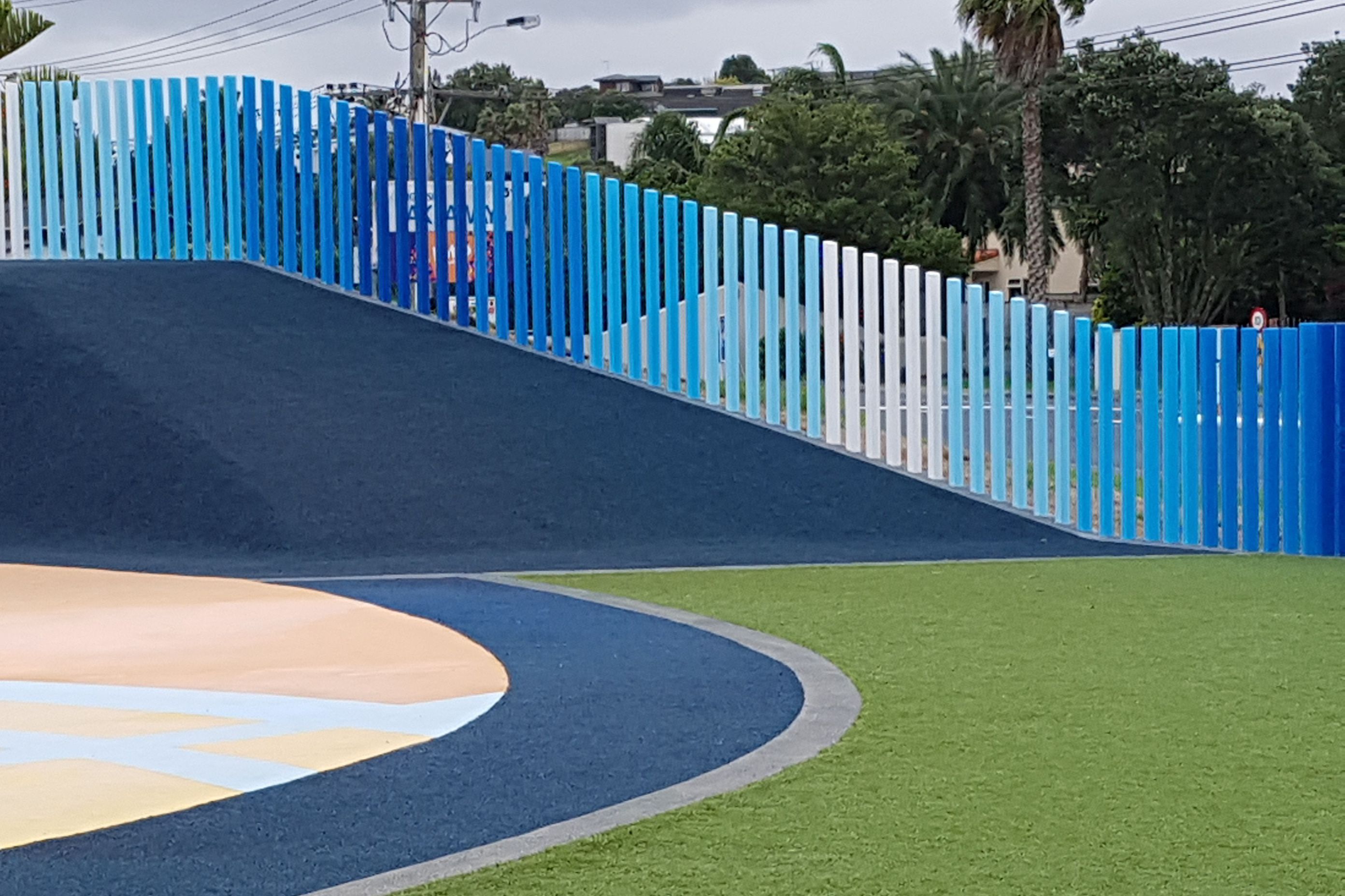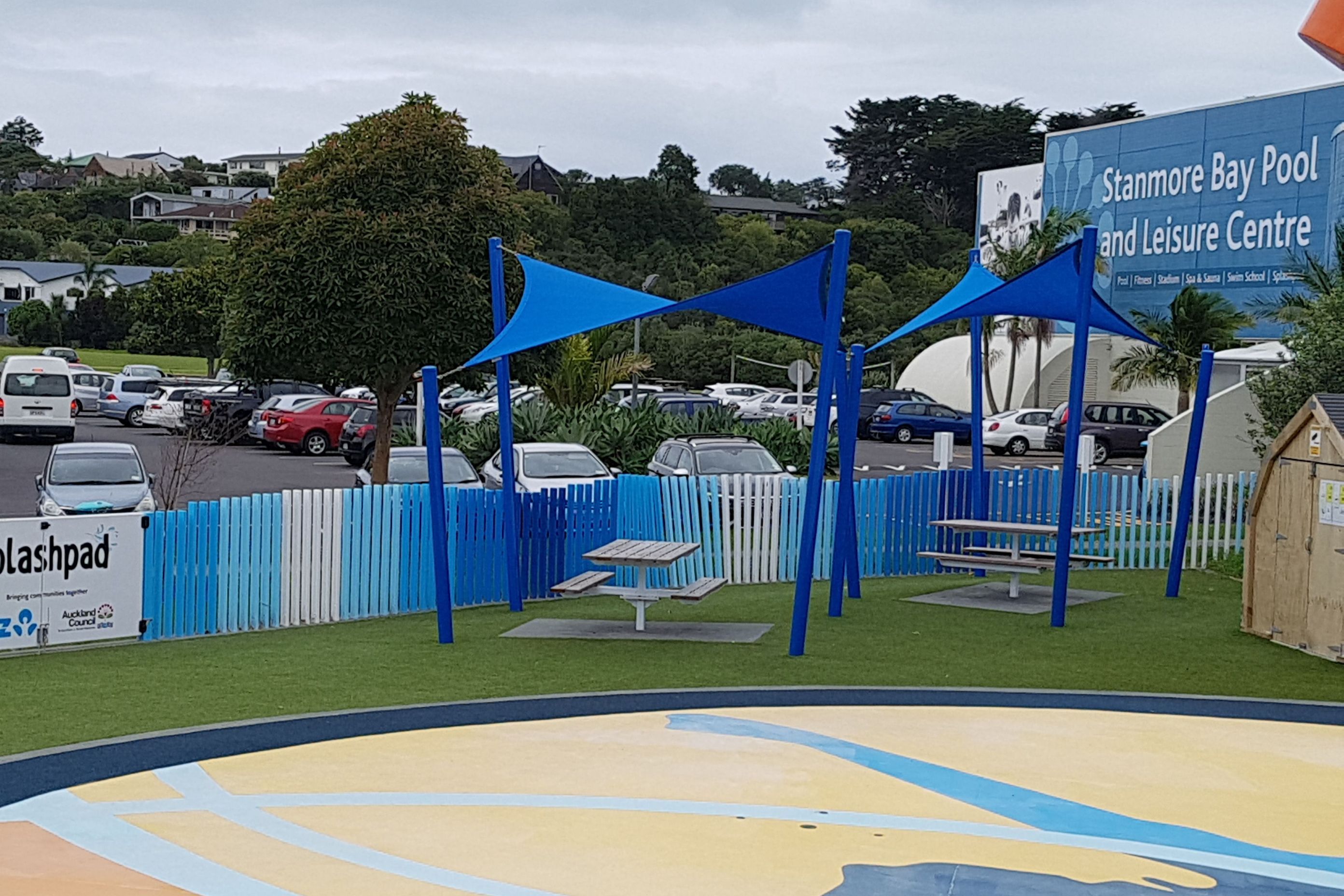 ArchiPro Project Summary - Accoya Fence installation at Stanmore Bay Splash Park, Auckland, featuring non-toxic materials, a selection of Resene paint colours, and a design that ensures safety for children while maintaining exceptional stability and durability.