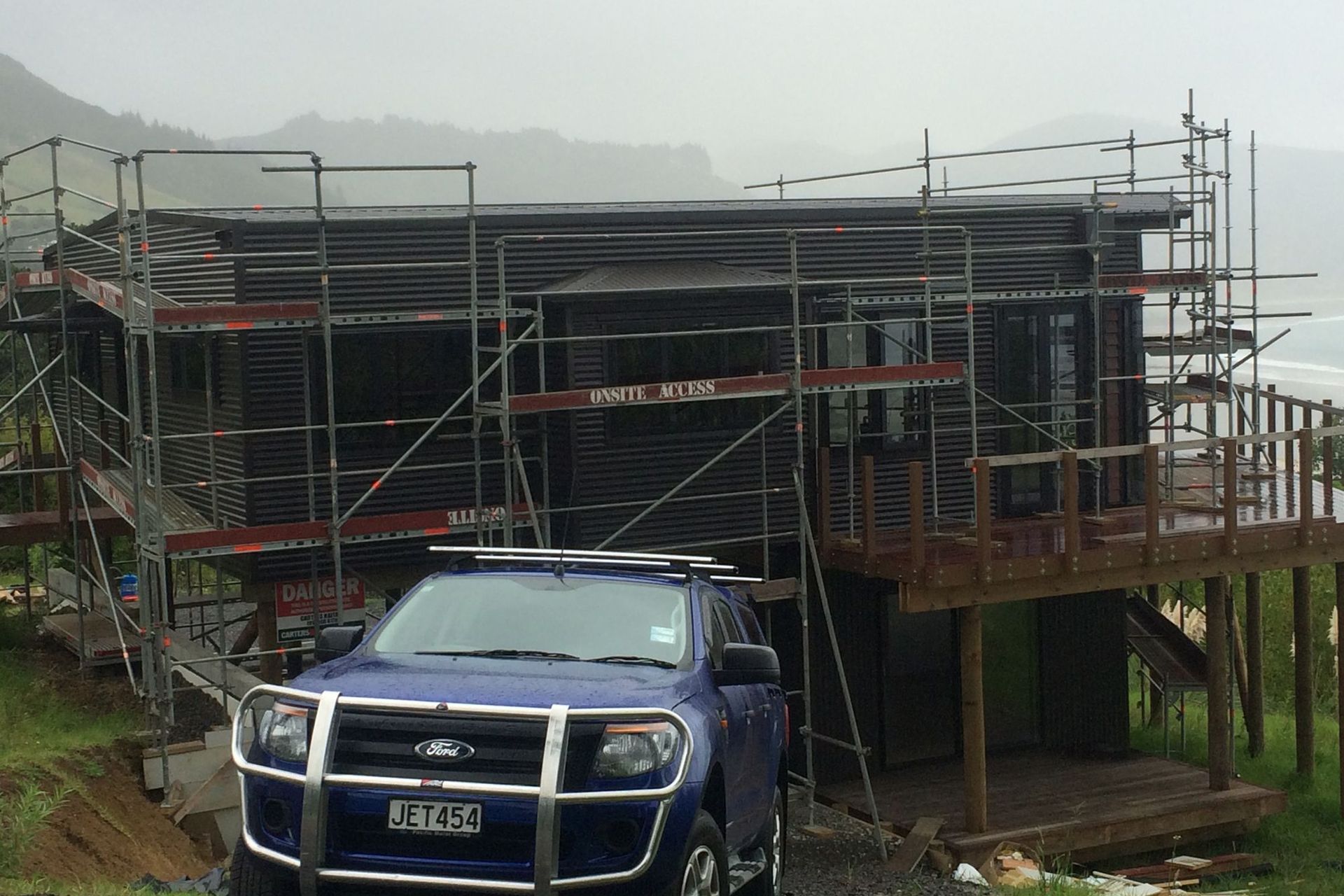 ArchiPro Project Summary - Comprehensive installation of STP110 Enviroclad membrane internal gutter, Metalcraft Coloursteel roof and cladding, Solatube skylight, along with complete plumbing work at Ahipara Bay.