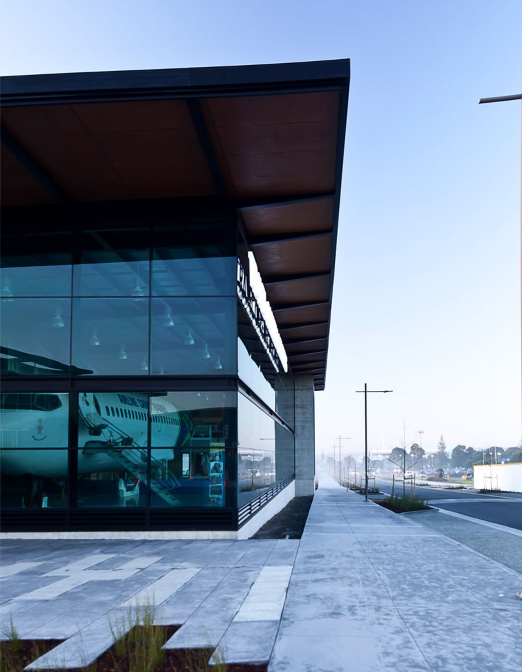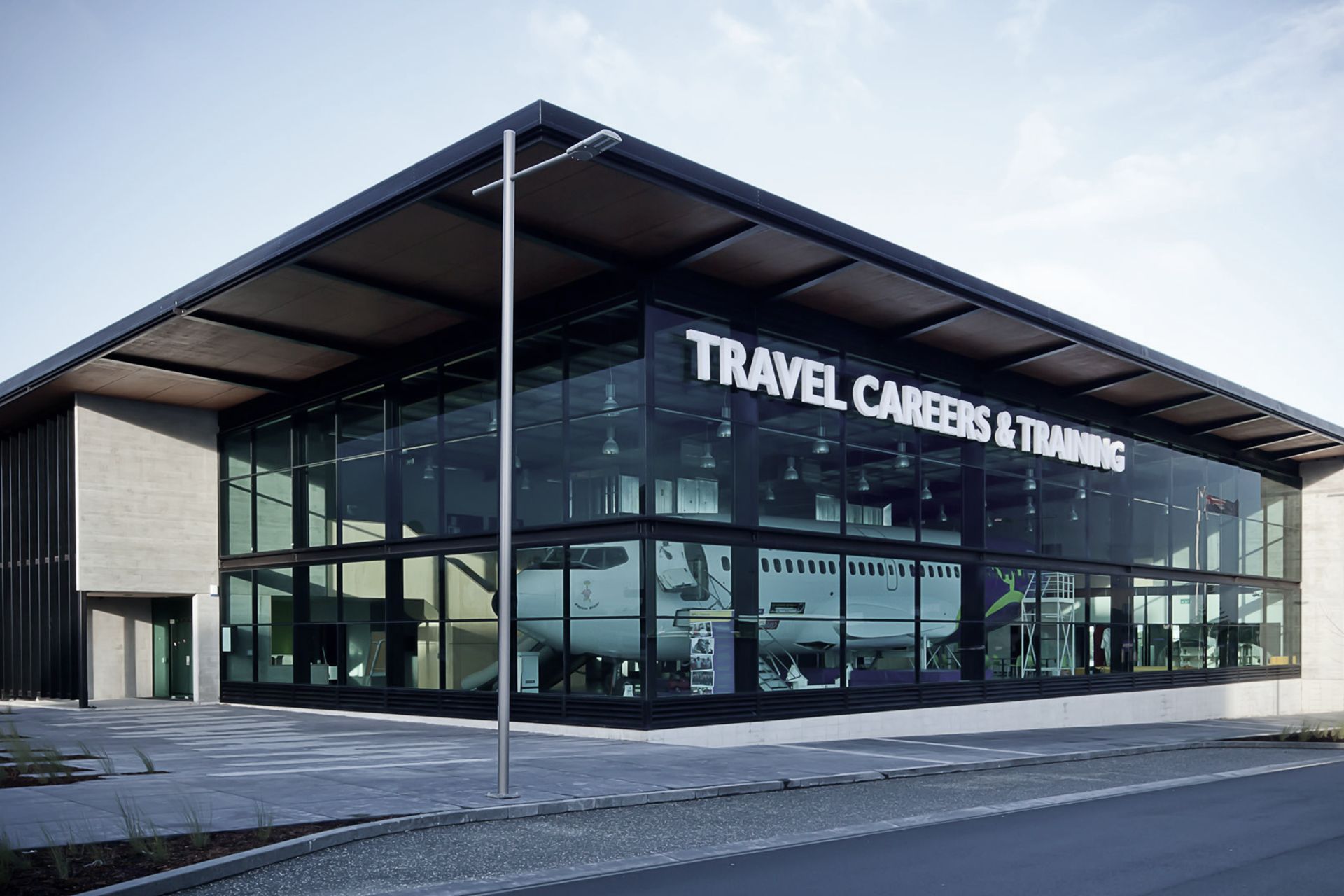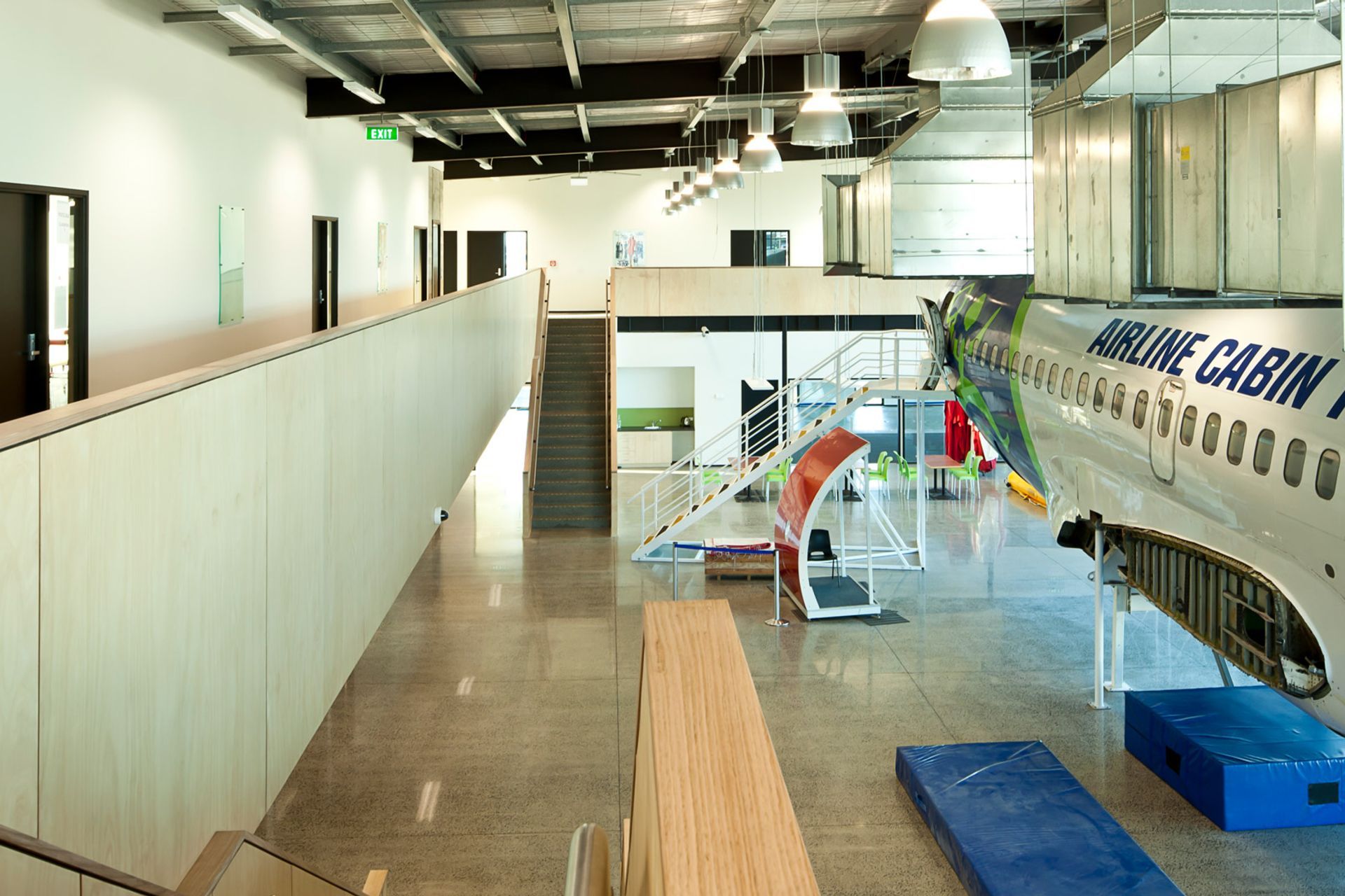 ArchiPro Project Summary - A purpose-built training centre featuring a Boeing 737 fuselage, located in Auckland Airport Business District, showcasing extensive glazing, timber accents, and a connection to the travel and tourism industry.