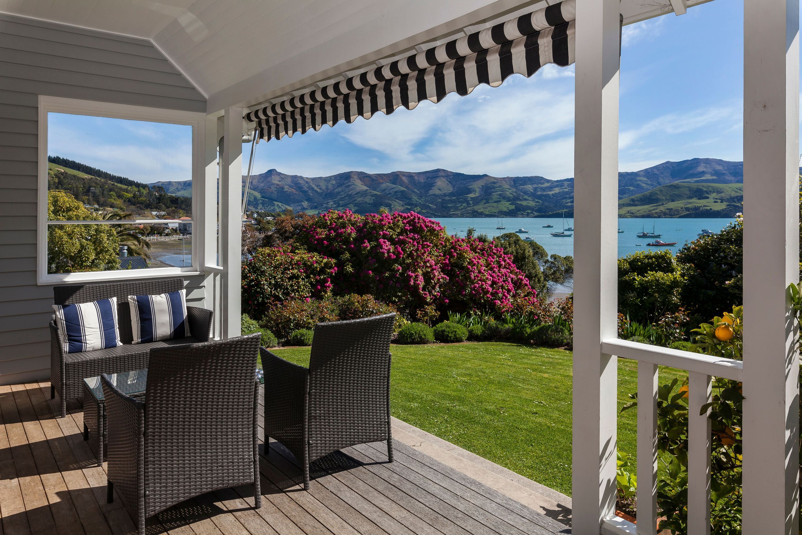 ArchiPro Project Summary - The Akaroa House showcases modern design with elegant windows, durable siding, and a welcoming porch in a serene residential area.