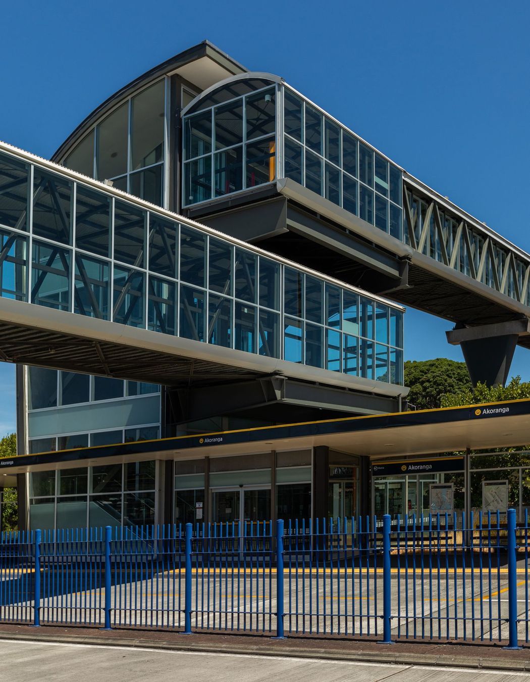 ArchiPro Project Summary - Akoranga Train Station is a modern transit hub designed for enhanced connectivity and sustainability.