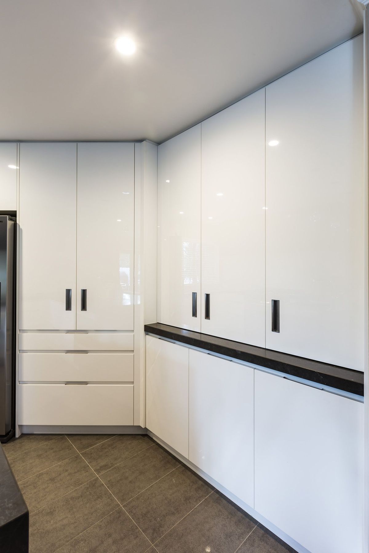 ArchiPro Project Summary - Albany Contrast in Gloss features a blend of modern design and functional elegance, showcasing high-gloss finishes and thoughtful spatial planning.