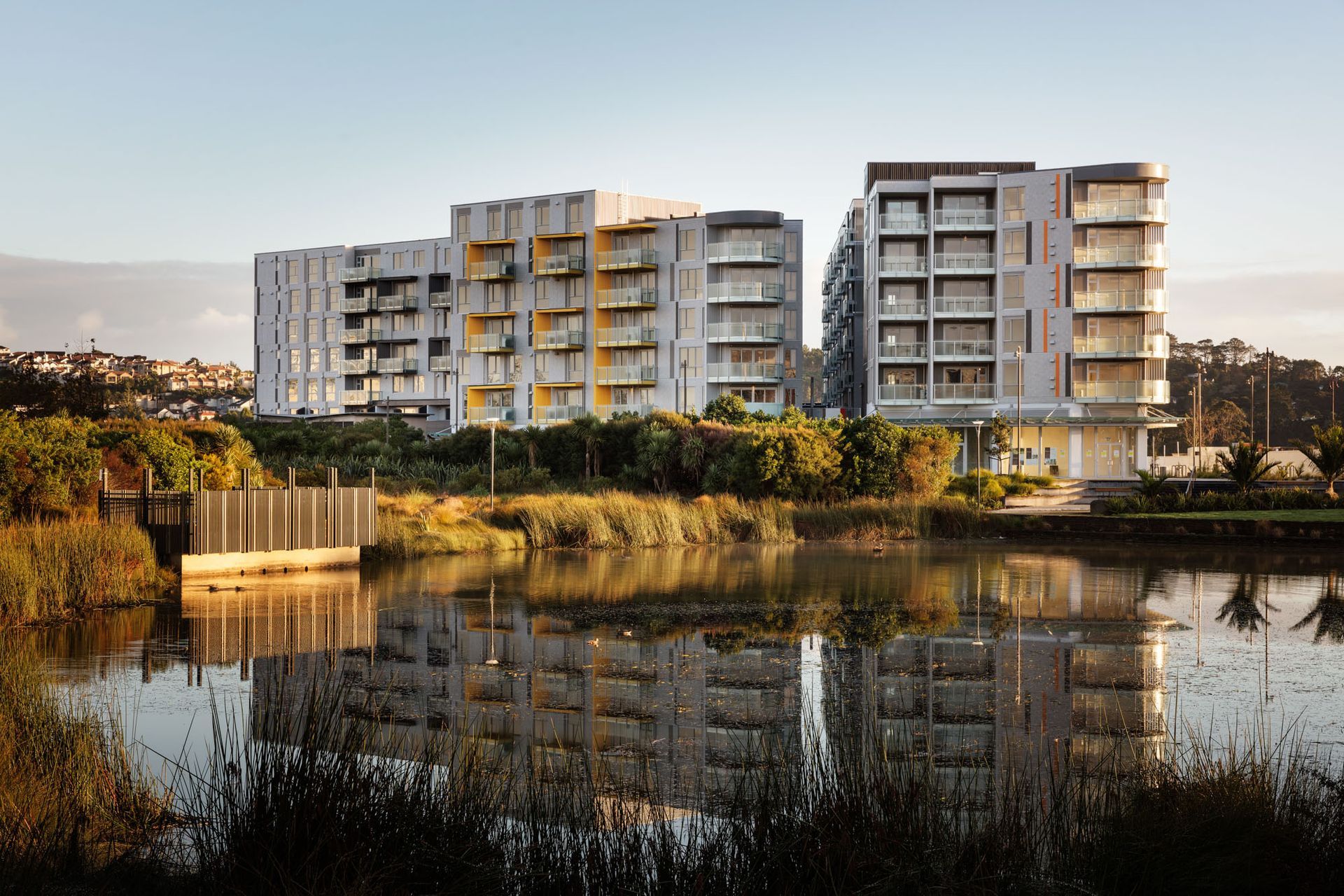 ArchiPro Project Summary - Albany Rose Garden Apartments: A landmark 800-apartment complex in Albany, New Zealand, featuring a harmonious blend of living spaces, commercial areas, and landscaped amenities, designed to enhance community living and connectivity.
