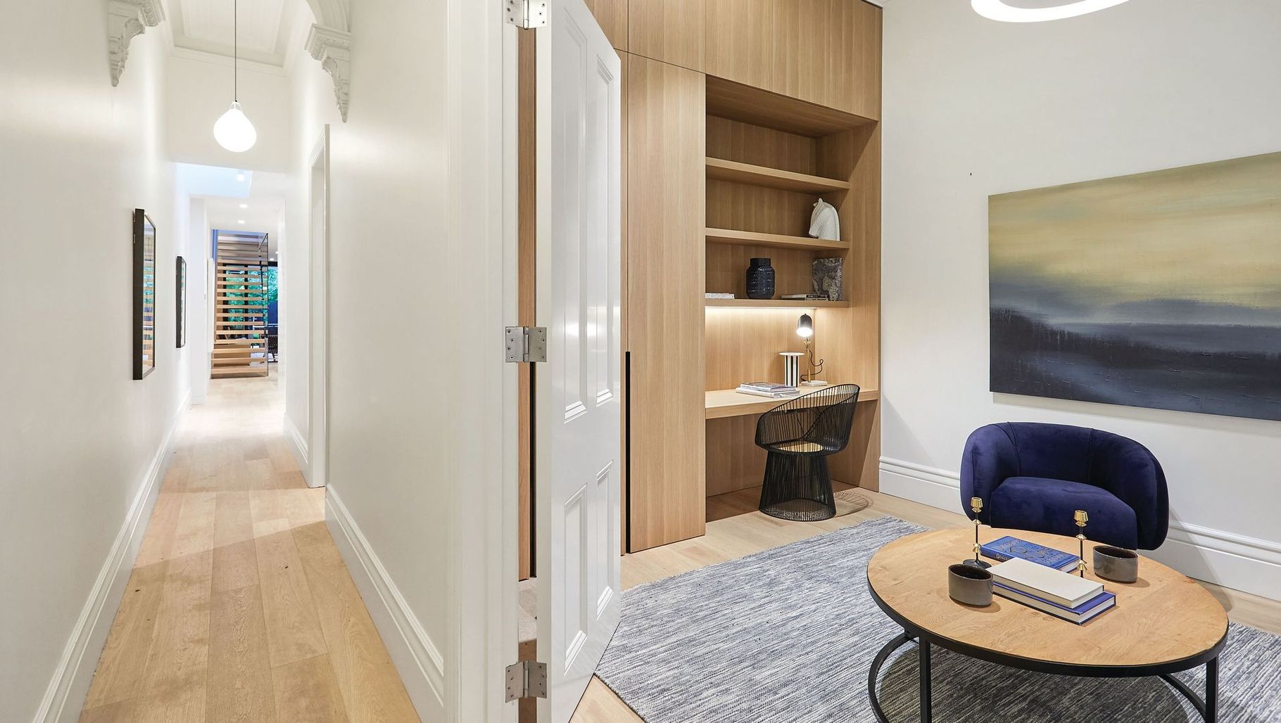 ArchiPro Project Summary - The Albert Park project features modern interior design with wood flooring, curated furniture, and strategic lighting to create a warm and inviting atmosphere.