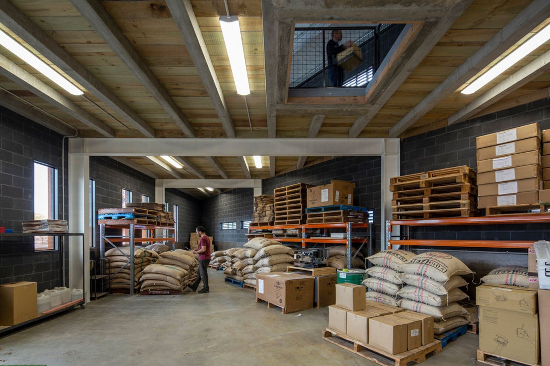ArchiPro Project Summary - Innovative Allpress Storehouse featuring a unique triangular design, optimized for efficient coffee bean storage and distribution, with a blend of modern materials and functional spaces for operations and staff engagement.