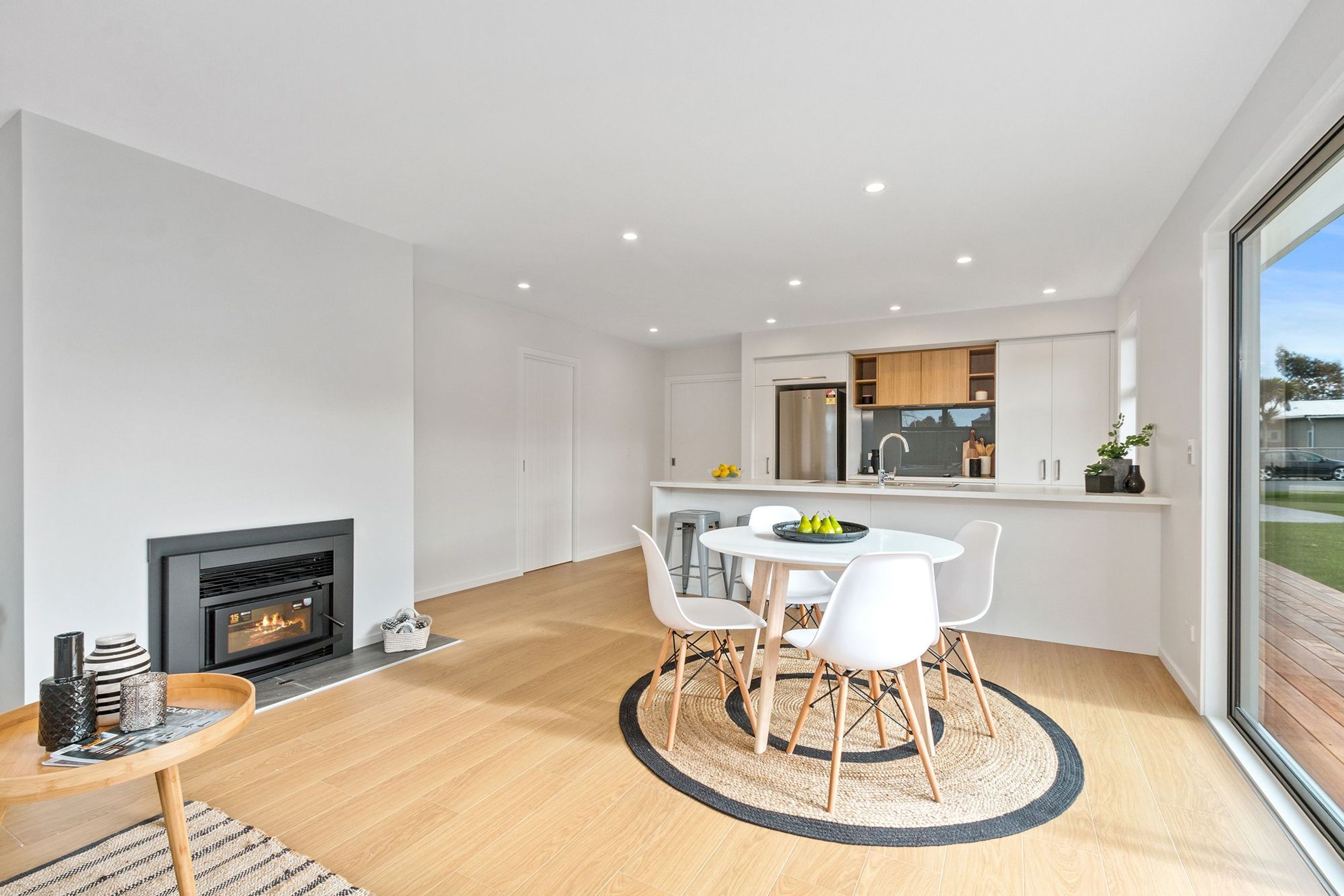 ArchiPro Project Summary - Striking cedar-clad home featuring modern interiors, spacious living areas with large glass sliders, and a cozy log burner, complemented by a stylish cedar deck for entertaining.