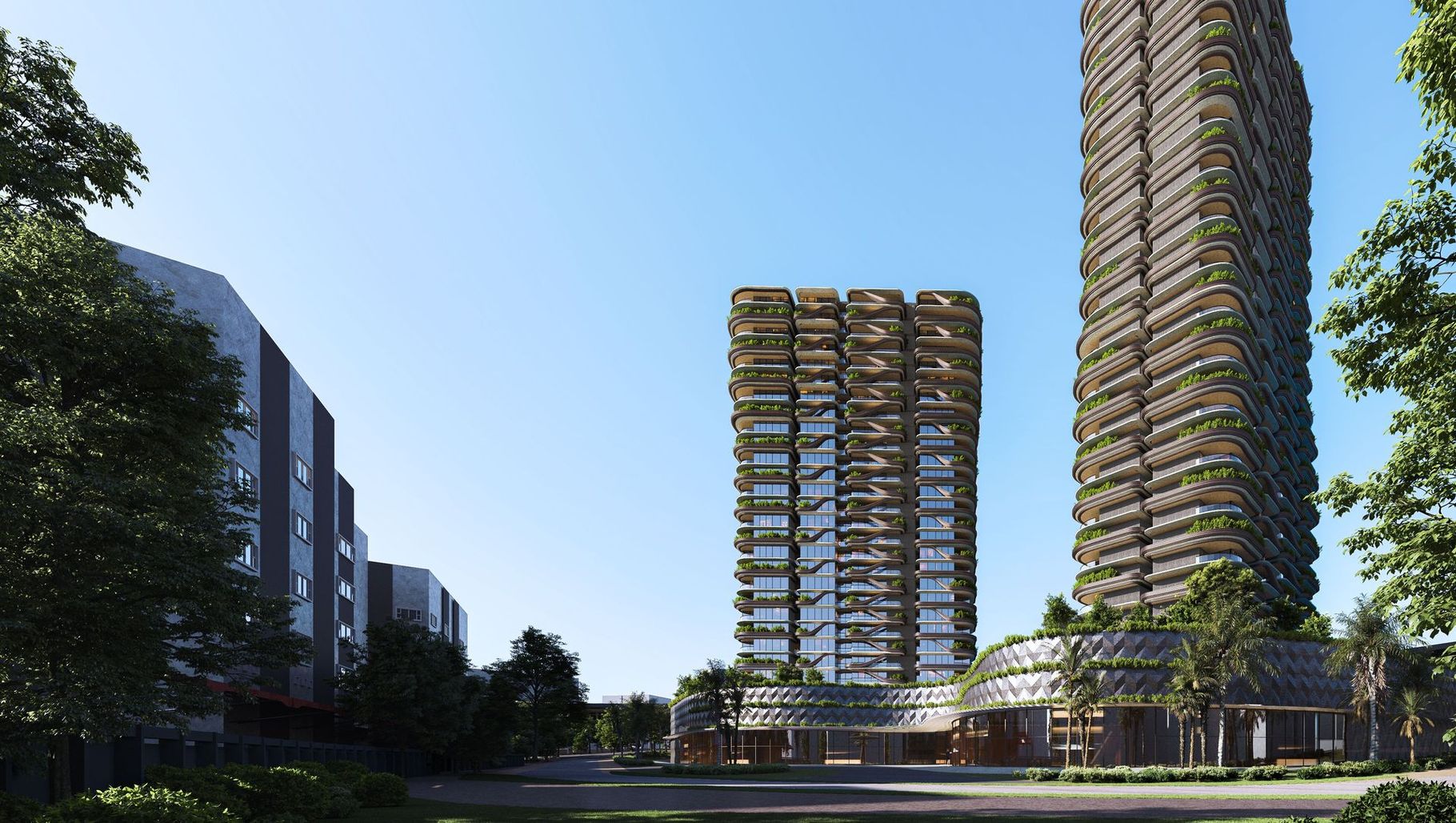 ArchiPro Project Summary - Masterplan development in Ampang, Malaysia, inspired by the region's tin mining history, featuring twin towers with residential, retail, and commercial spaces, a sports centre, and landscaped communal facilities.