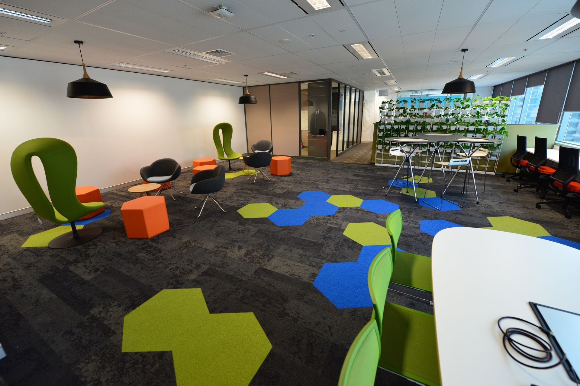 ArchiPro Project Summary - AON Insurance Sydney's innovative hub redefines collaboration with dedicated zones for teamwork and individual work, featuring custom furniture, integrated technology, and acoustic solutions to enhance productivity in a modern workspace.
