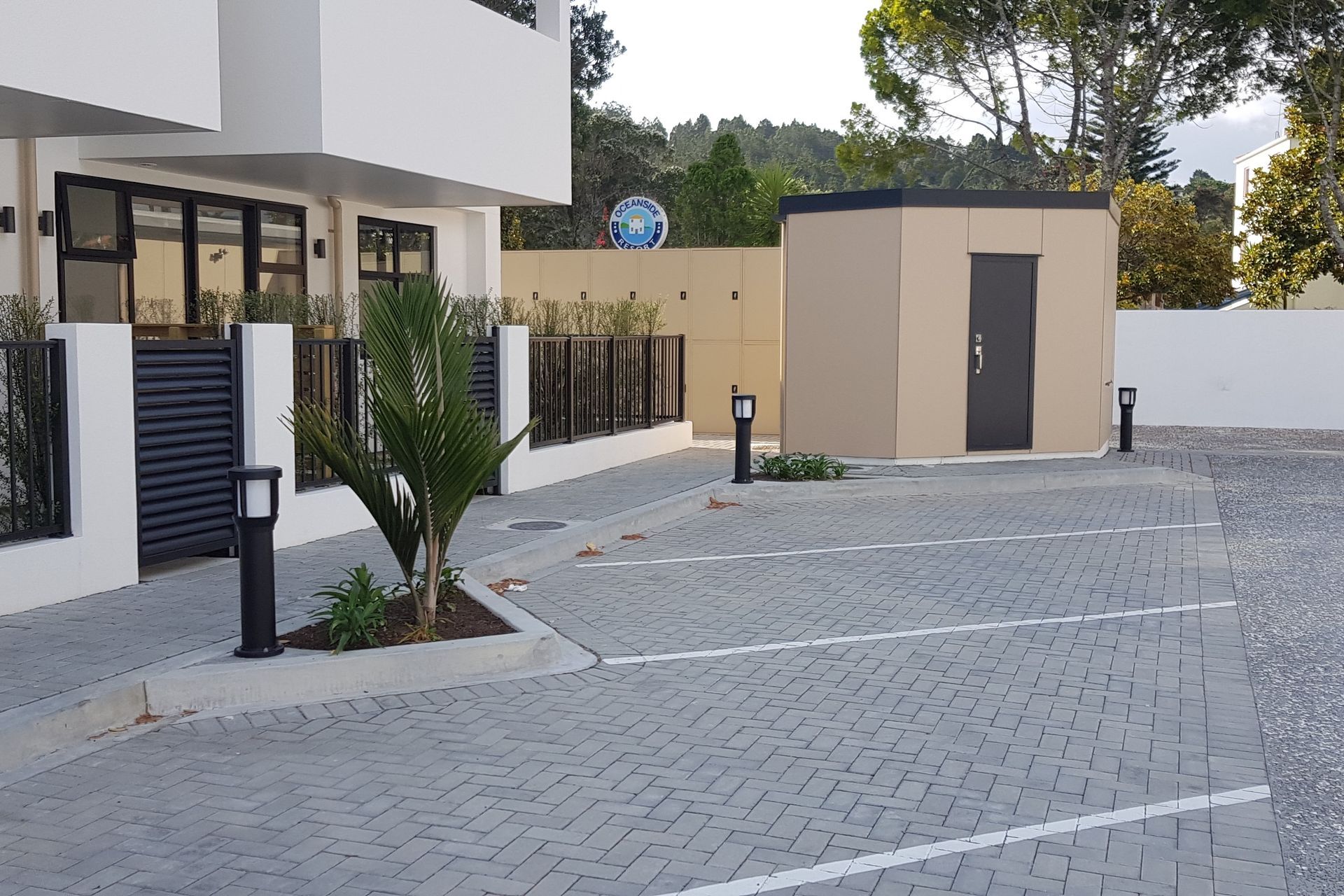 ArchiPro Project Summary - Enhanced safety and aesthetics with EST-SSB-019 bollard lighting for a new apartment carpark in Orewa, ensuring low glare illumination for residents while maintaining a seamless installation process.