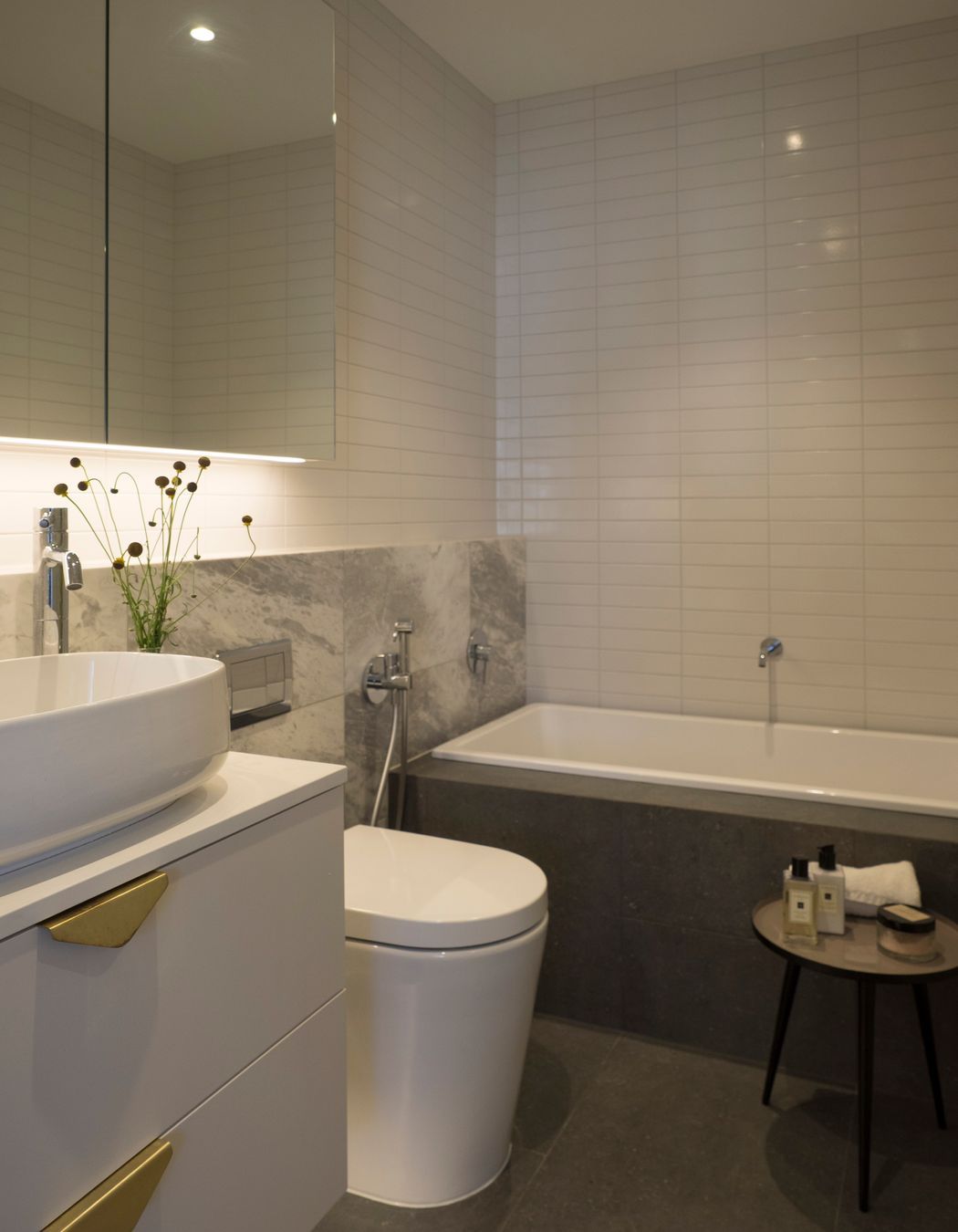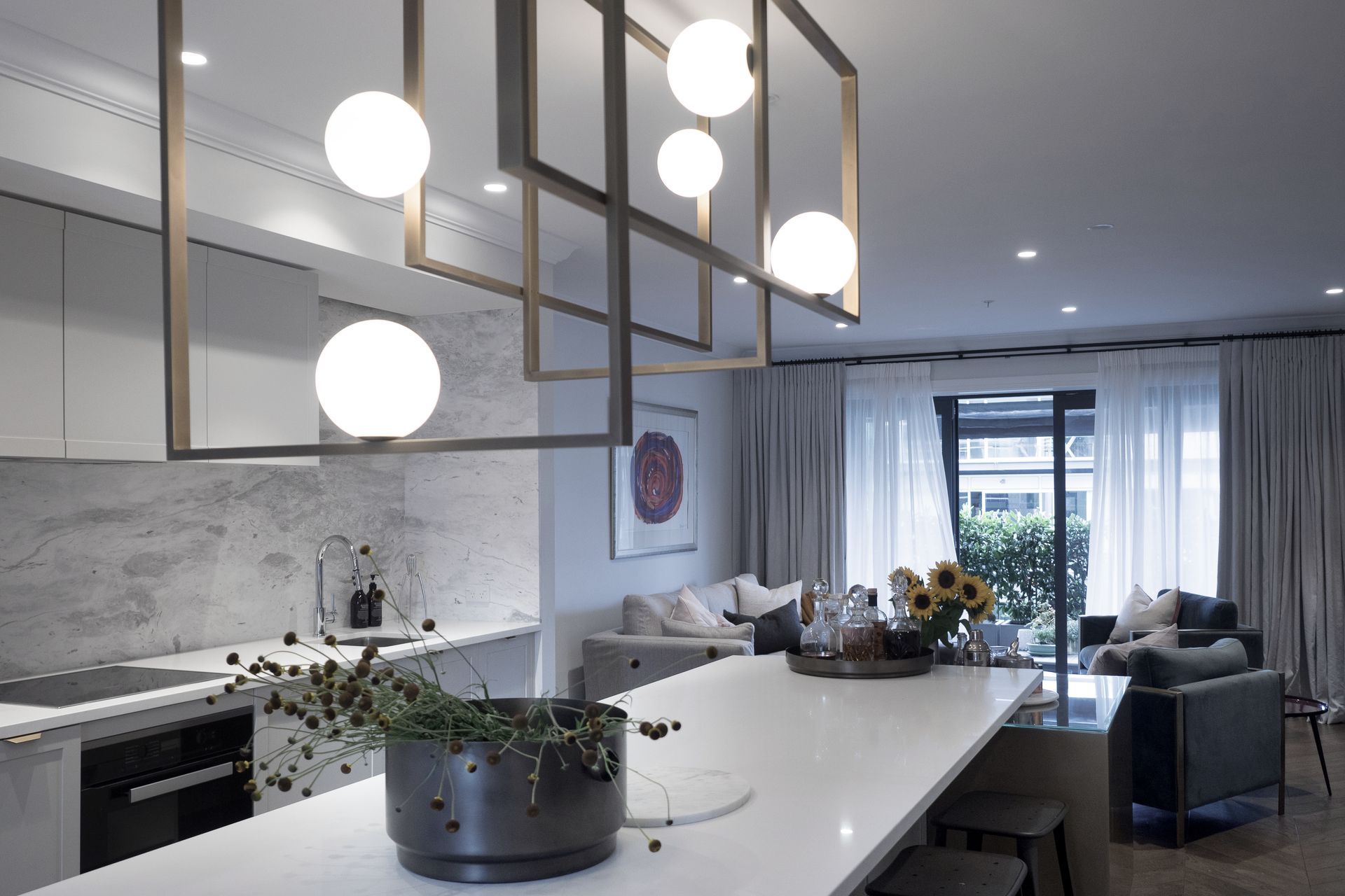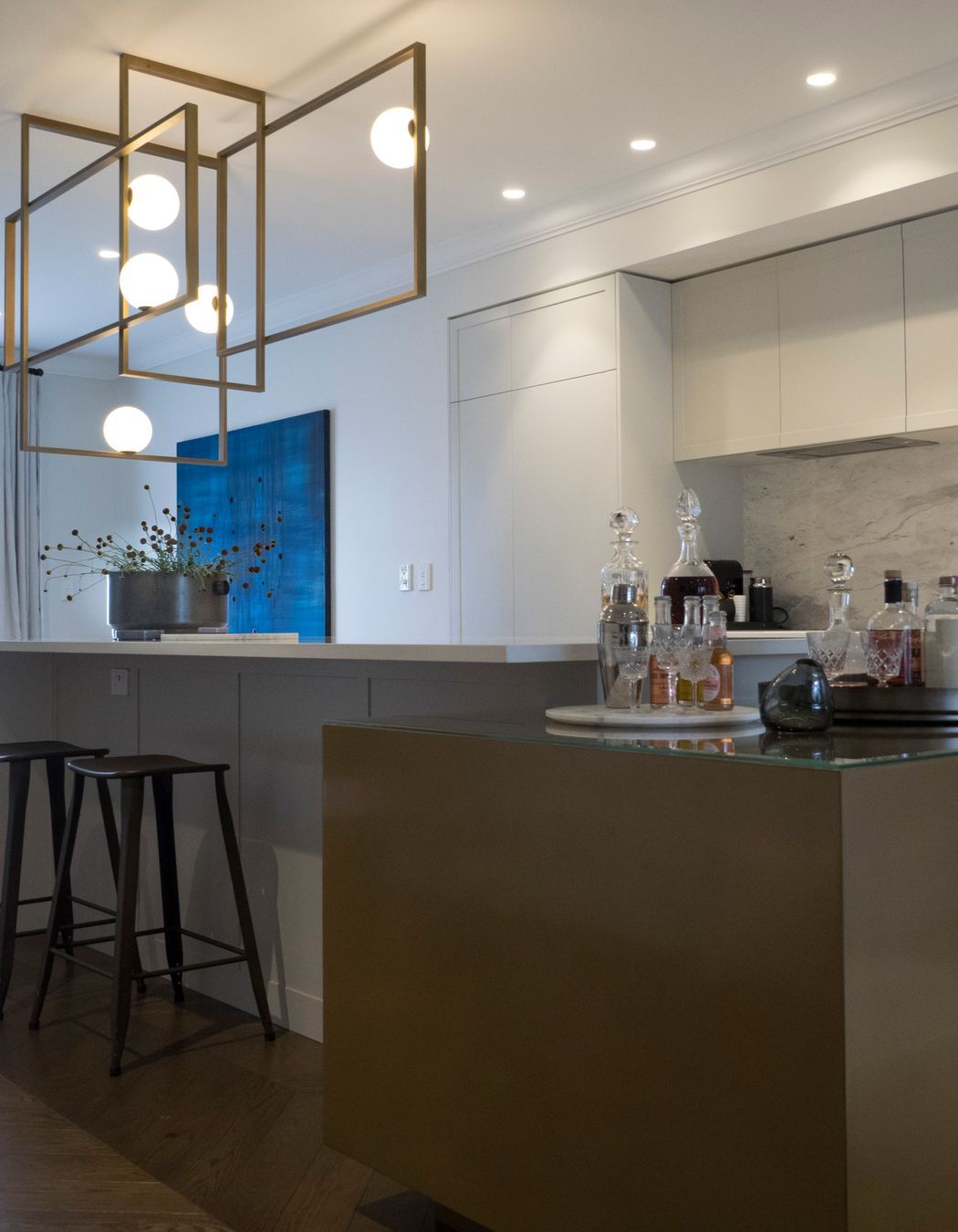 ArchiPro Project Summary - A serene apartment reimagined after fire damage, featuring a glamorous kitchen, luxurious ensuite, and a rich palette of natural materials, creating a calming oasis in the heart of the city.