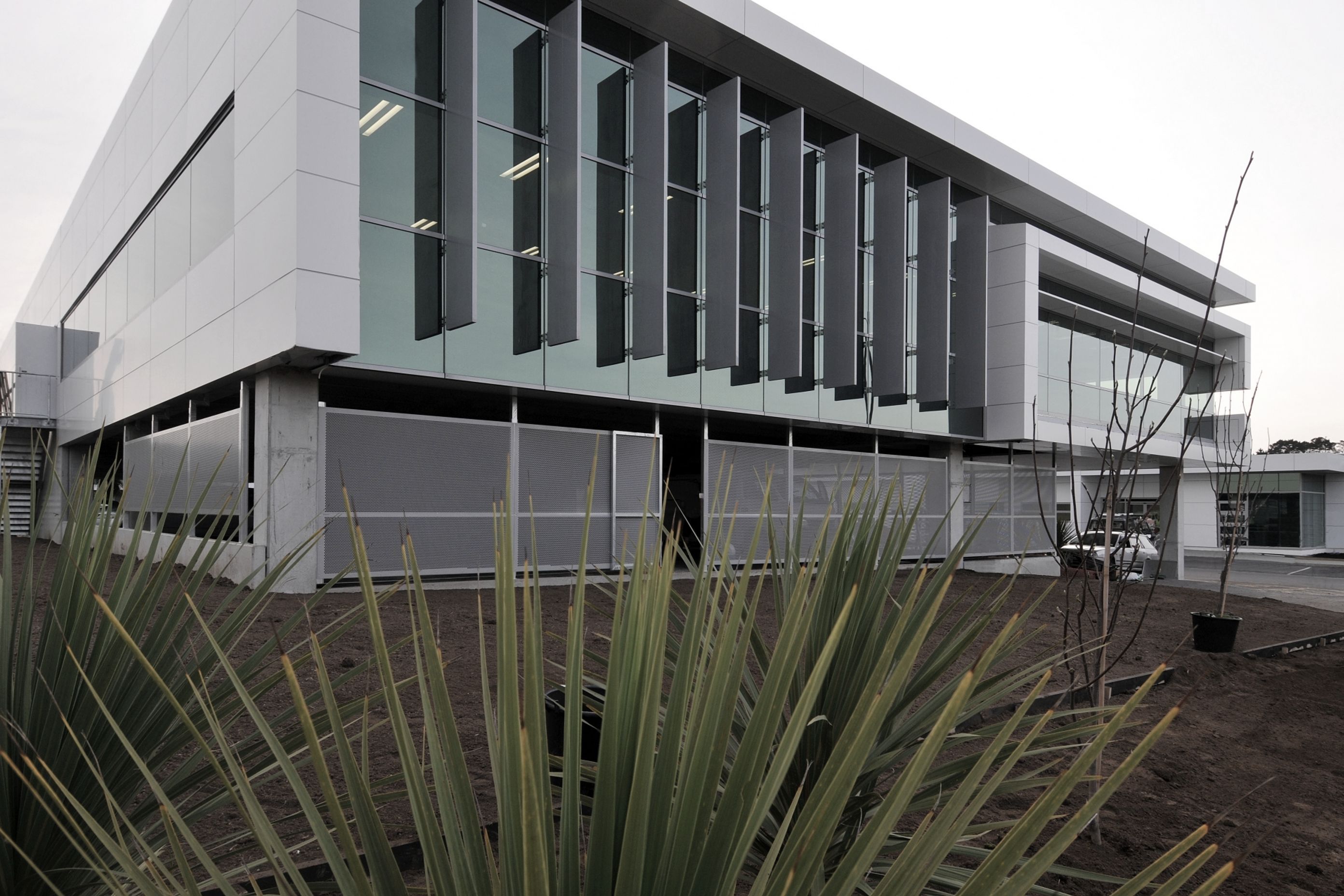 ArchiPro Project Summary - A 1400m2 open-plan office complex featuring a sophisticated structural design with a unique inverted V roof, developed for Kea Properties by Ashton Mitchell Architects, including basement car parking and a total project cost of $3M.