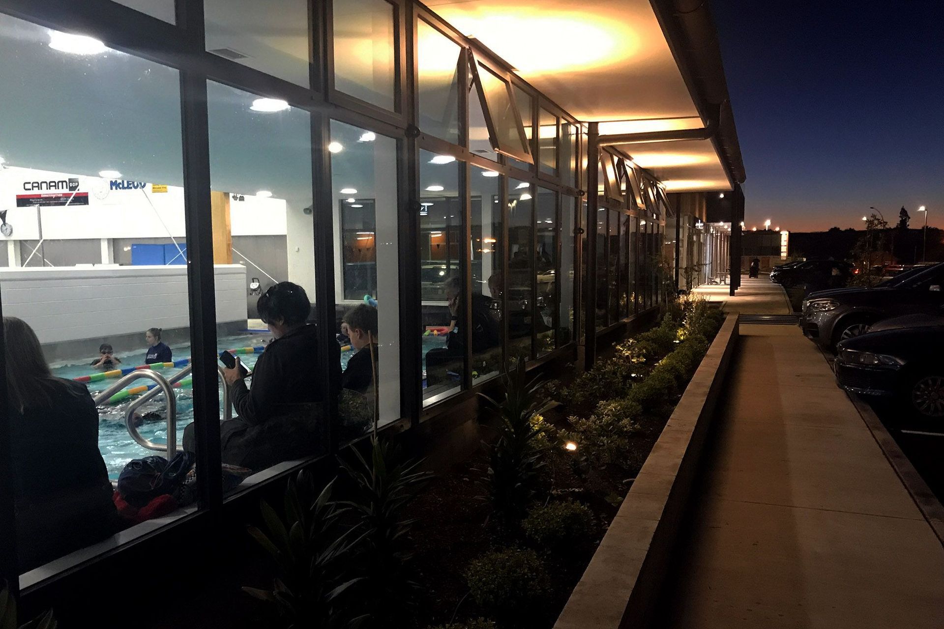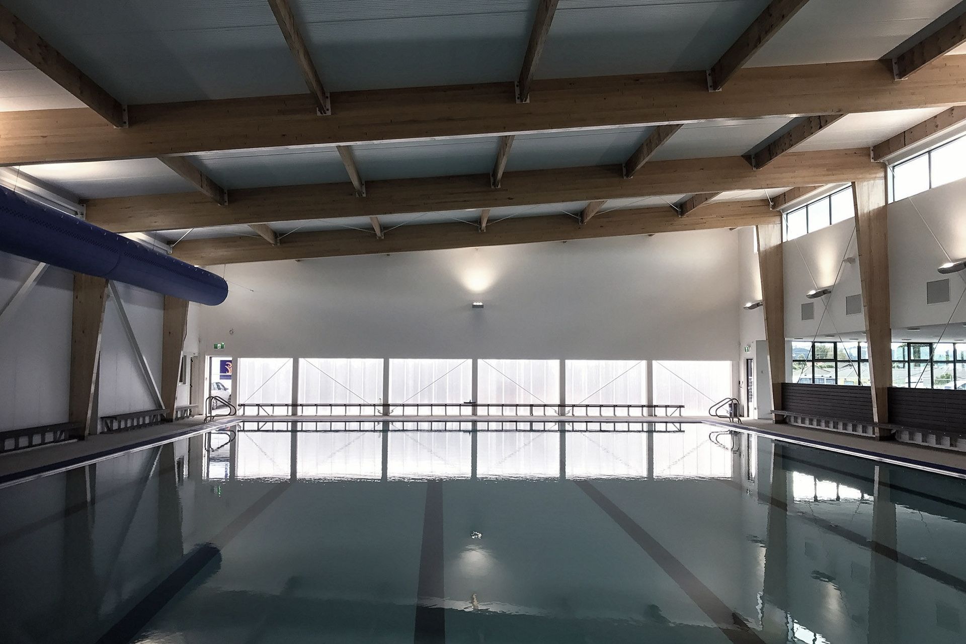 ArchiPro Project Summary - Purpose-built aquatic centre featuring geothermal heating, two pools for varying skill levels, and a gardened toddlers' pool designed to create a welcoming environment, while incorporating energy-efficient lighting and cost-saving features.