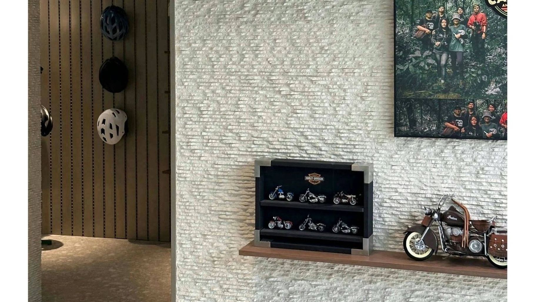 In the modern showroom environment, the panel becomes a tactile feature wall that catches natural and artificial light throughout the day. It brings a refined, architectural feel to the space — not overpowering, but rich with detail up close. The layered surface adds a crafted, high-end finish that blends effortlessly with timber accents and display shelving, enhancing both modern and rustic design schemes.
