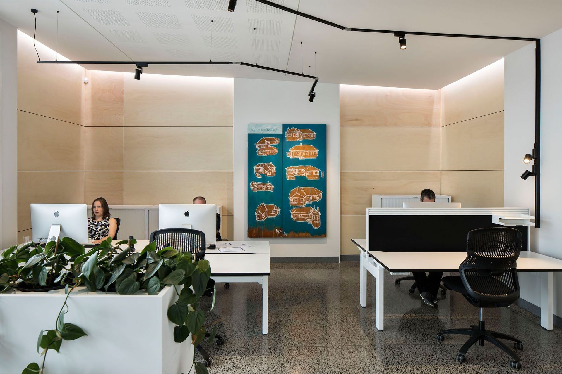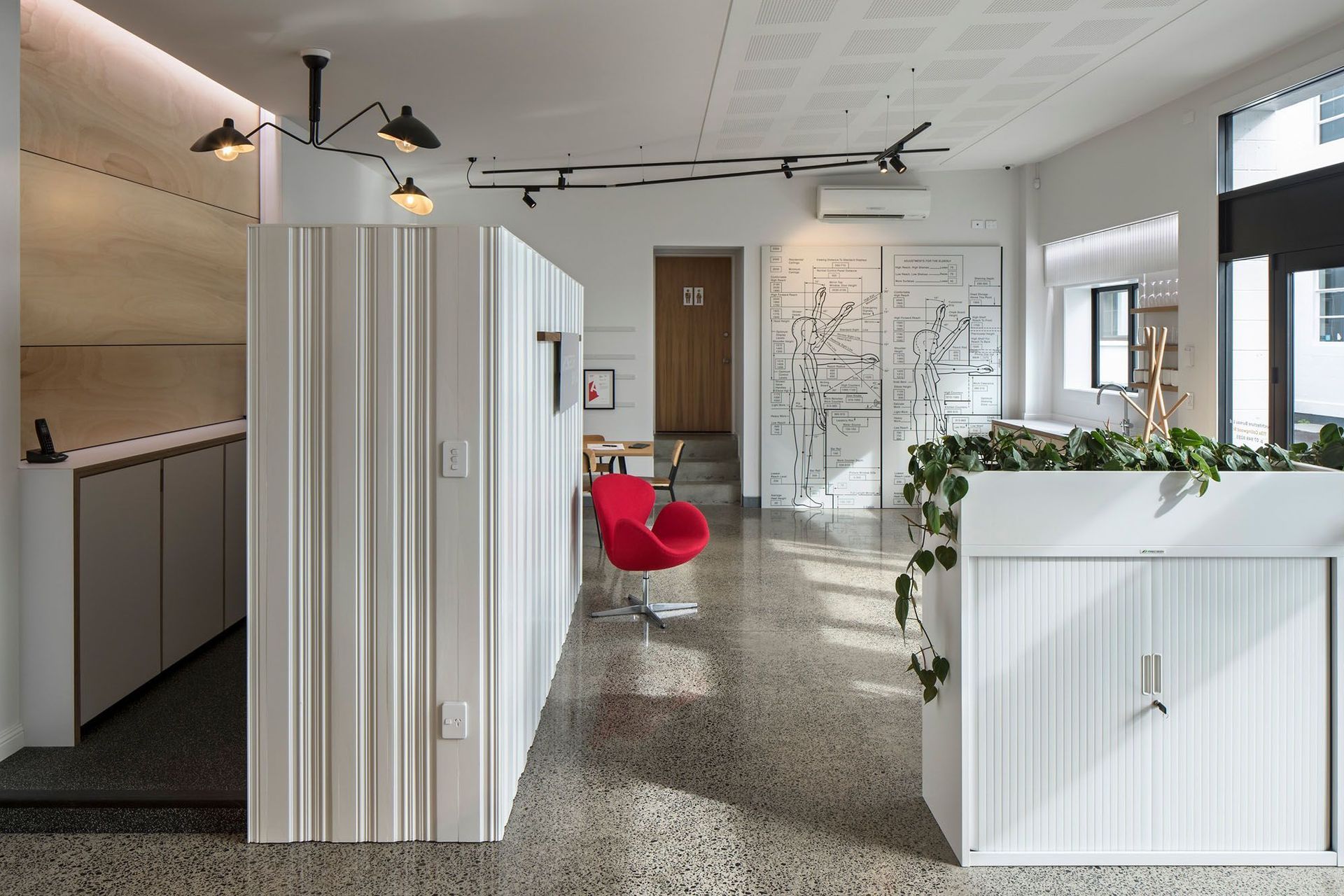ArchiPro Project Summary - Renovation of a 1970s office into a contemporary studio, maximizing space and natural light through innovative design and material selection, creating a cohesive, inviting workspace for Architecture Bureau in Hamilton's CBD.