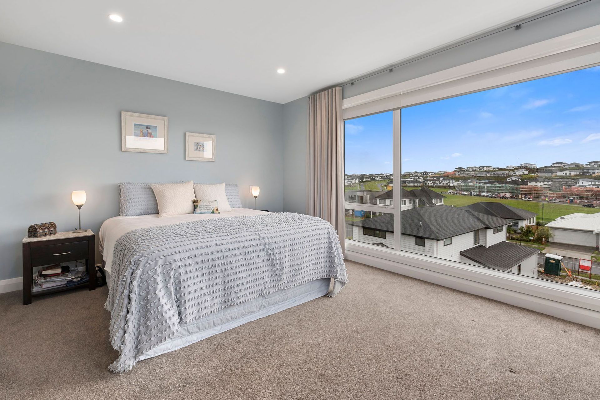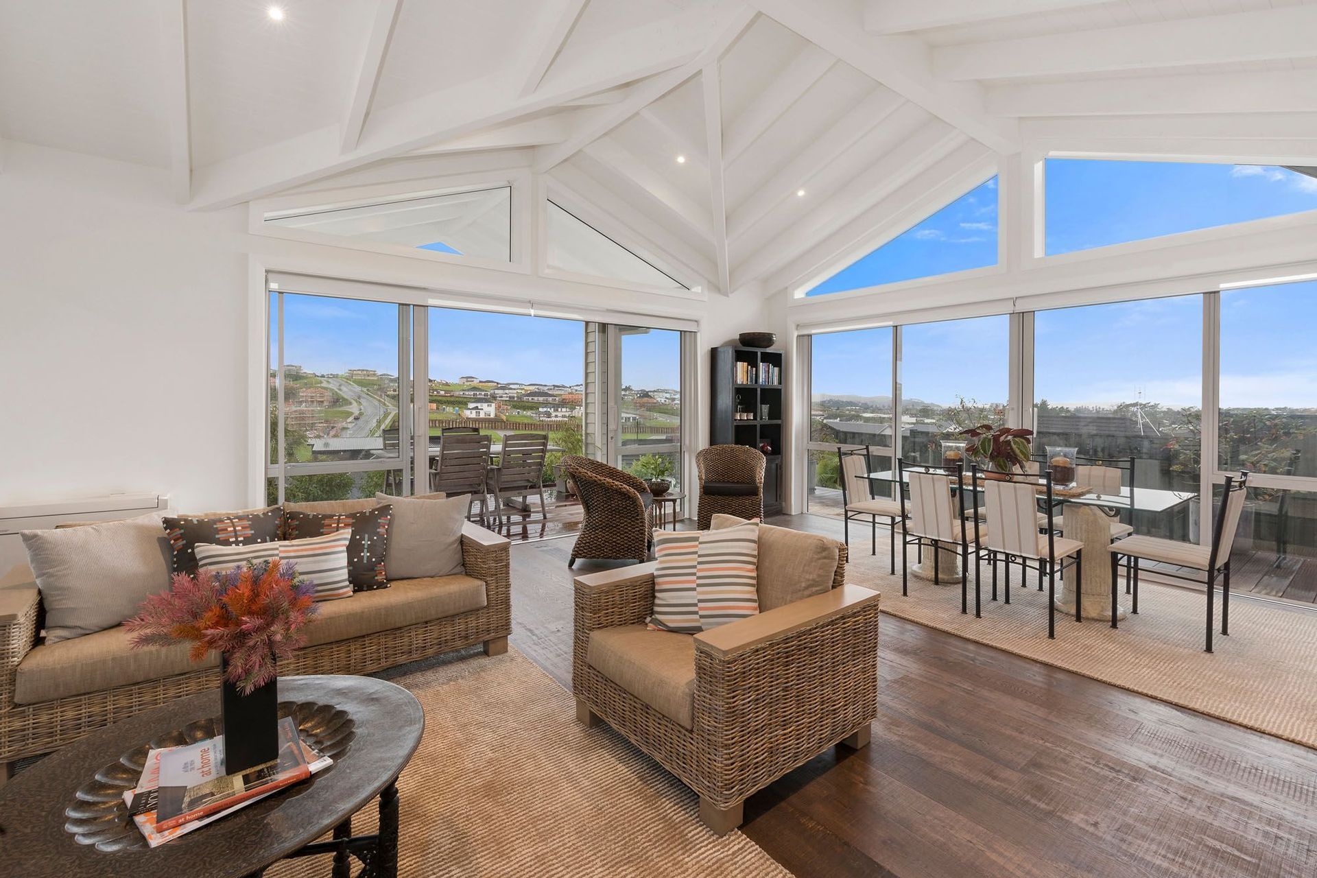ArchiPro Project Summary - Stylish split-level home near Auckland featuring open-plan living, spacious bedrooms, and elegant design elements, including a butler's pantry and luxurious freestanding bath, all while maximizing views from its elevated site.
