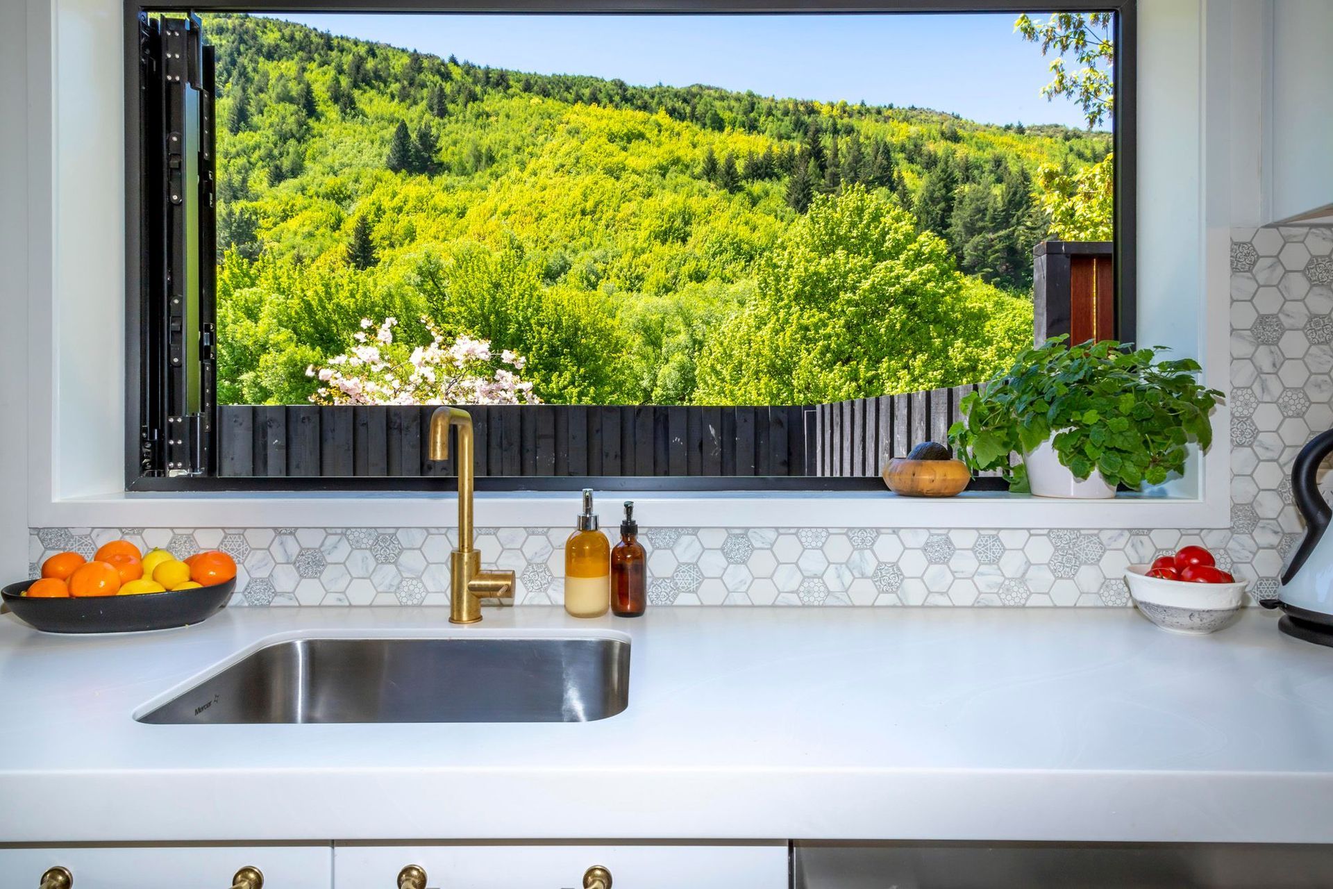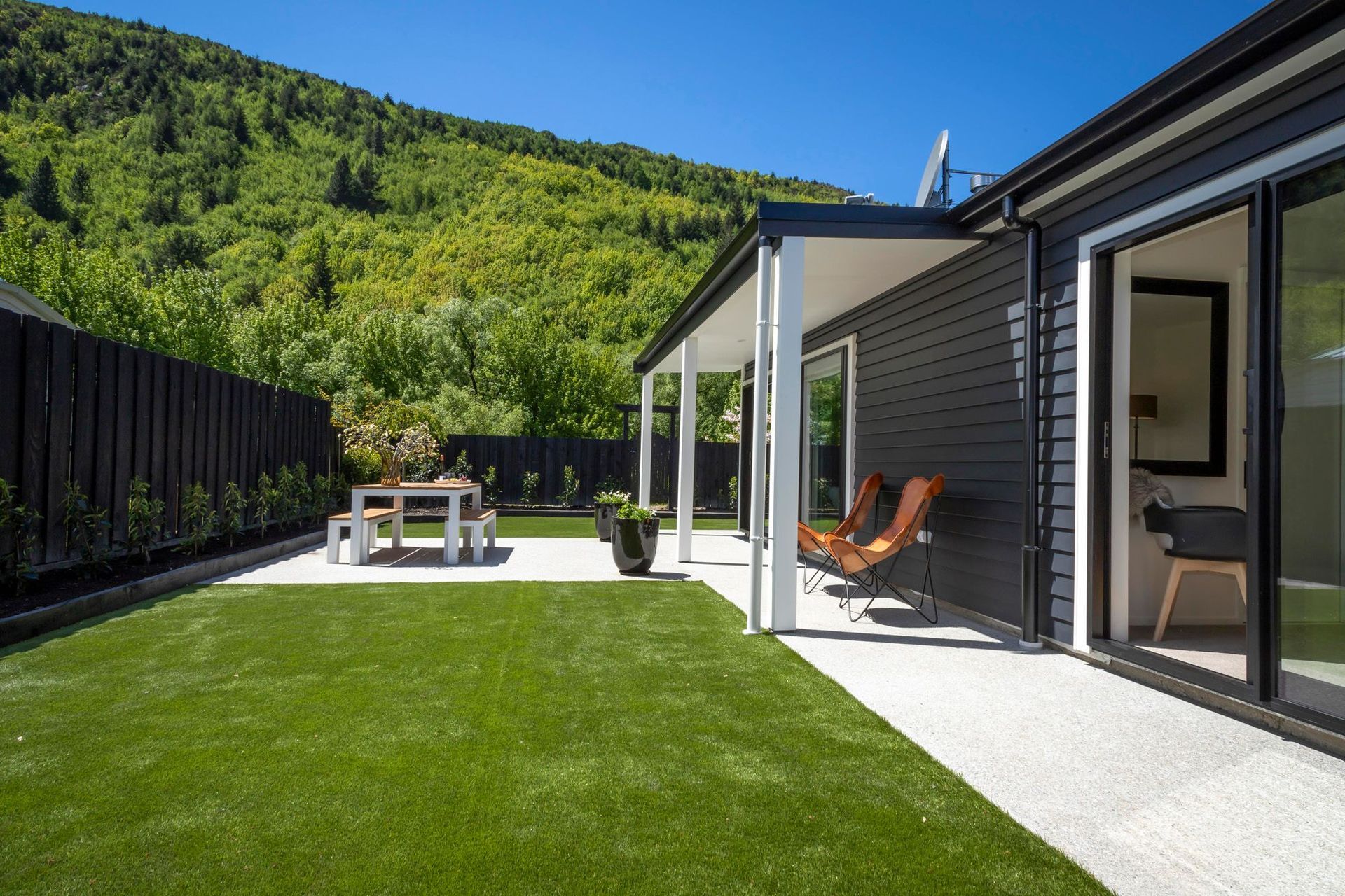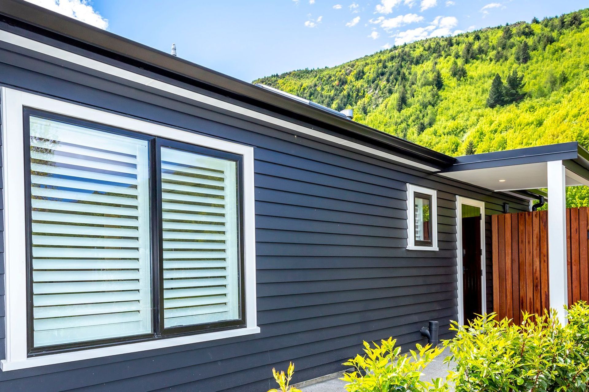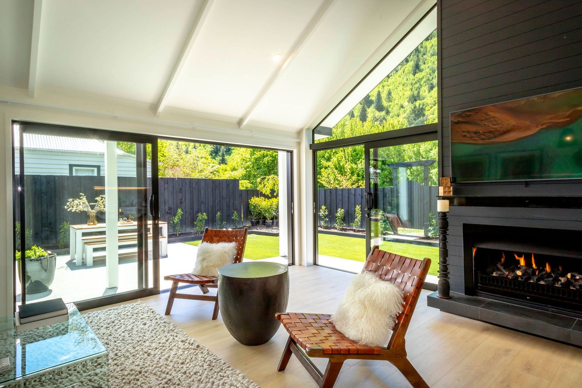 ArchiPro Project Summary - A stunning renovation of a 2-bedroom cottage at the base of Tobins Track, featuring a new roof structure, full-height gable window, and modern heating solutions, seamlessly blending indoor comfort with breathtaking views of Arrowtown's landscape.
