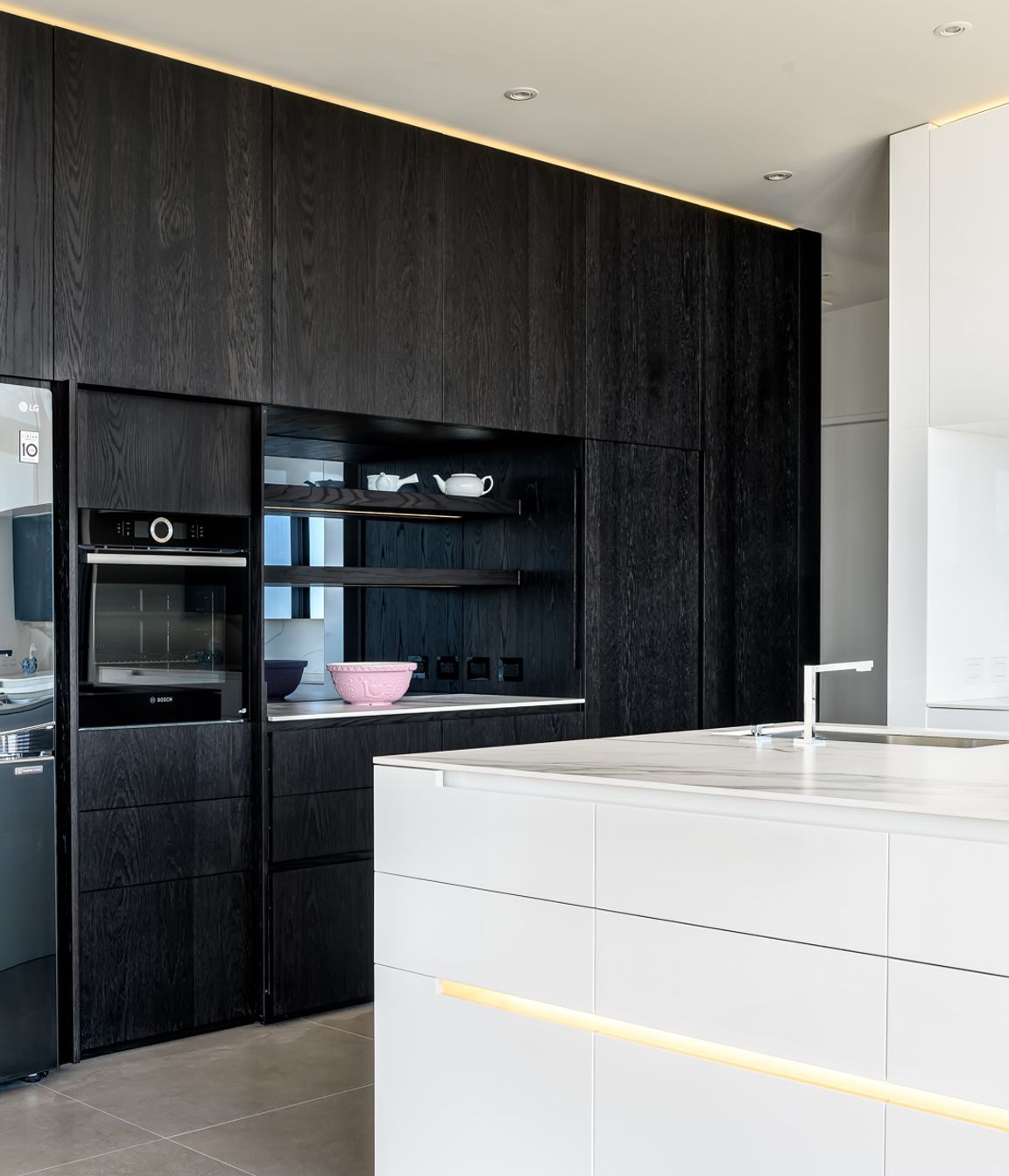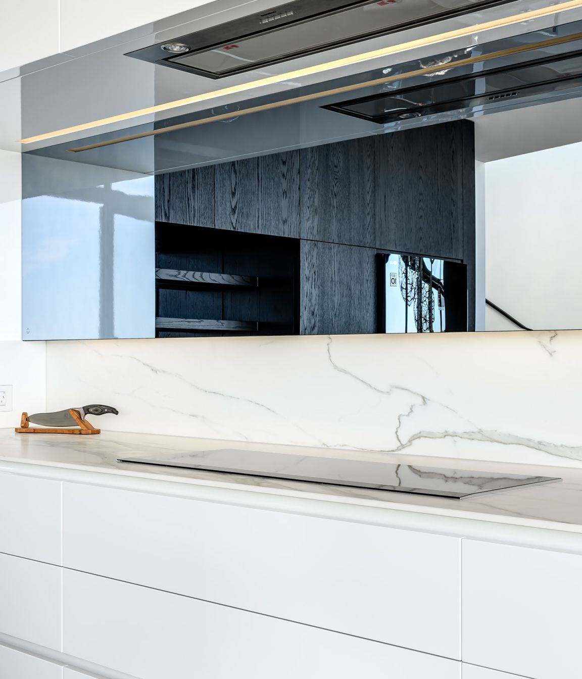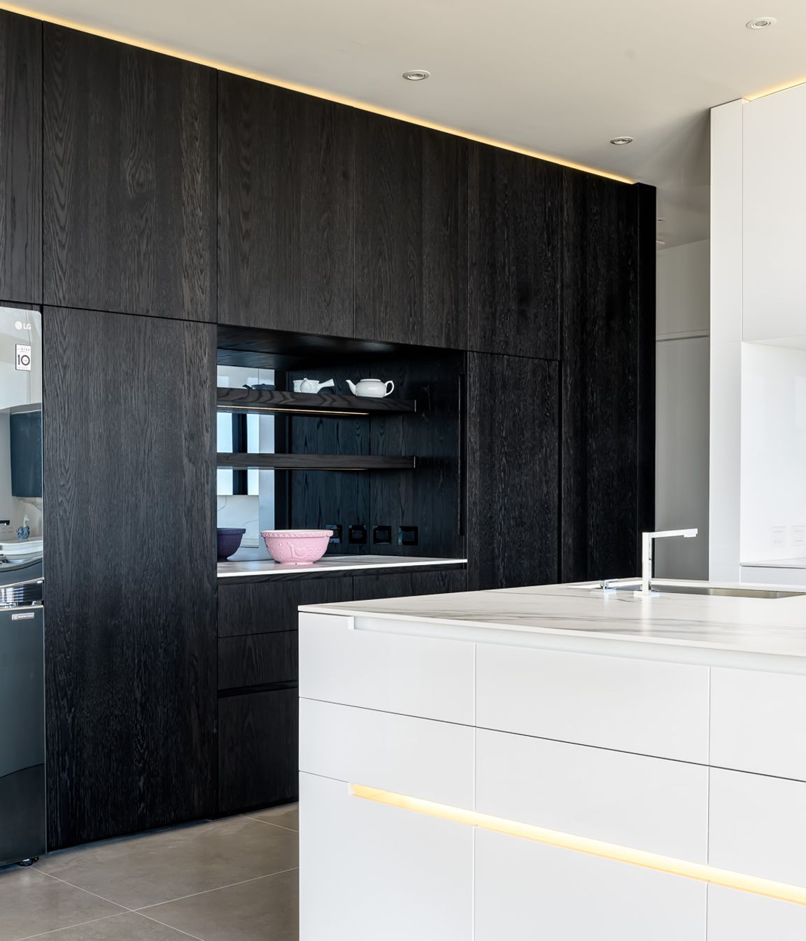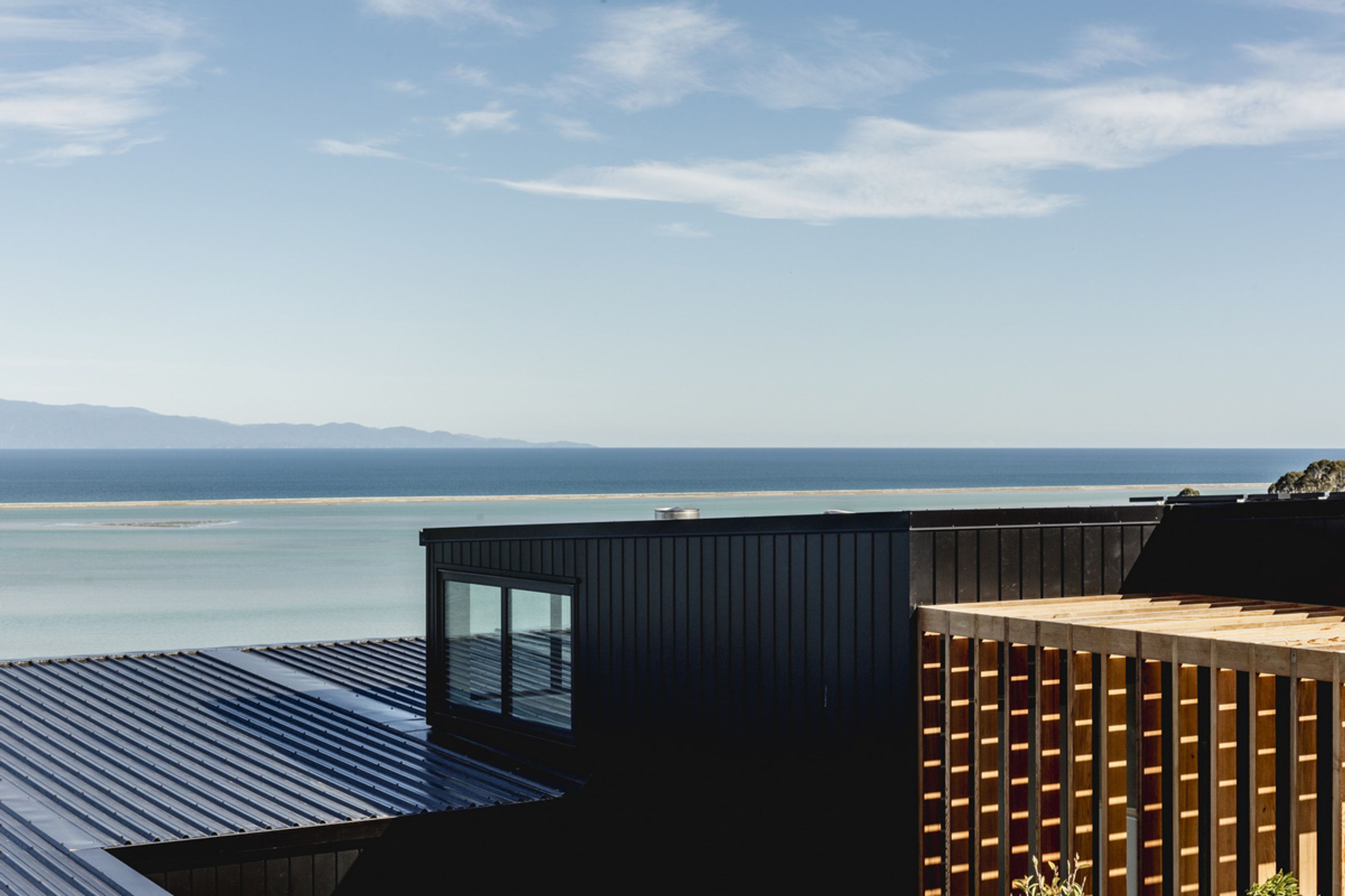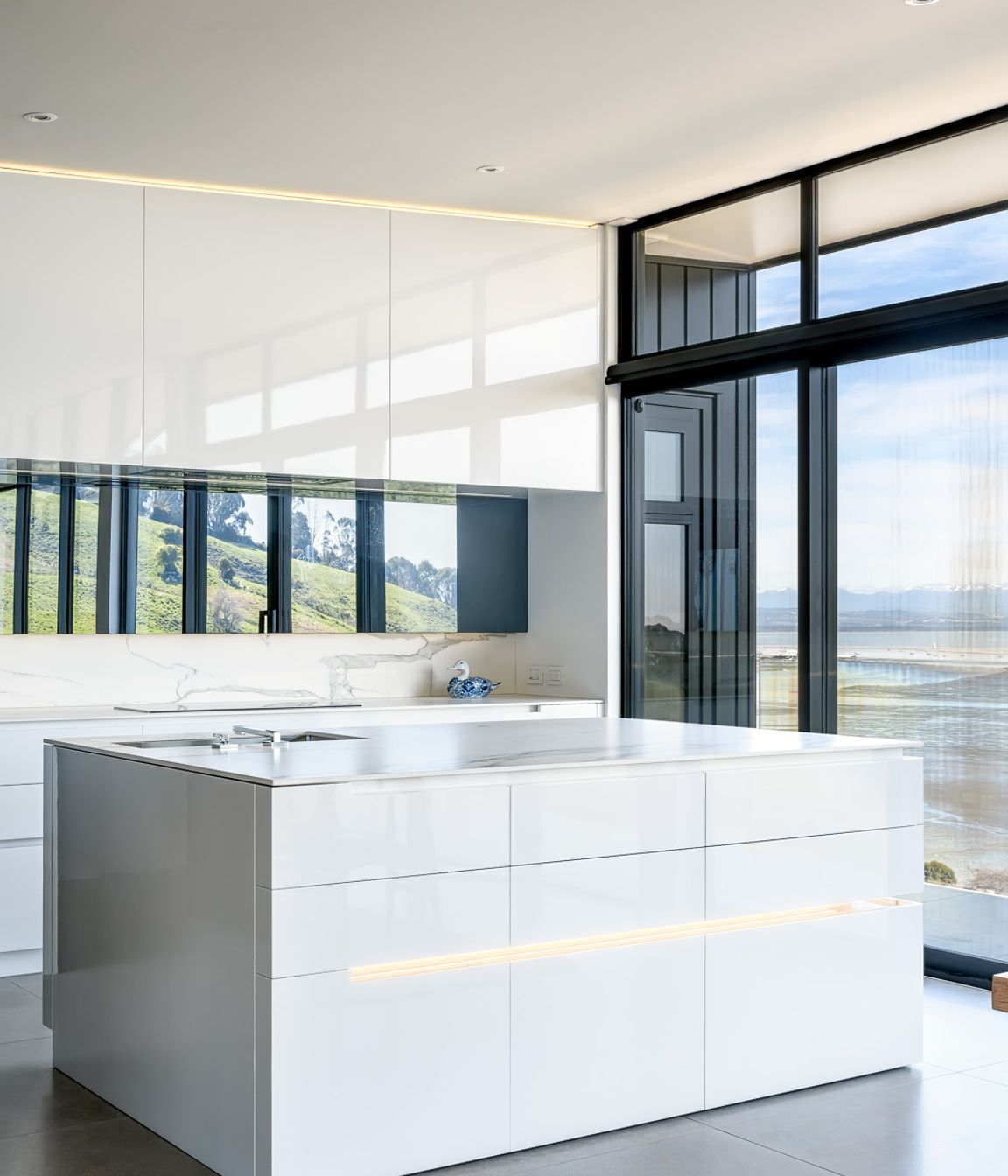 ArchiPro Project Summary - A stunning residence in Atawhai, Nelson, designed by Klaus Todt and Redbox Architects, featuring a custom kitchen and cabinetry that harmoniously blend high gloss and matte finishes, maximizing breathtaking sea views and natural light.