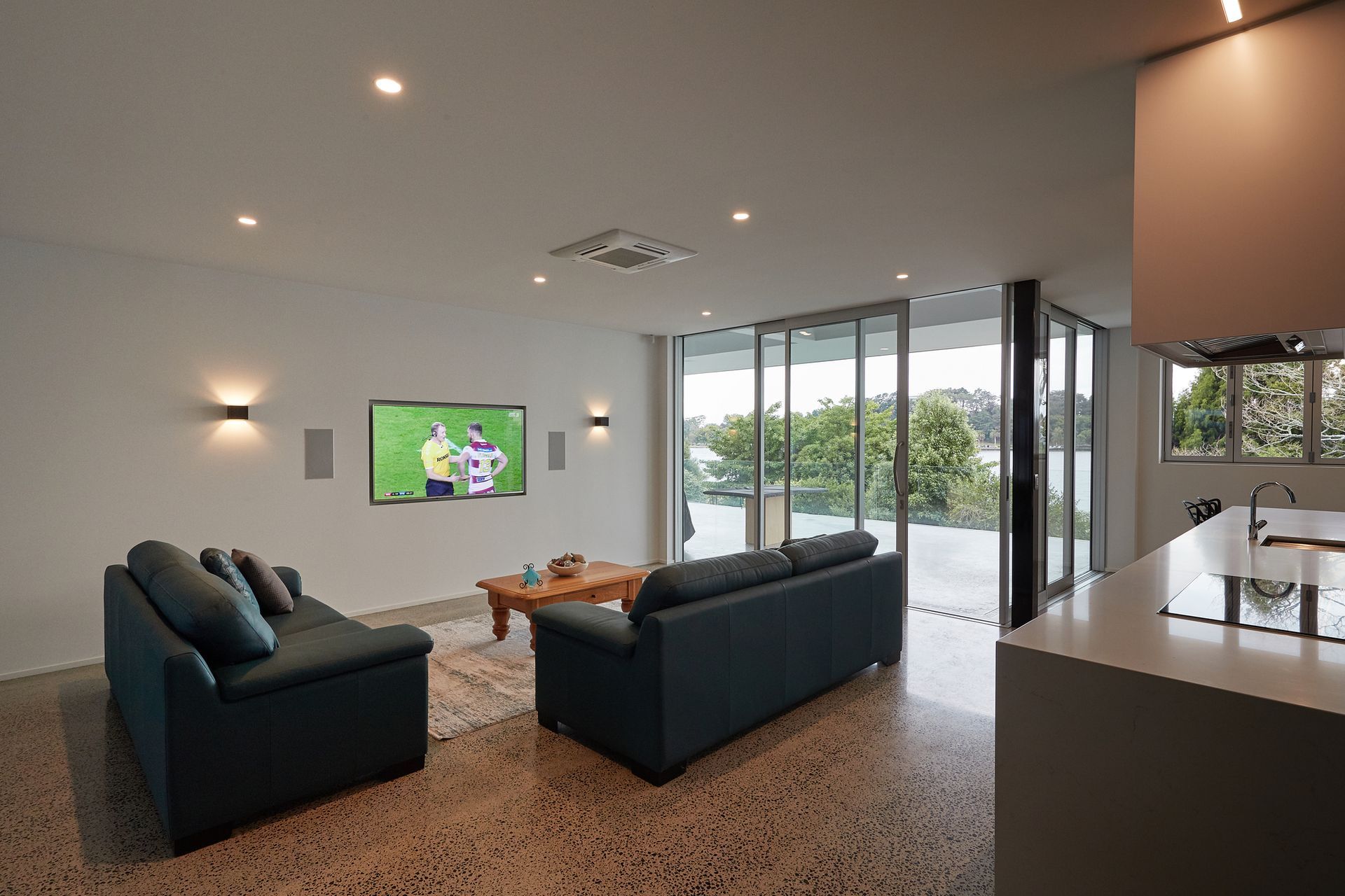 ArchiPro Project Summary - A stunning lakeside residence featuring integrated Control4 automation for seamless audio-visual, lighting, HVAC, and security control, designed for ease of use and aesthetic appeal.