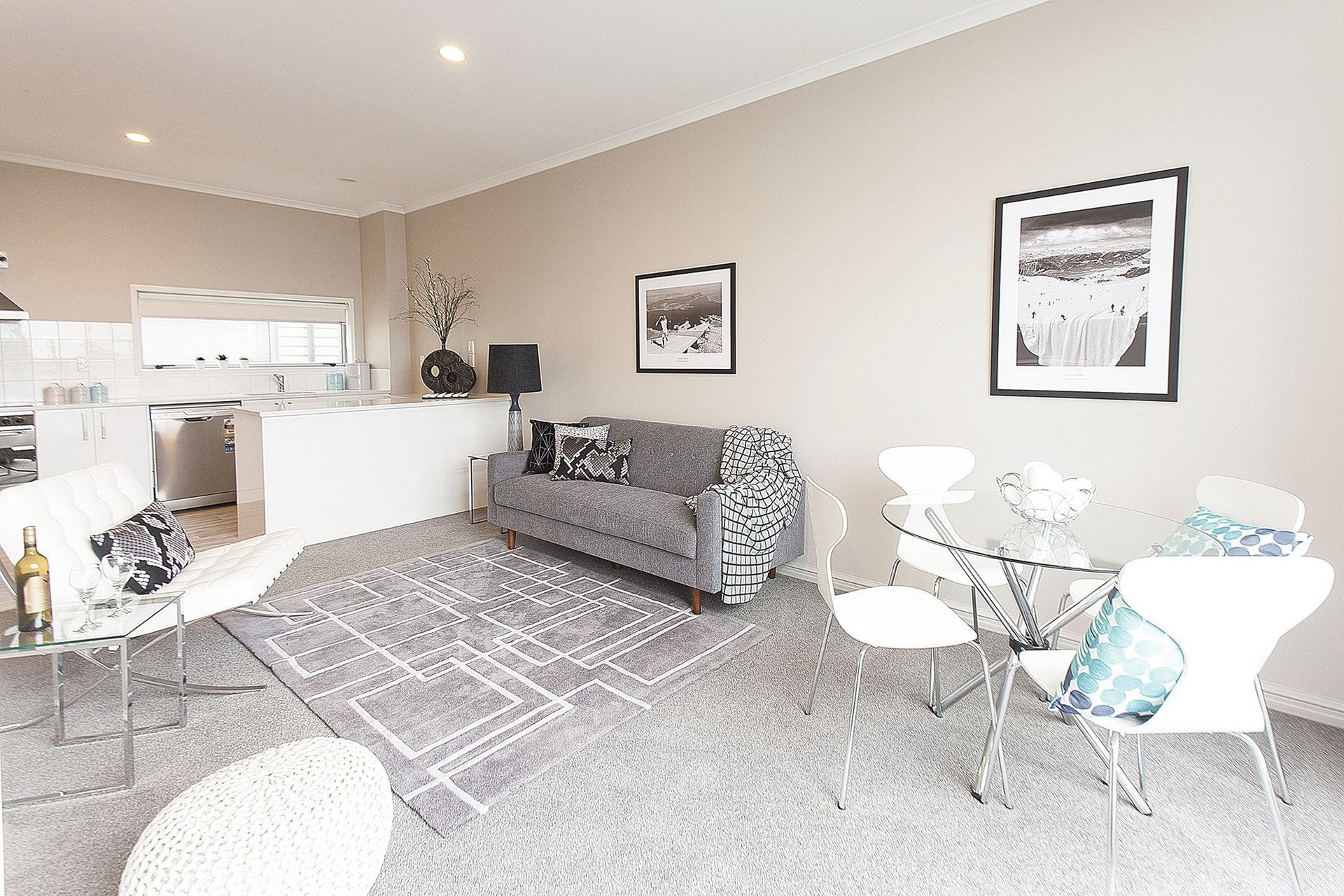 ArchiPro Project Summary - Comprehensive pre-sale renovation of an Auckland City apartment featuring updated paint, carpets, bathroom fixtures, kitchen enhancements, and new flooring.