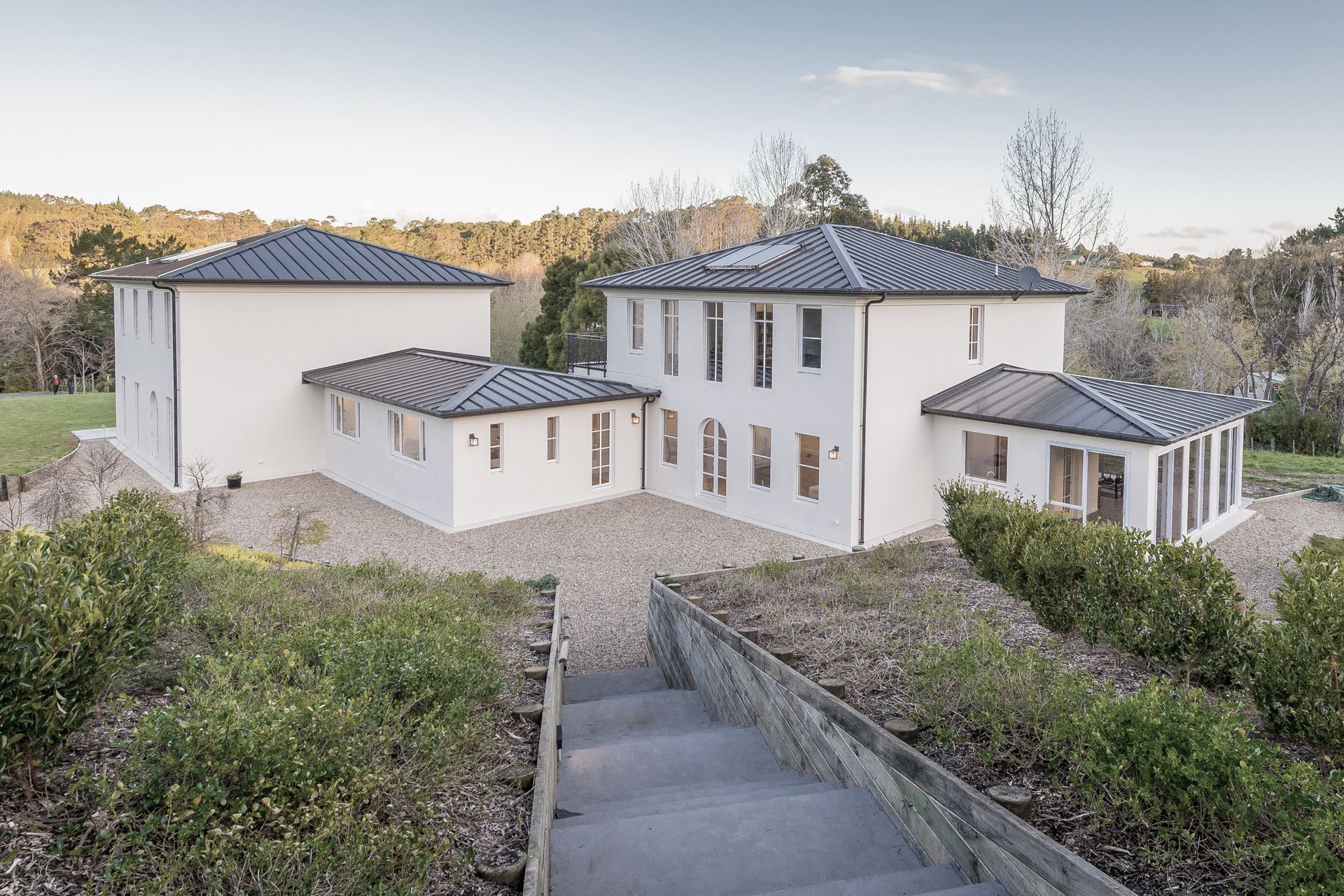 ArchiPro Project Summary - A stunning Passive House in Coatesville, Auckland, completed in 2013, featuring a French architectural style, designed for multi-generational living with high-performance insulation and eco-friendly systems for optimal energy efficiency.
