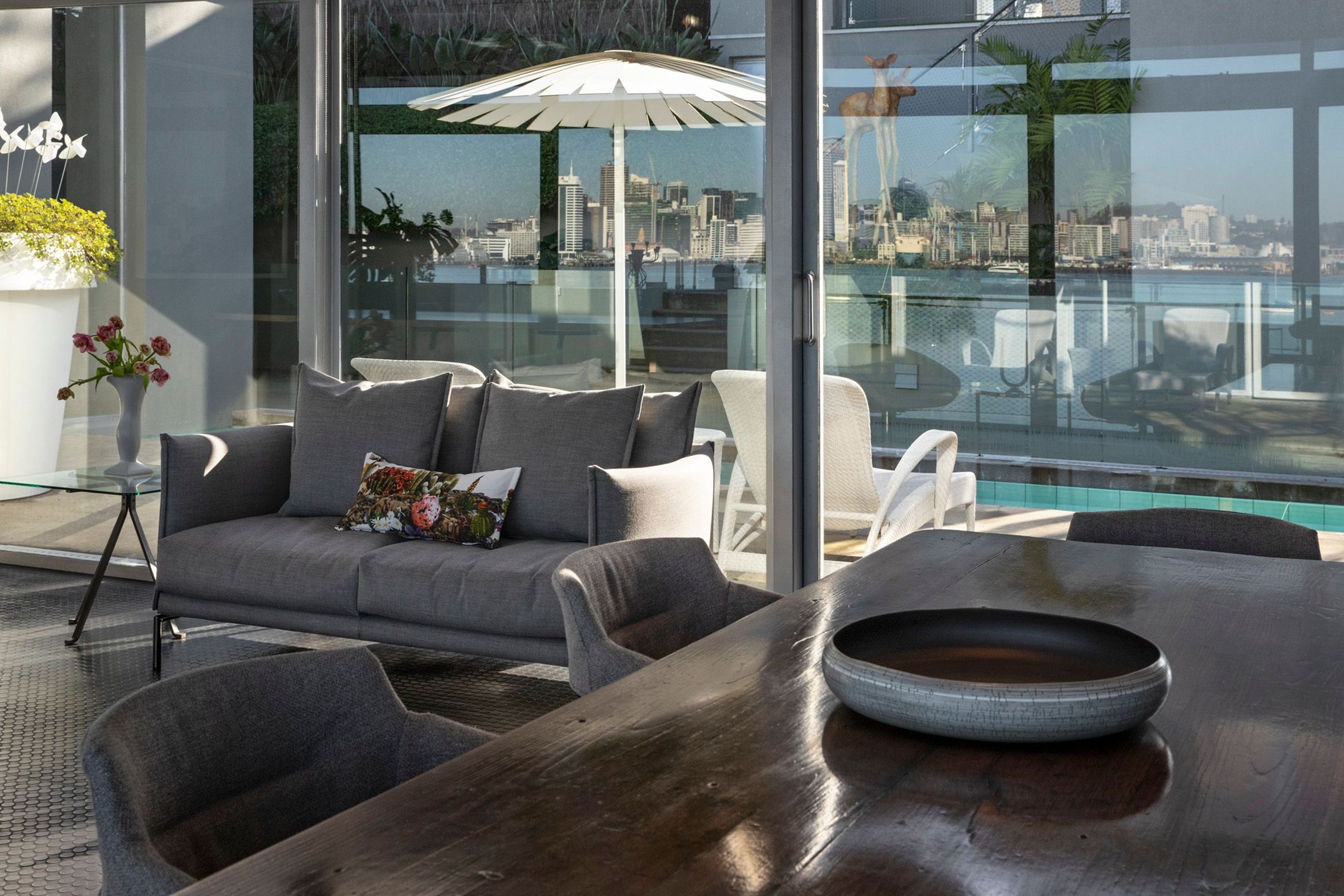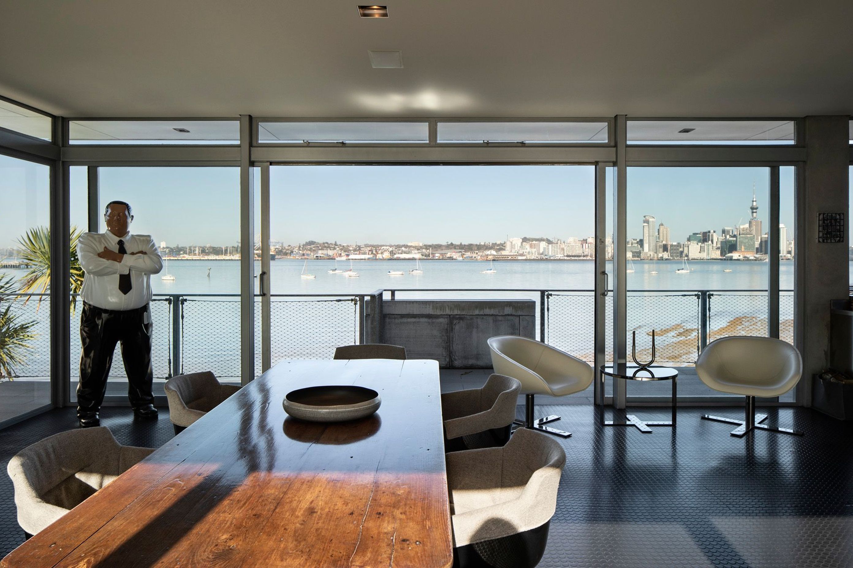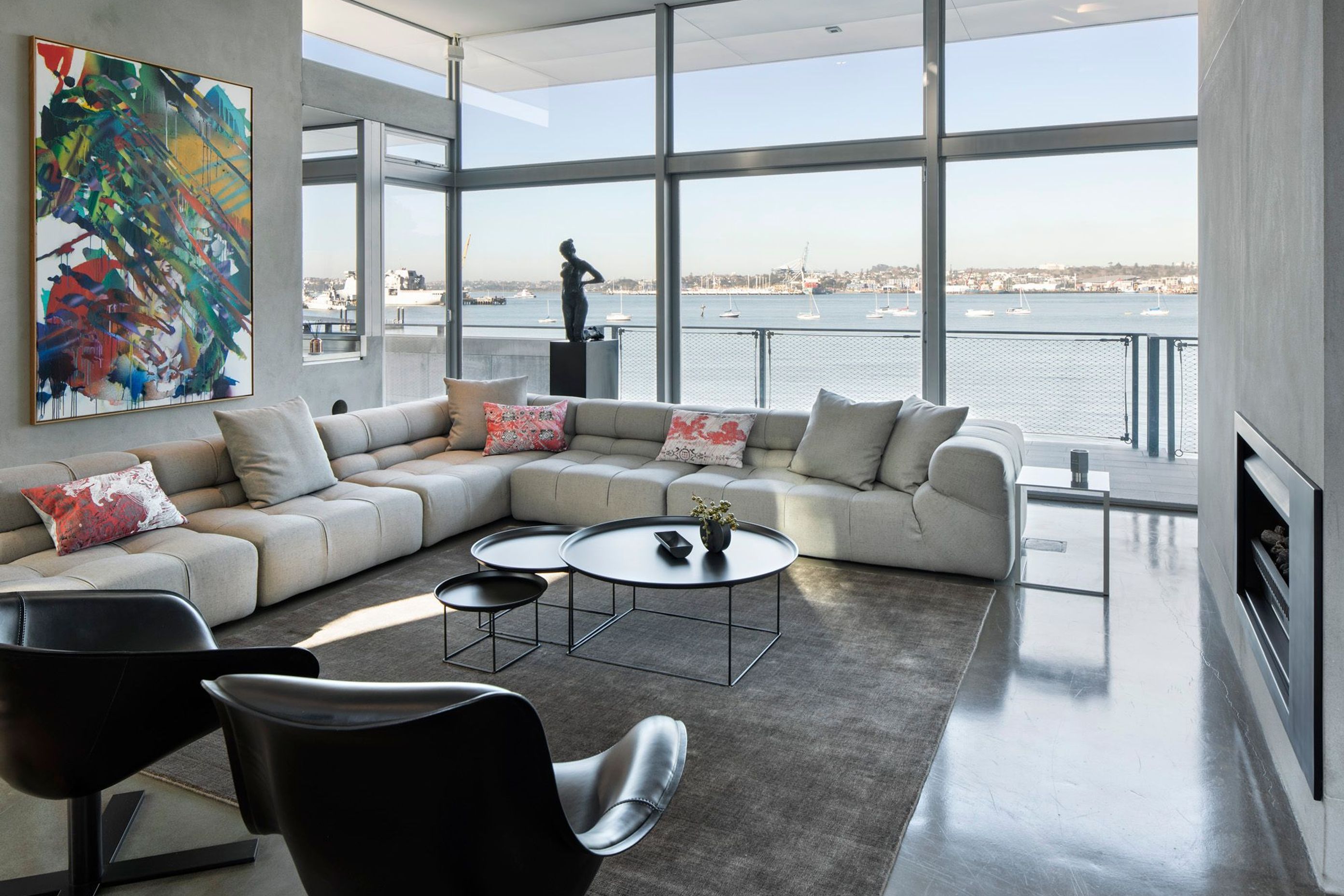 ArchiPro Project Summary - A contemporary interior update for the Auckland Inner Harbour Residence, enhancing living and dining spaces while preserving stunning artwork and panoramic views of the city.