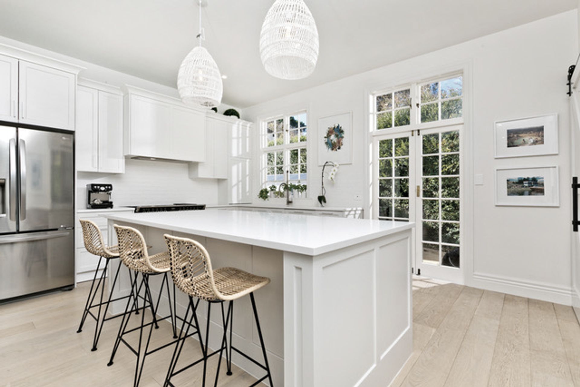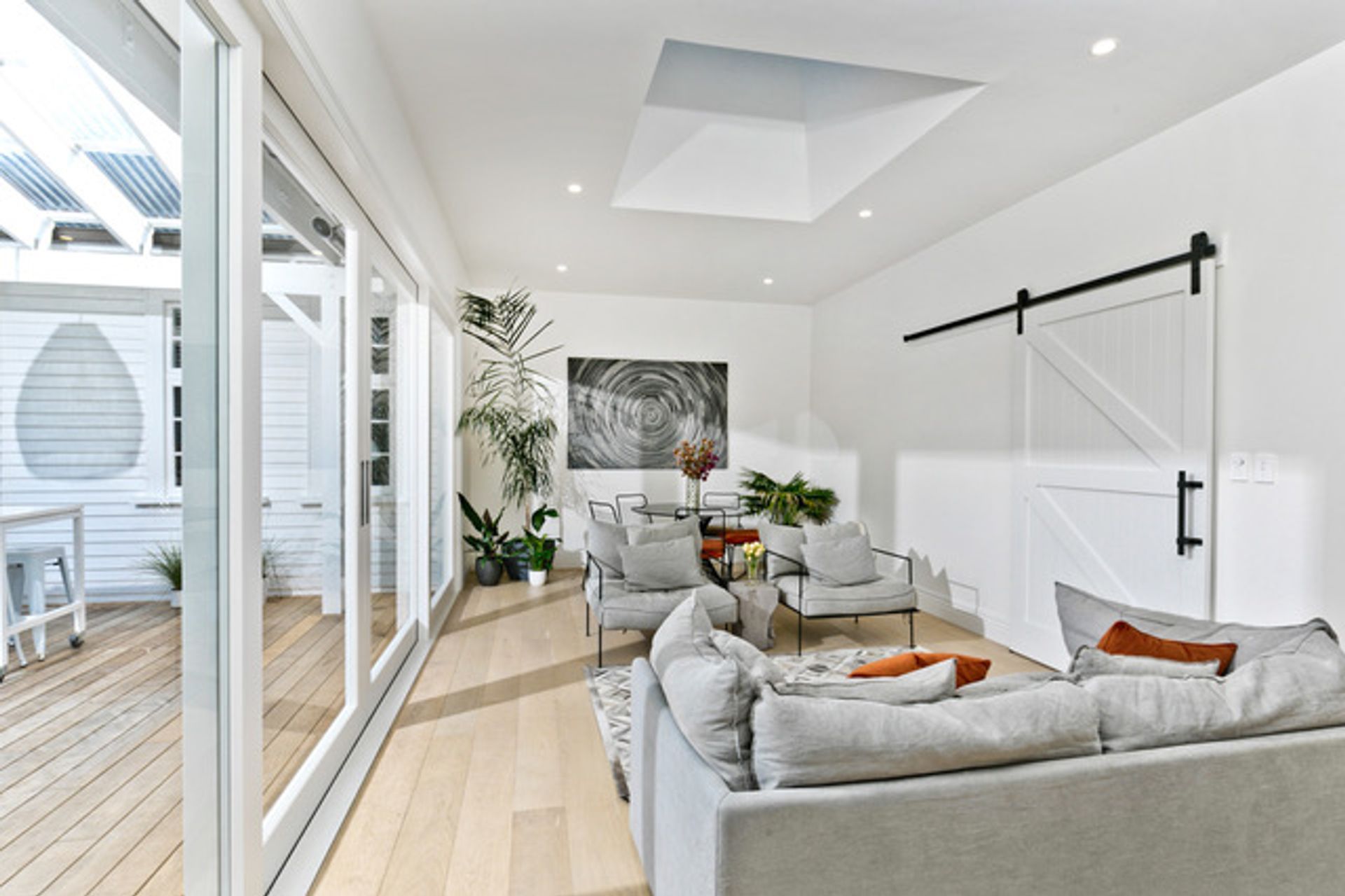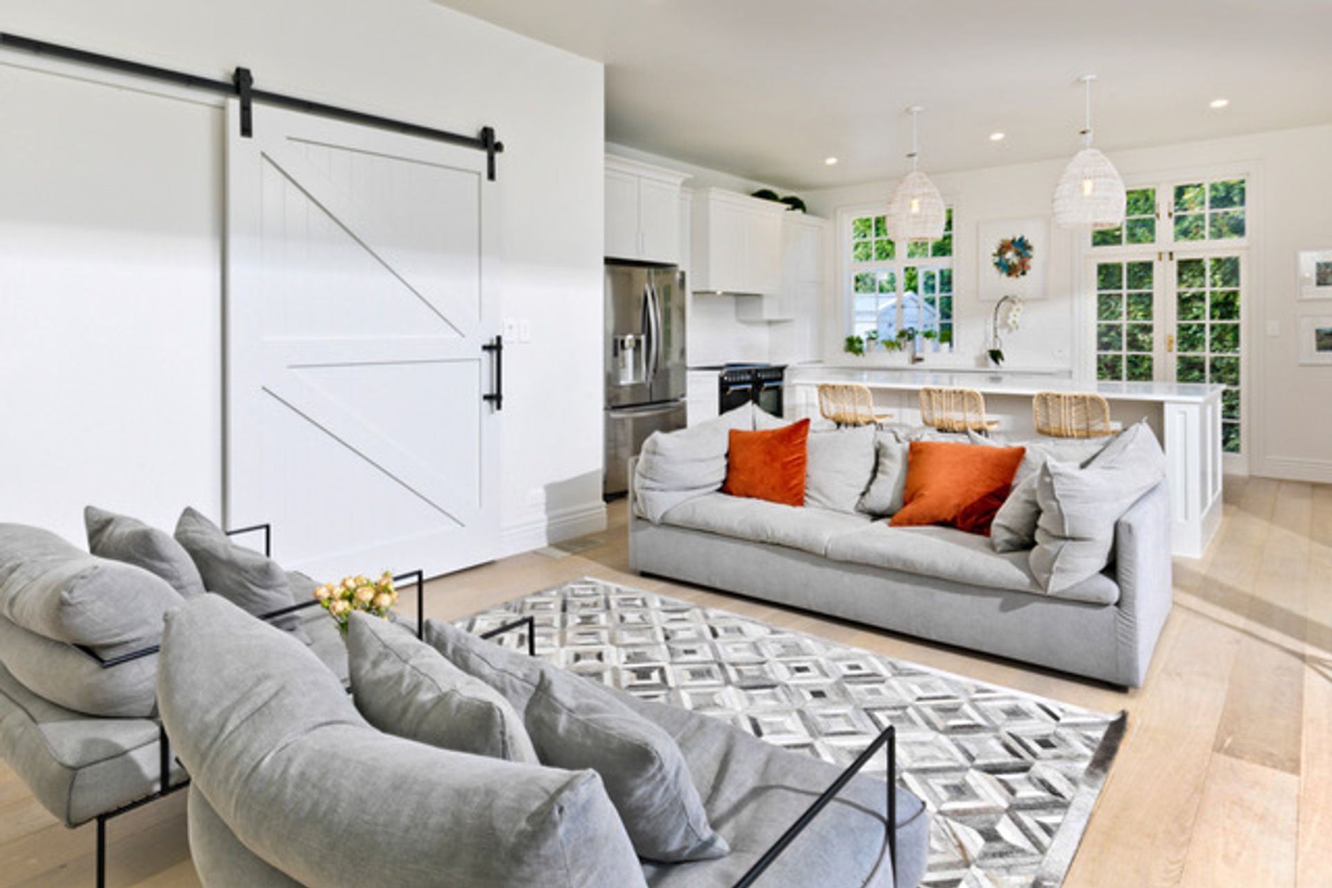 ArchiPro Project Summary - A seamless blend of modern functionality and 1920s charm in a renovated villa, featuring a scullery and barn doors, expertly crafted despite challenges of uneven floors and walls within a tight timeframe.