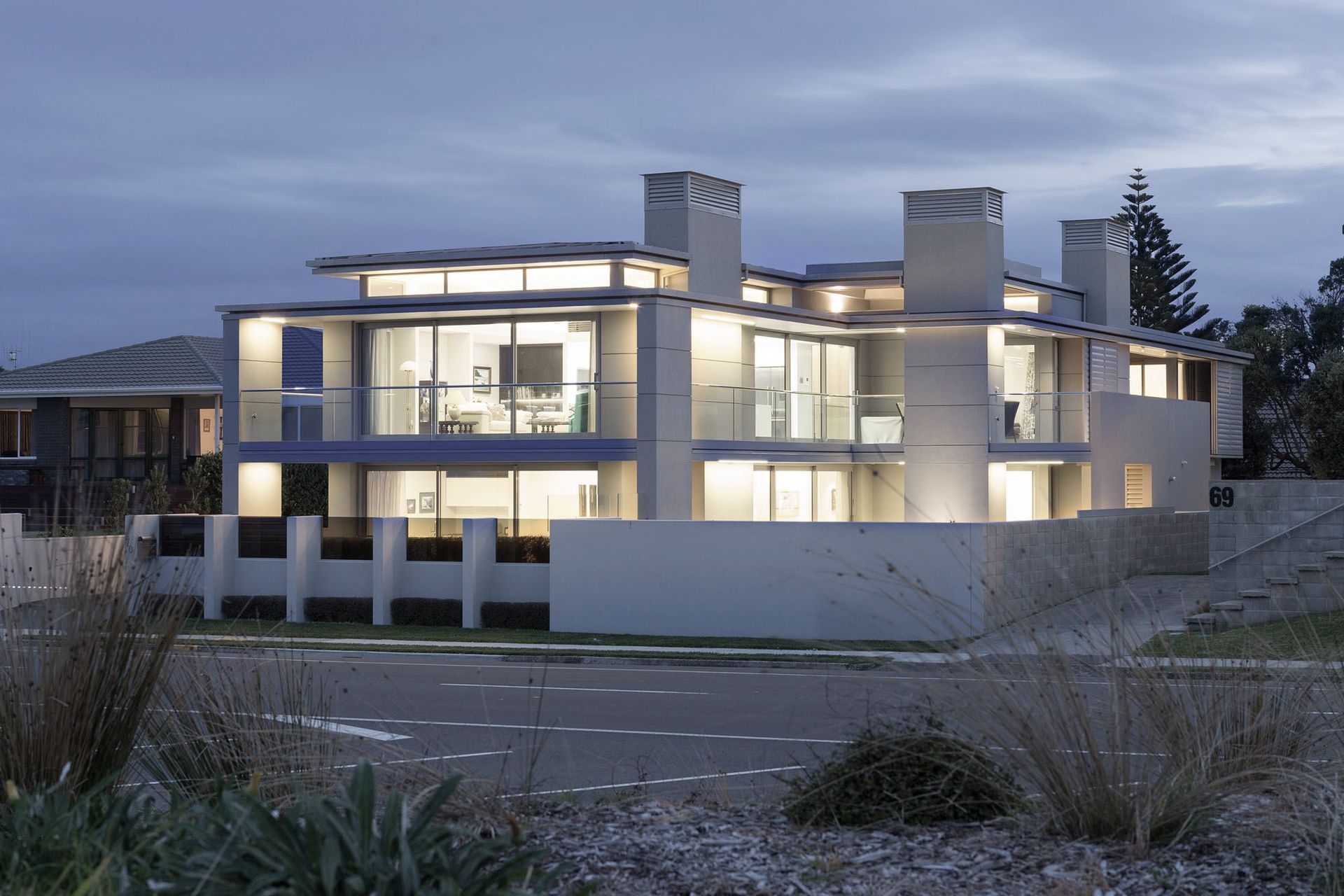 ArchiPro Project Summary - Award-winning modernist beachside residence featuring bespoke AVÉORA Pure cabinetry, designed to enhance stunning coastal views while maintaining a contemporary aesthetic.