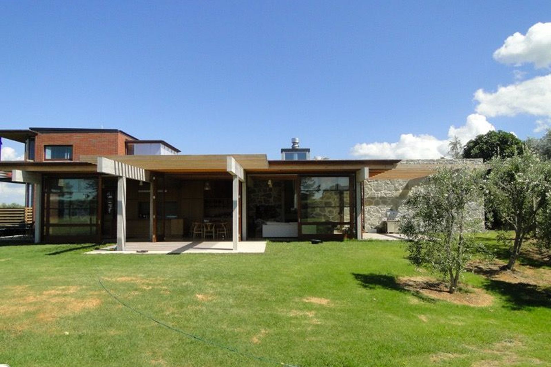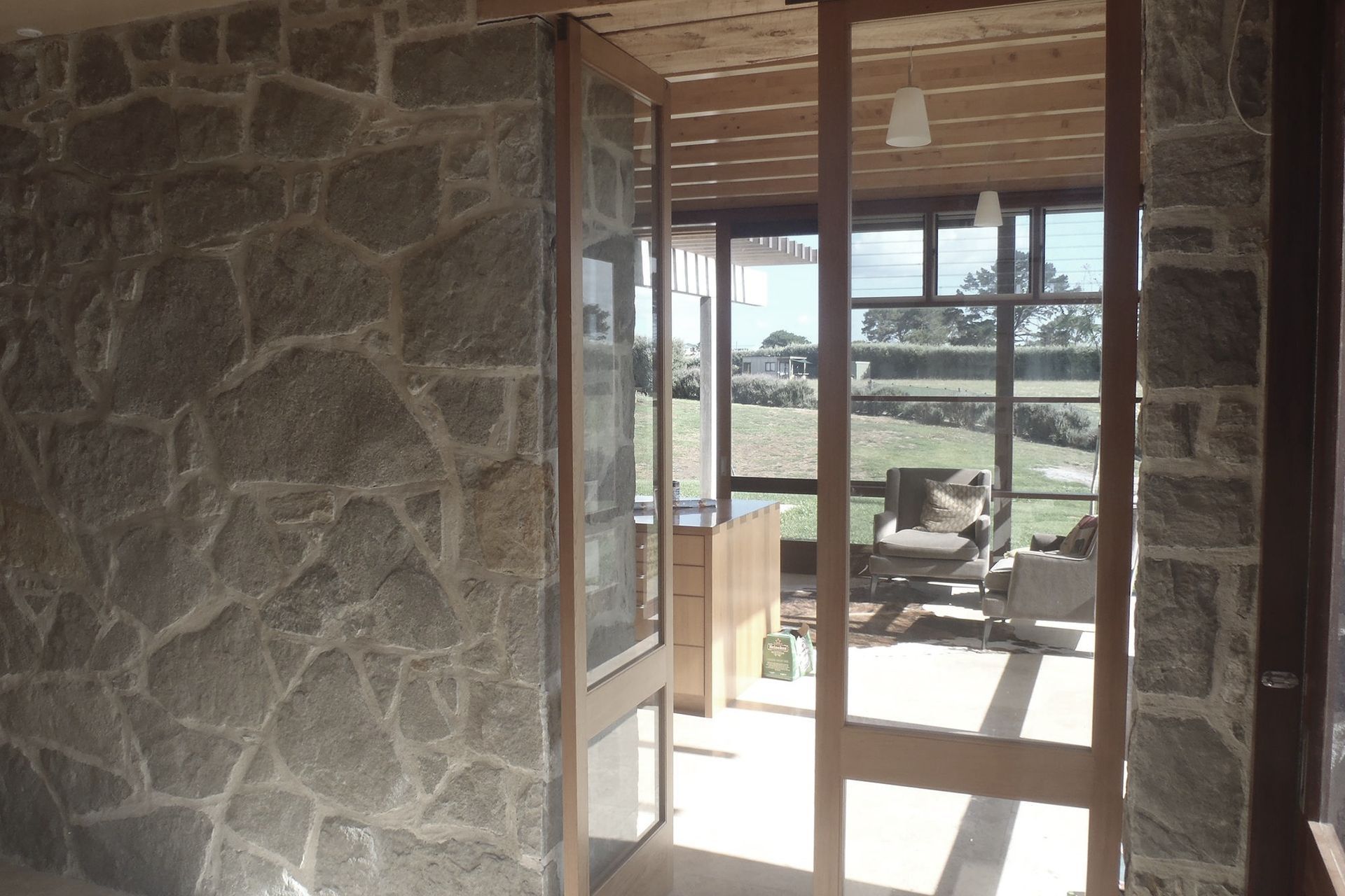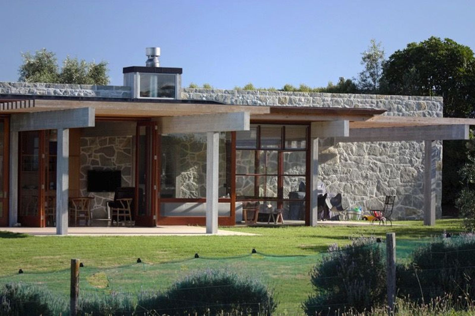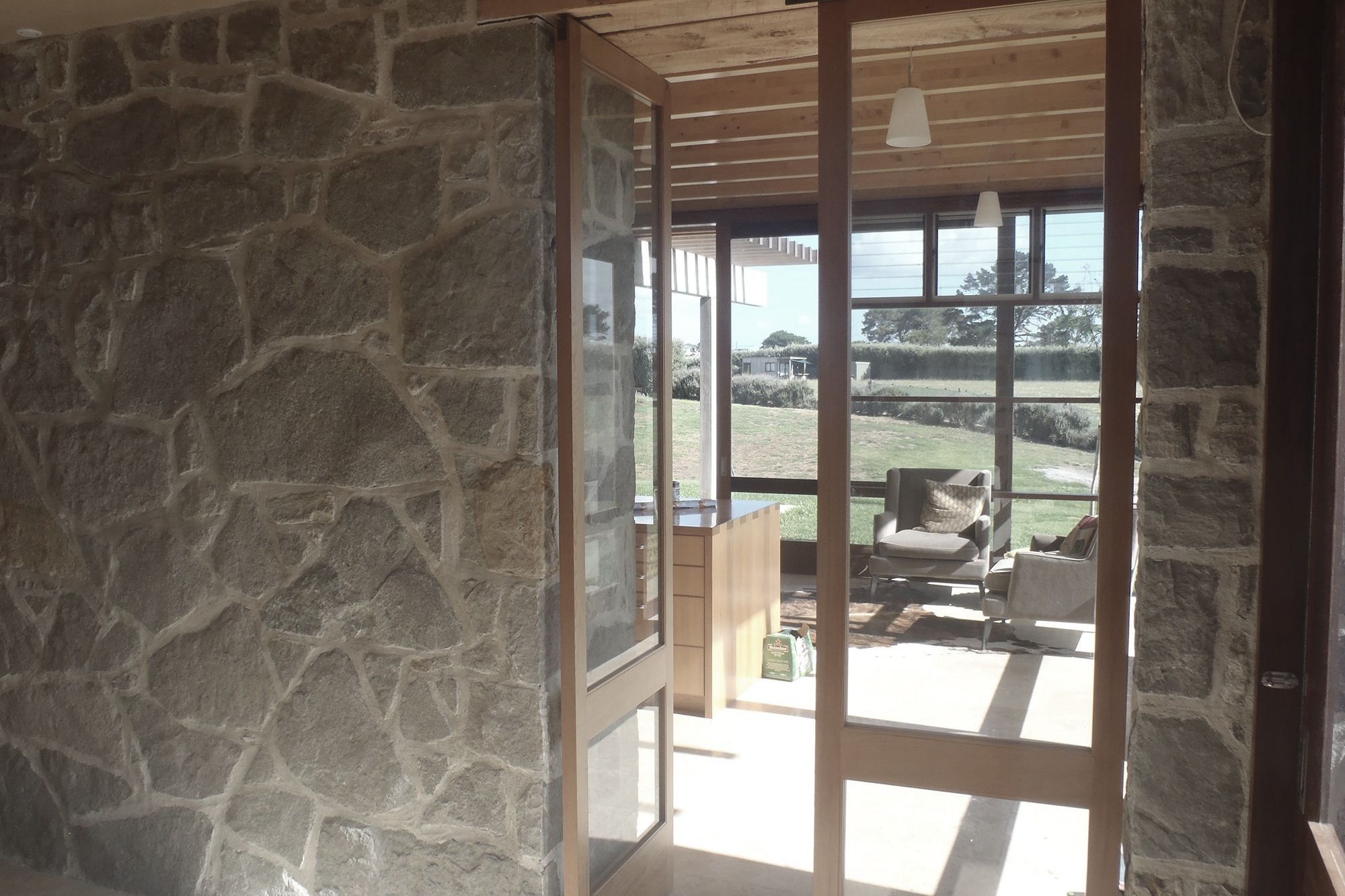 ArchiPro Project Summary - Awhitu Vineyard features modern design with wood, composite materials, and stone walls, creating an inviting atmosphere for visitors.