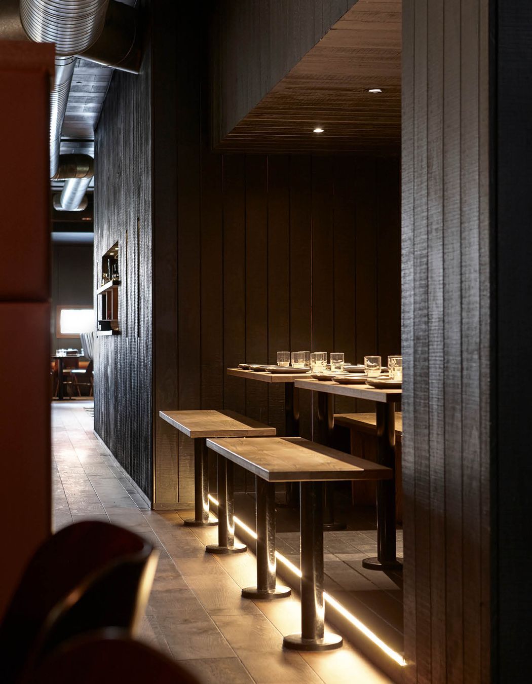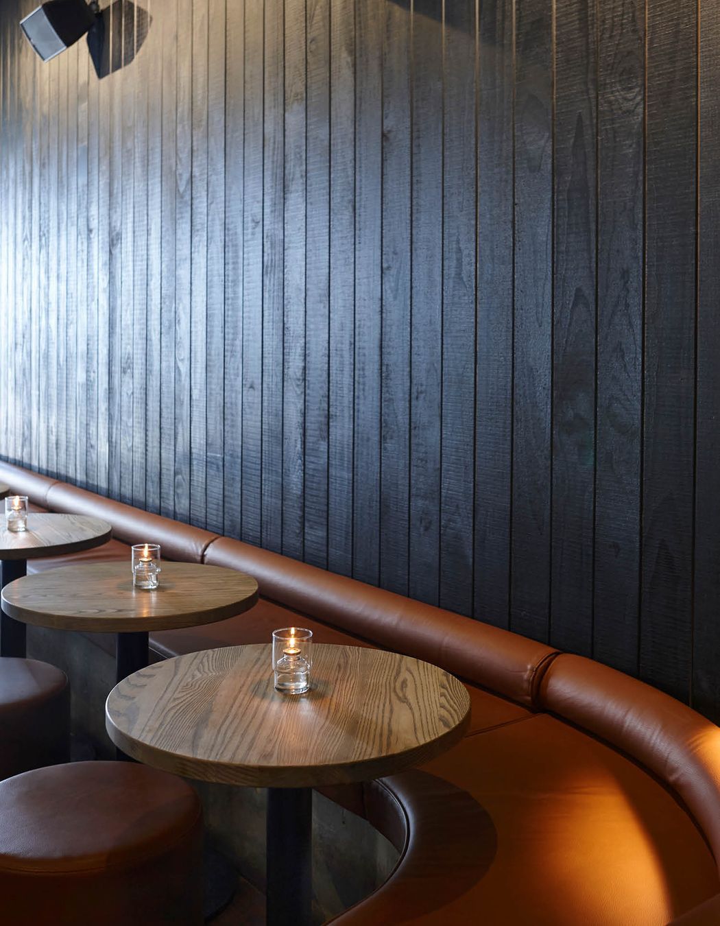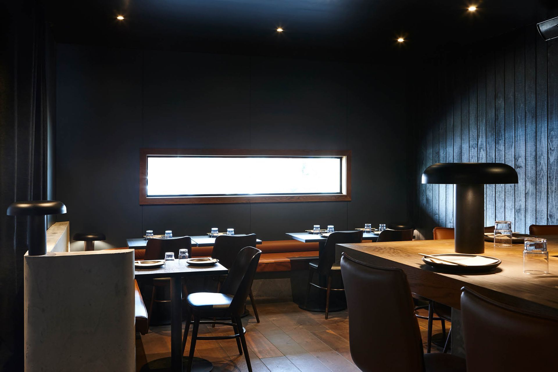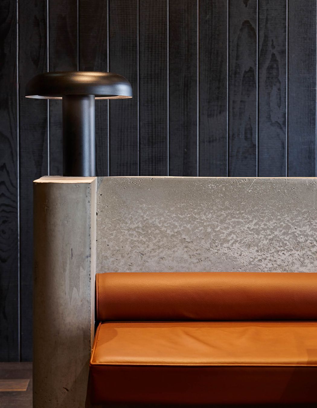 ArchiPro Project Summary - A vibrant transformation of the Britomart Ebisu Japanese restaurant featuring orange leather booths, a de-tuned blue entry, and elegant oak sushi and roji bar, creating a unique dining experience with a Peruvian twist in Grey Lynn, Auckland.