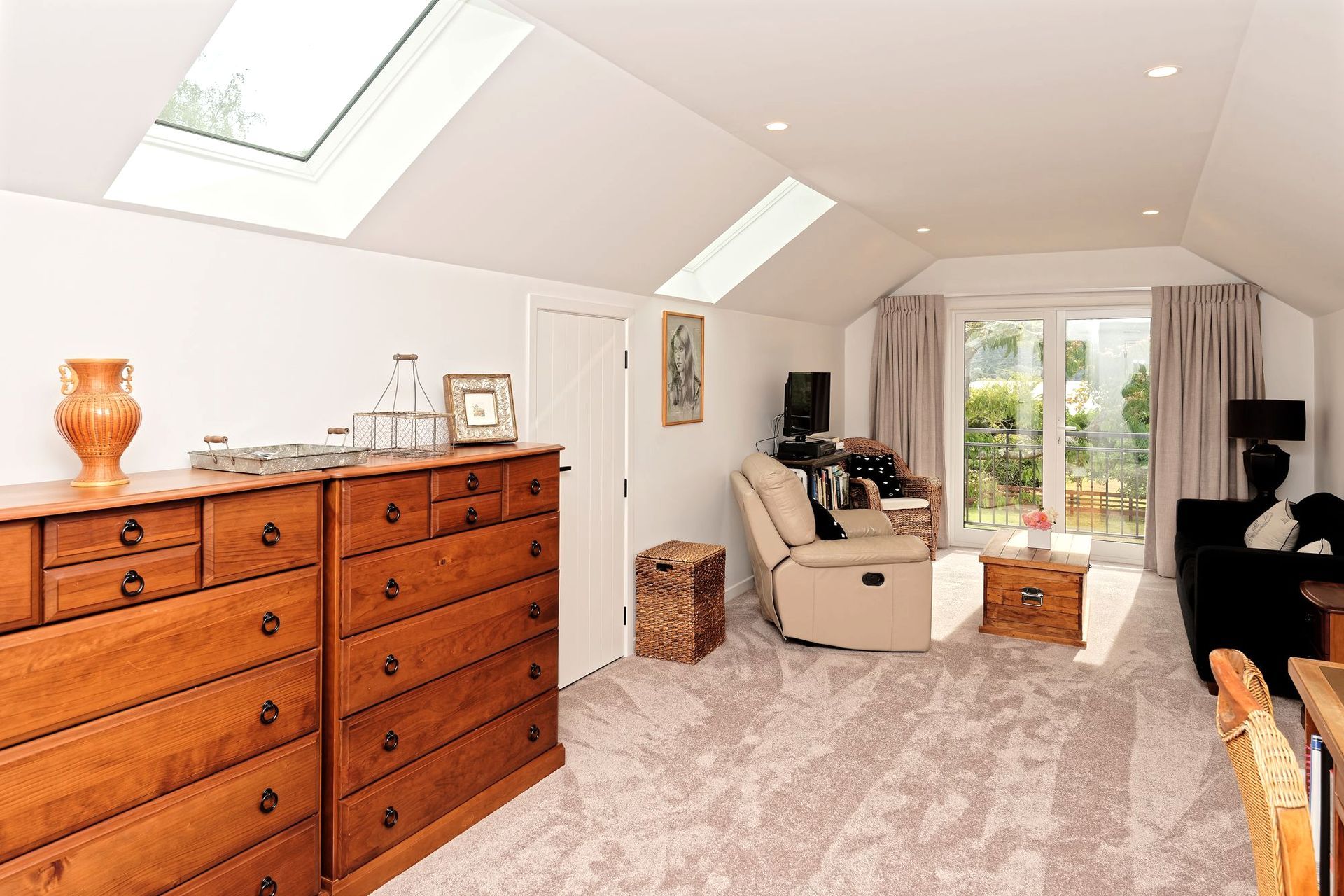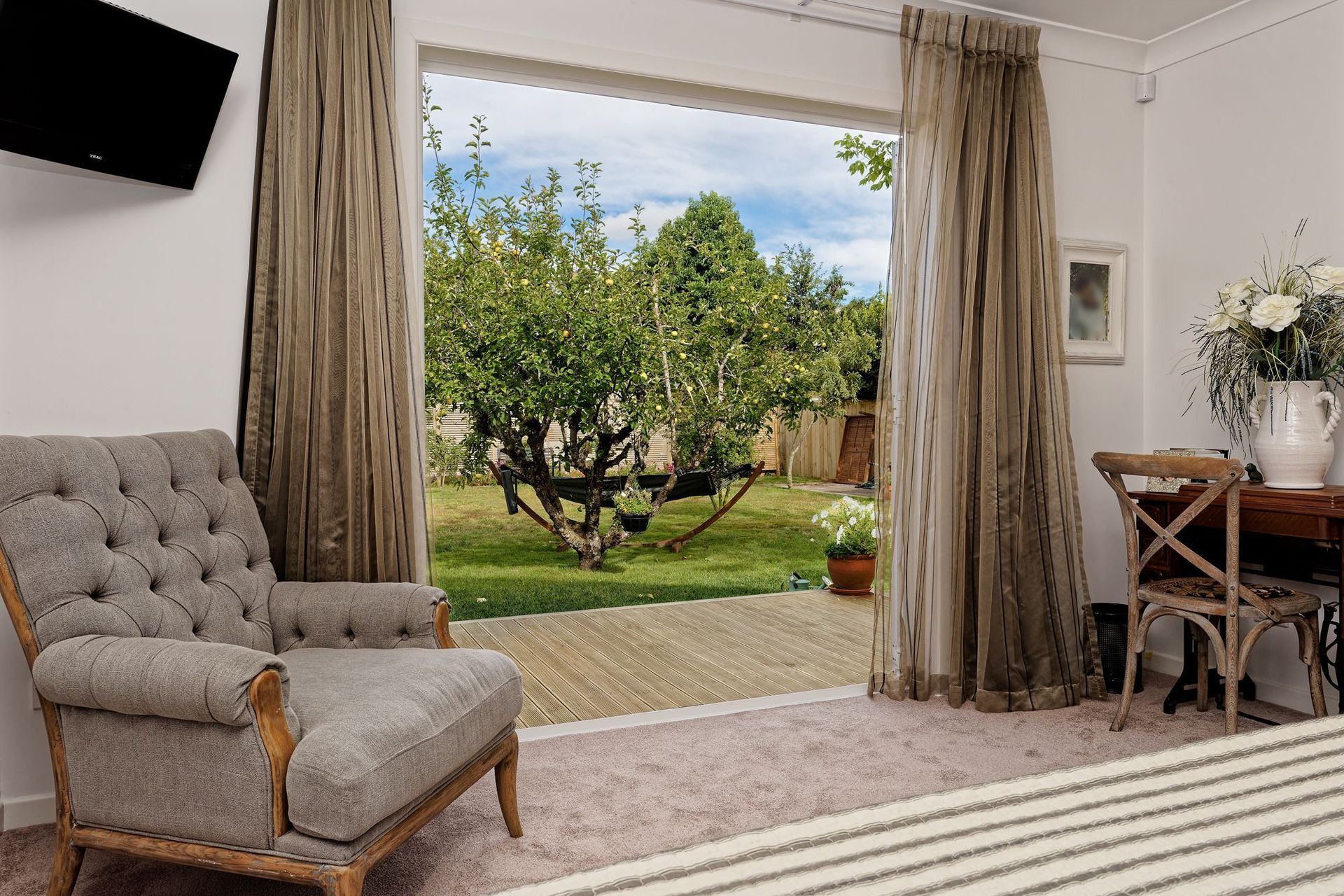 ArchiPro Project Summary - Renovation and extension of a classic Lakehouse Bach, featuring an upstairs bedroom created with attic trusses and seamless indoor/outdoor flow through sliding doors leading to a spacious deck.