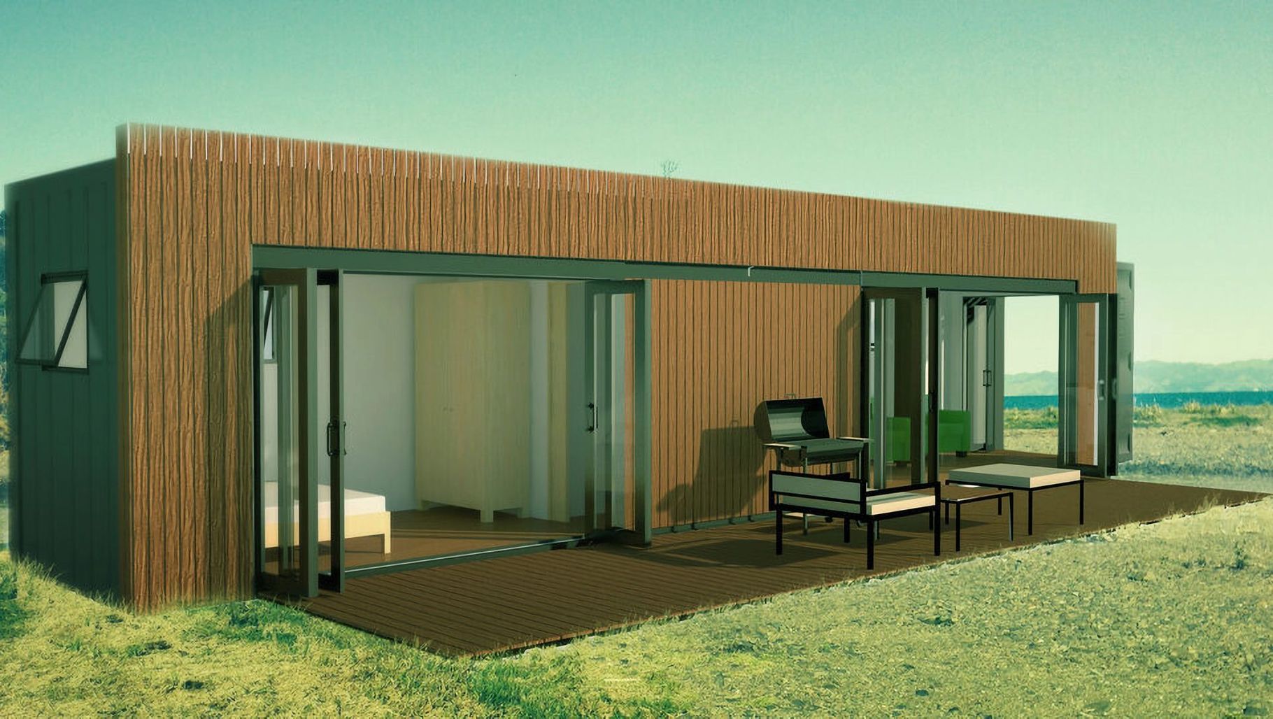 ArchiPro Project Summary - Innovative prefabricated container homes designed for Bach Brothers Limited NZ, showcasing modern architecture and sustainable practices, completed in 2014 to attract investors for a new startup focused on repurposed shipping container baches.