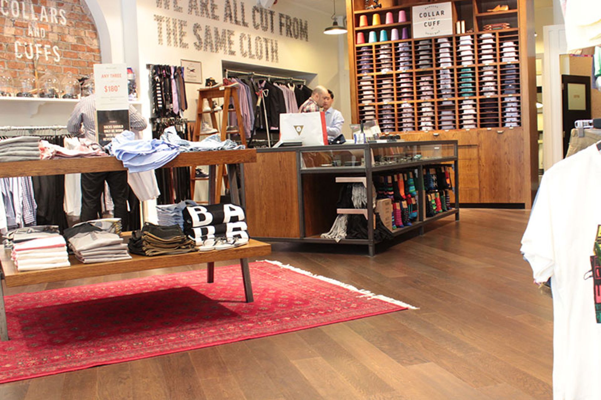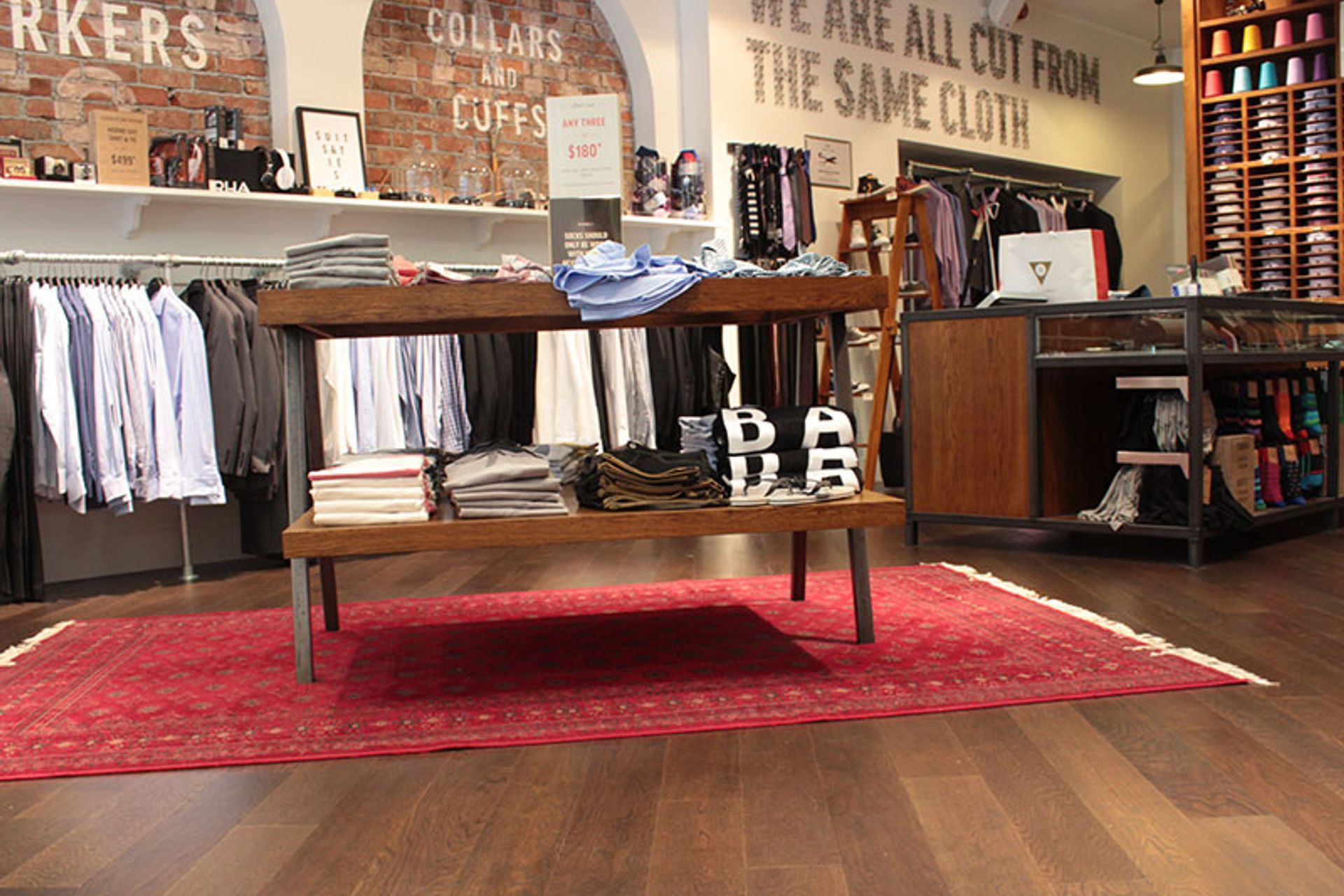 ArchiPro Project Summary - Barkers CBD features a modern boutique aesthetic with elegant wood flooring and stylish varnish accents.