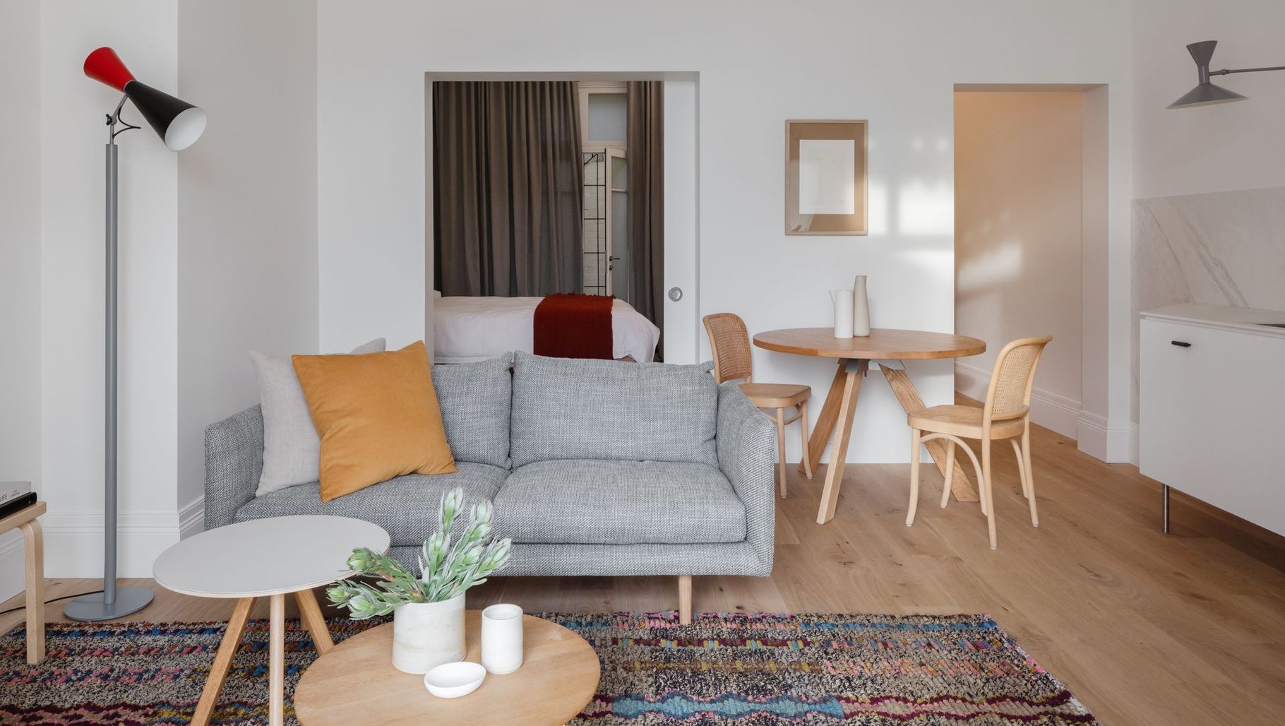 ArchiPro Project Summary - A beautifully designed one-bedroom basement apartment in a heritage-listed building, featuring unexpected brightness and stunning views of Sydney's skyline.