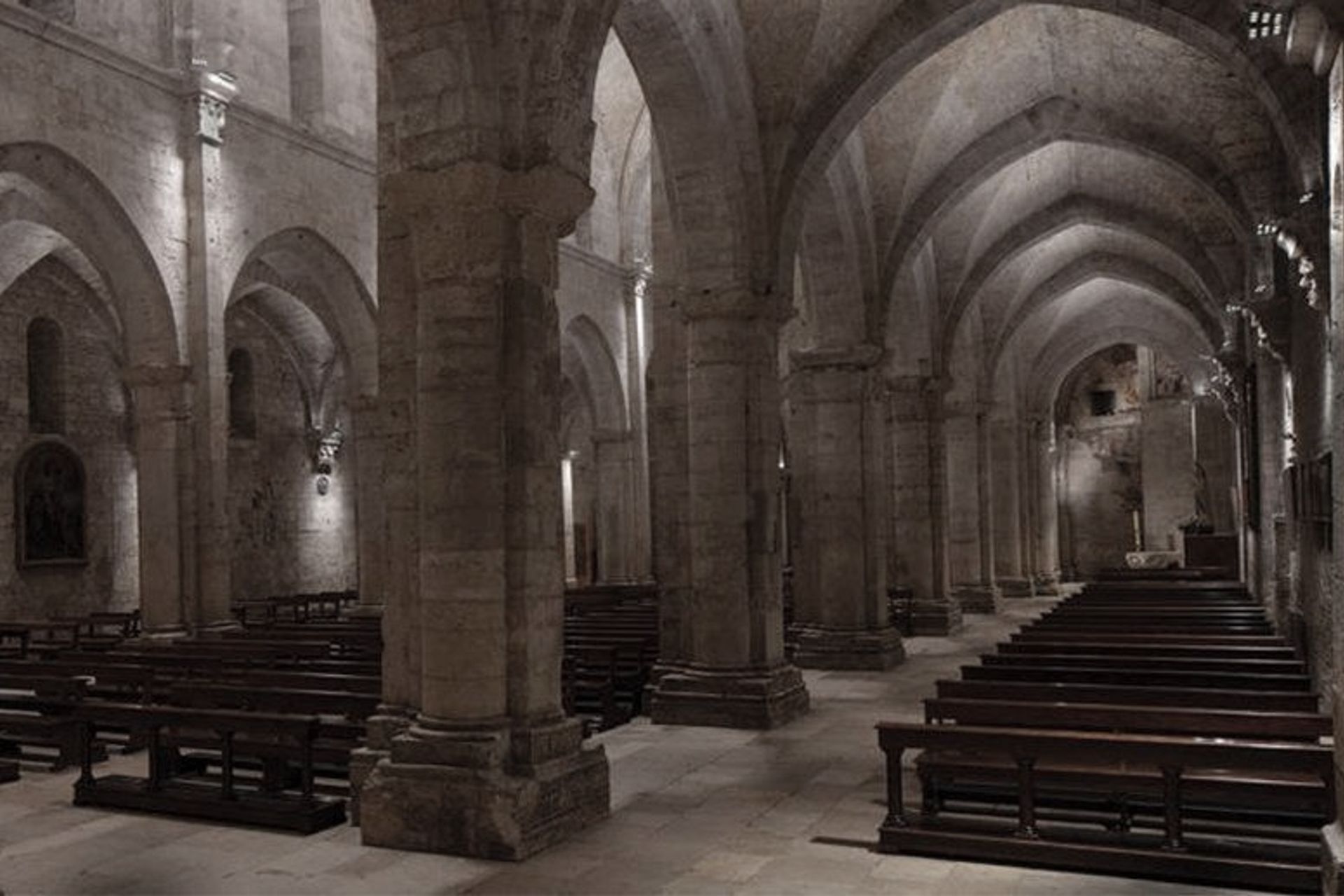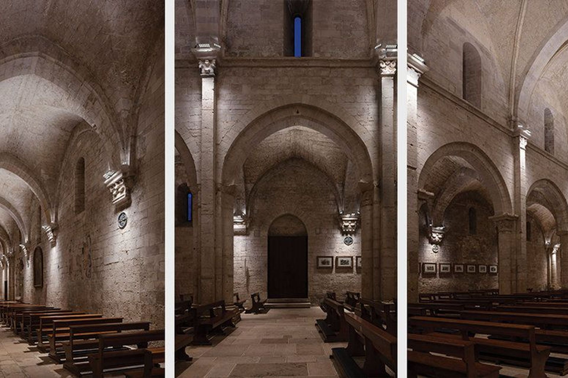 ArchiPro Project Summary - The Basilica of the Holy Sepulchre in Barletta, Apulia, showcases a rich history of architectural evolution since the 11th century, featuring a recent lighting project that enhances its stunning frescoes and significant elements, including the presbytery's crucifix and altar.