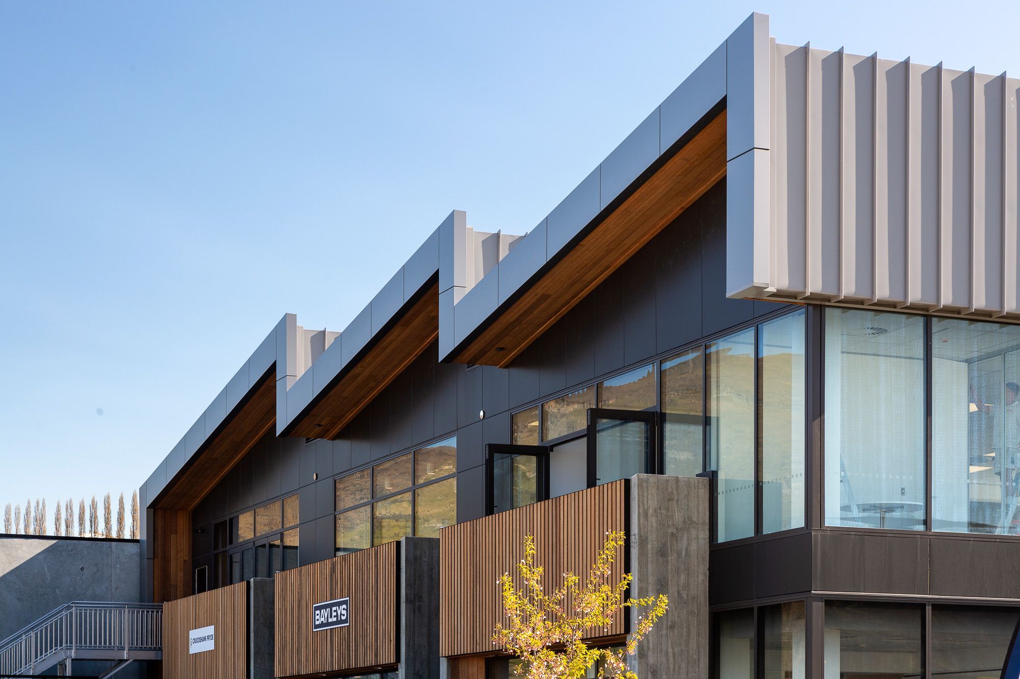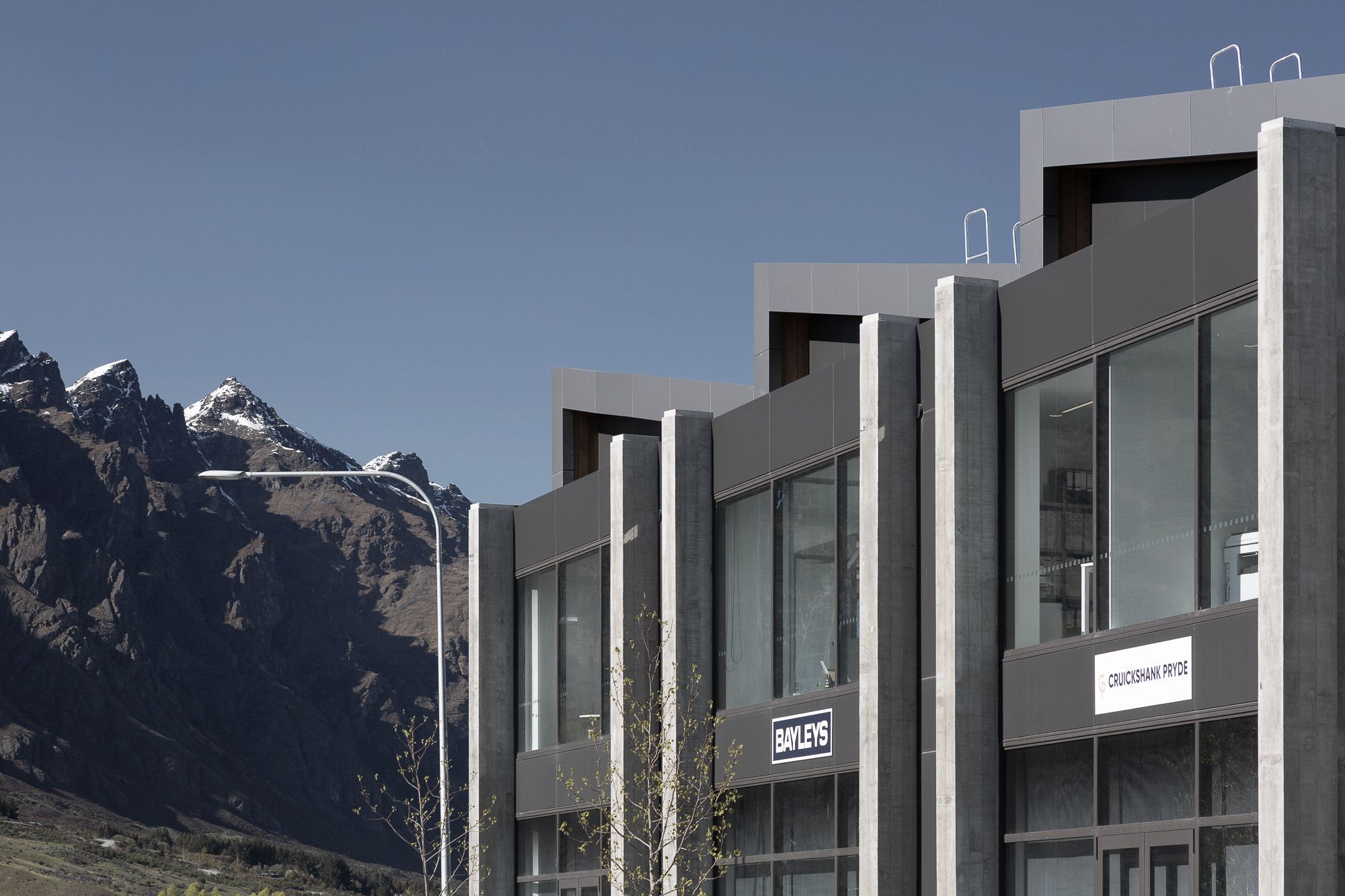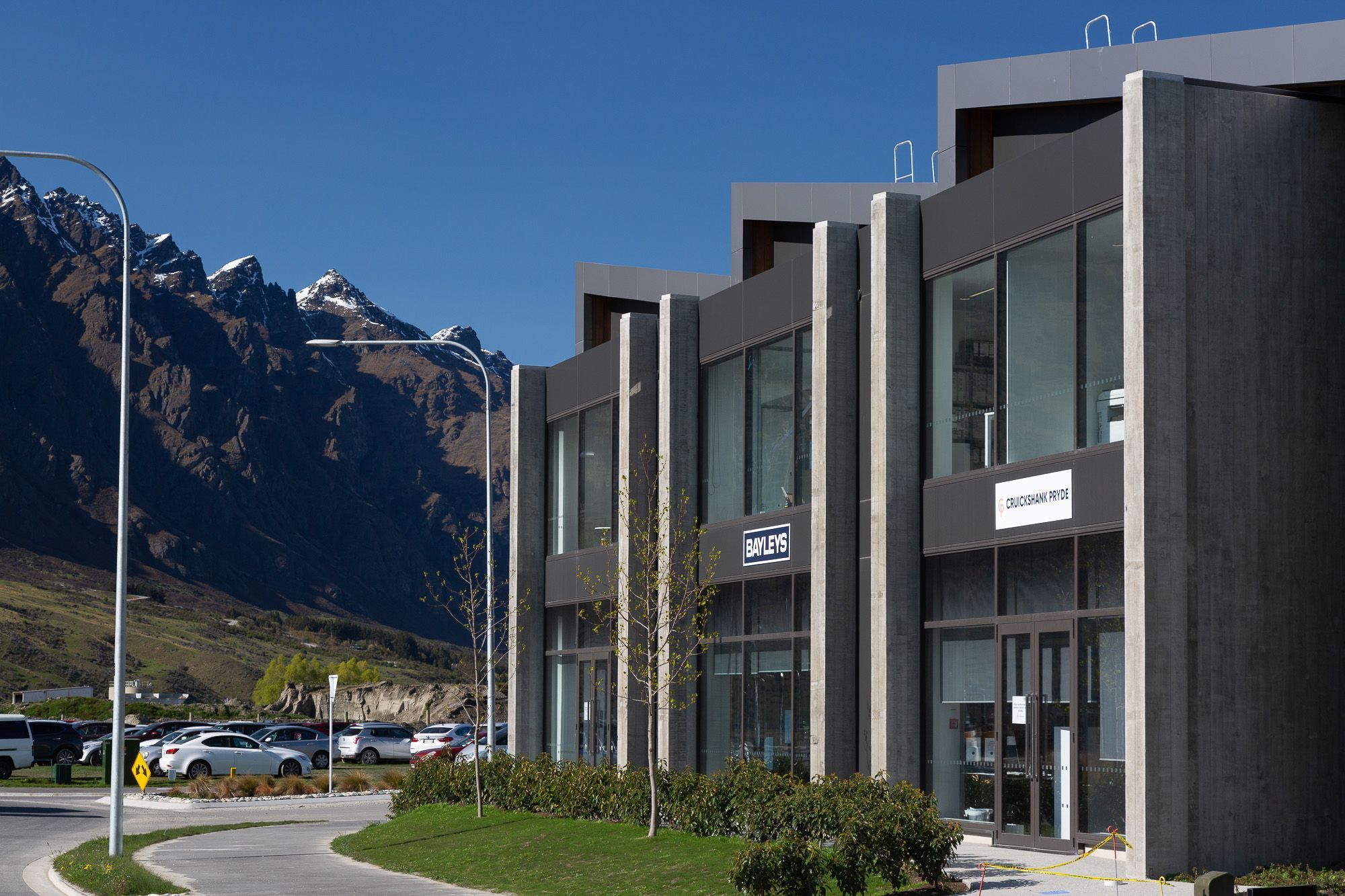 ArchiPro Project Summary - Two-level mixed-use commercial building in Frankton Flats featuring innovative construction techniques and a blend of industrial and commercial materials.