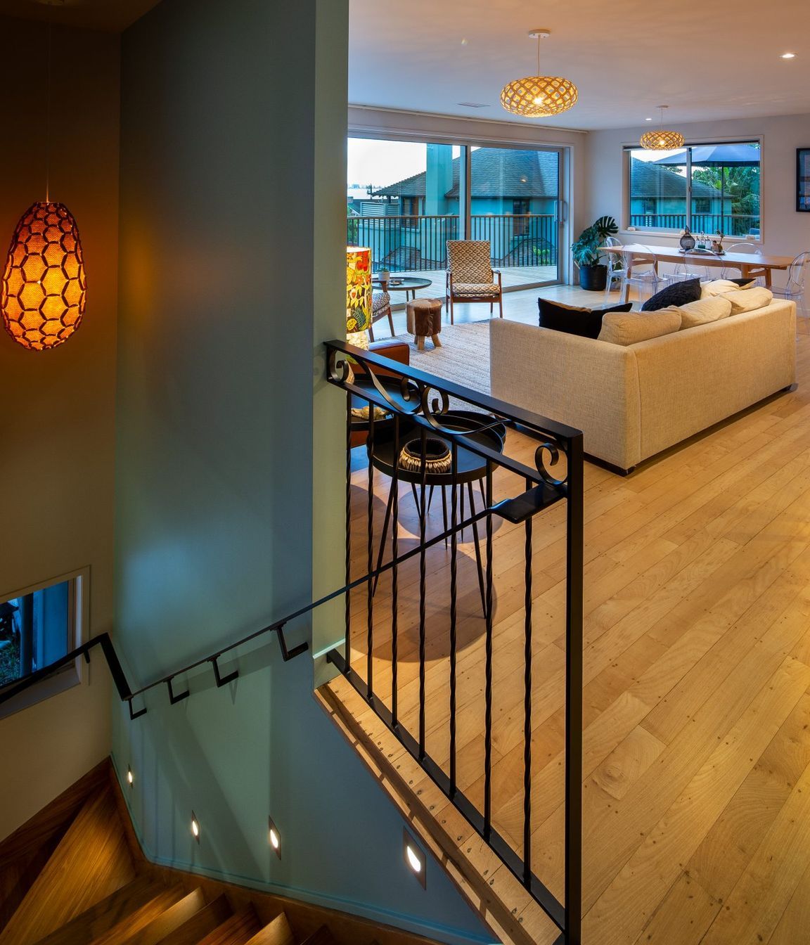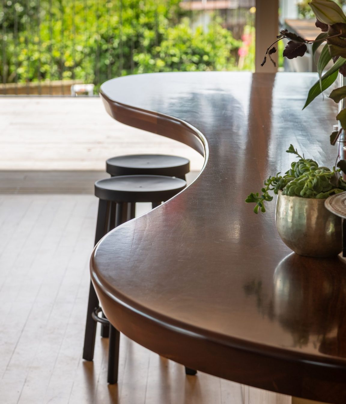 ArchiPro Project Summary - Transformation of a 1960s home into a vibrant, open-plan coastal residence, featuring a spacious curved deck and custom-designed landscaping, joinery, and interiors for a warm and inviting atmosphere.
