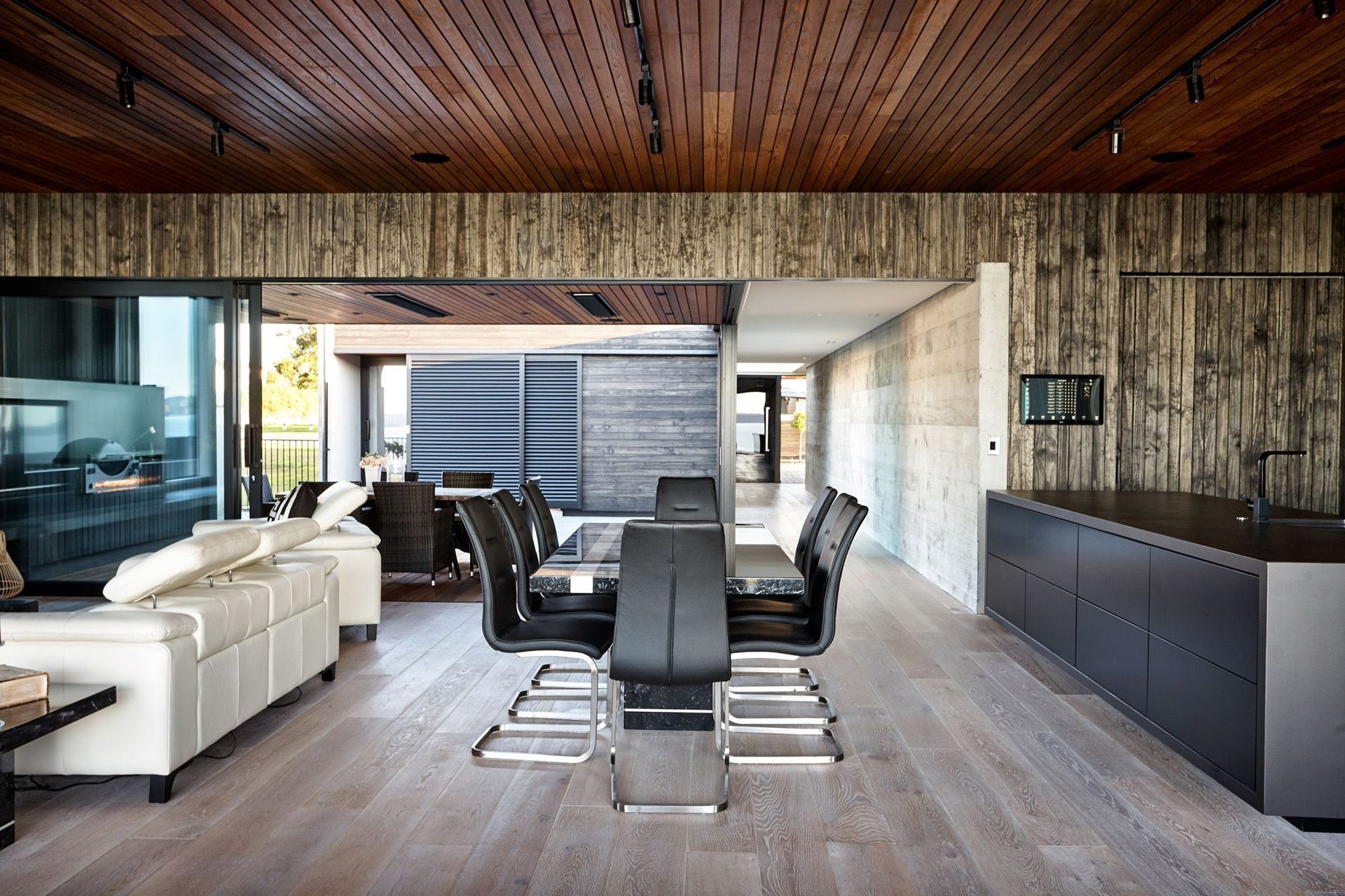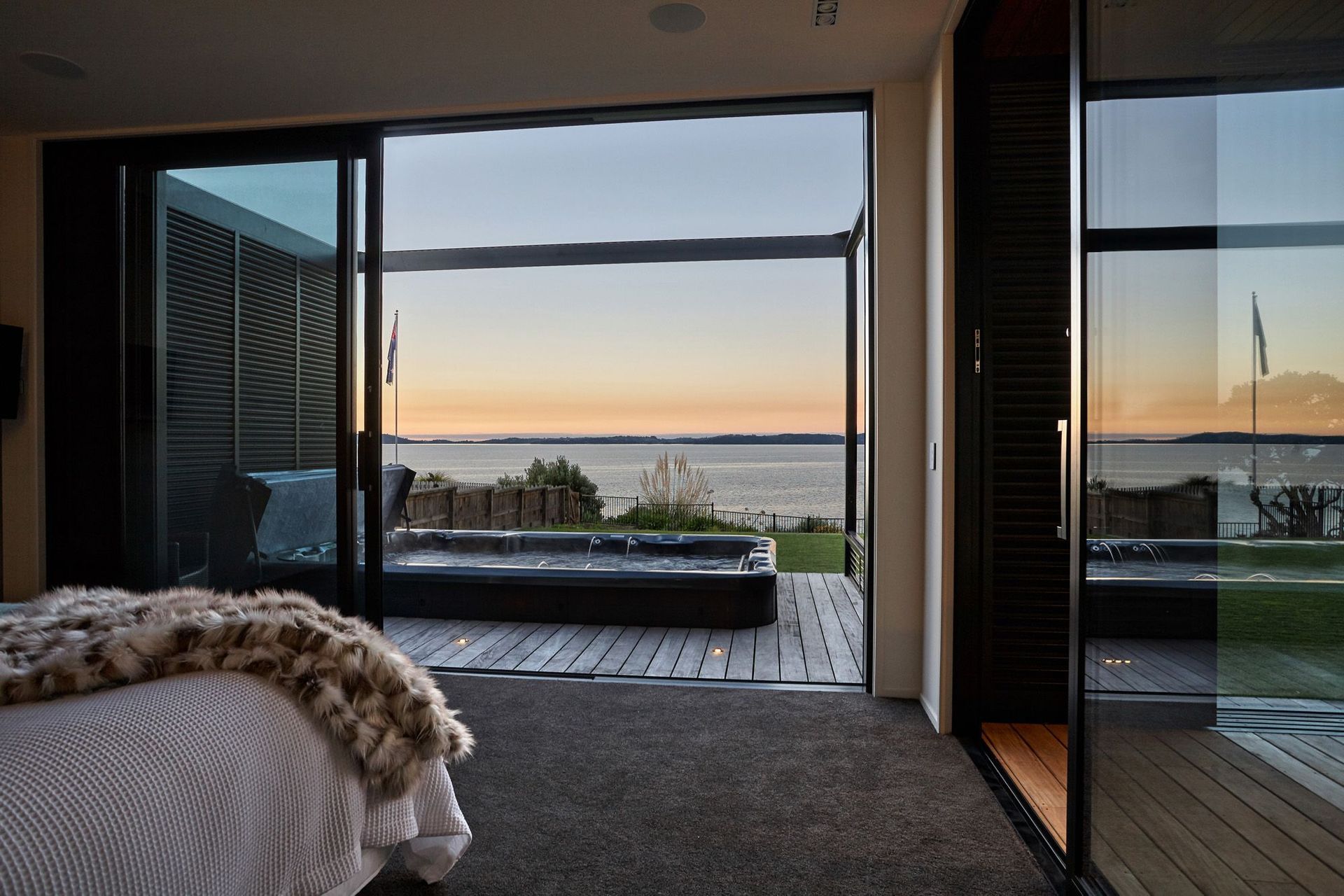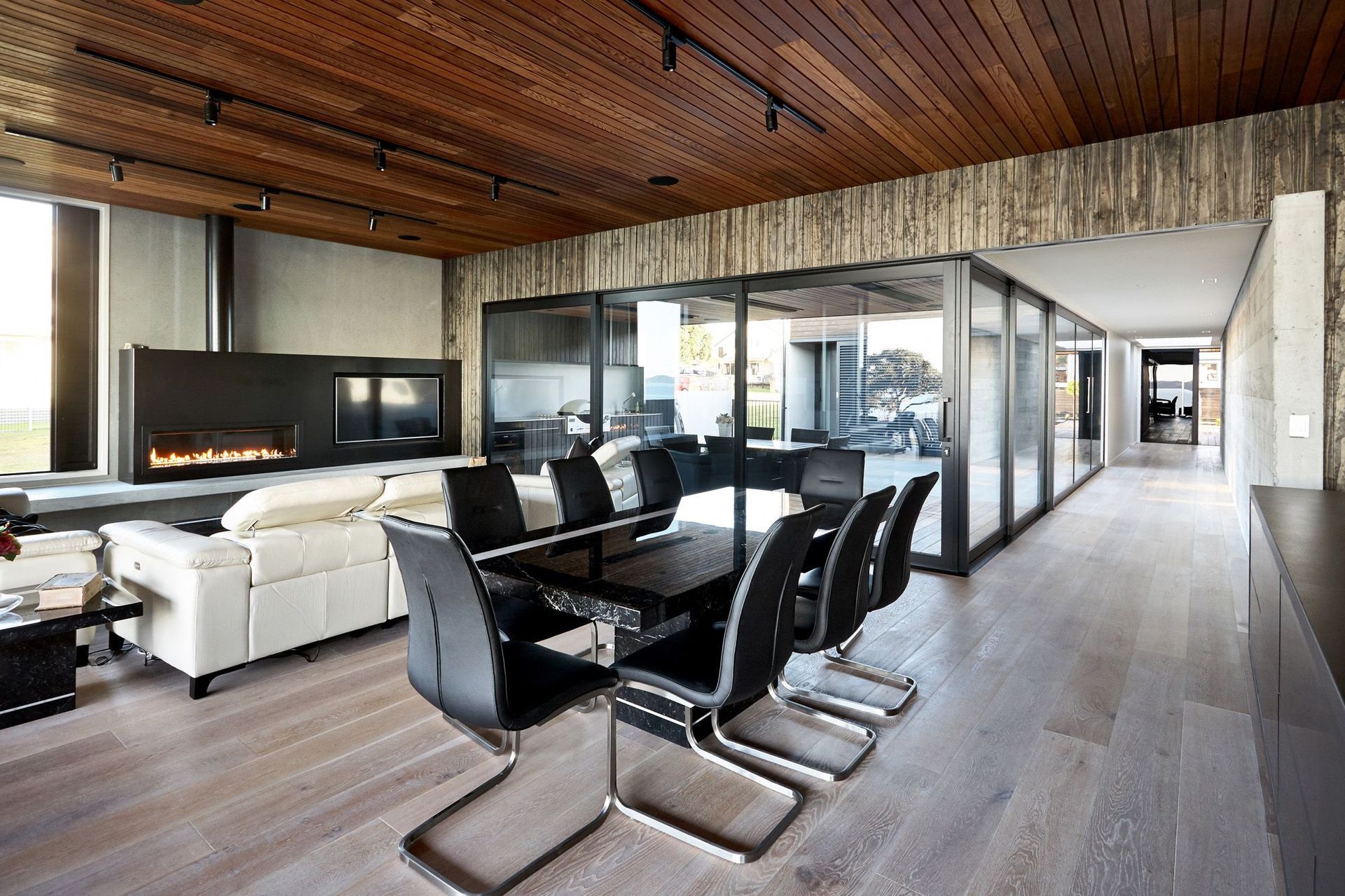 ArchiPro Project Summary - Elegant home in Beachlands, Auckland featuring breathtaking views, smart outdoor spaces, and a harmonious blend of materials including glass, concrete-tilt panels, and Accoya timber cladding.
