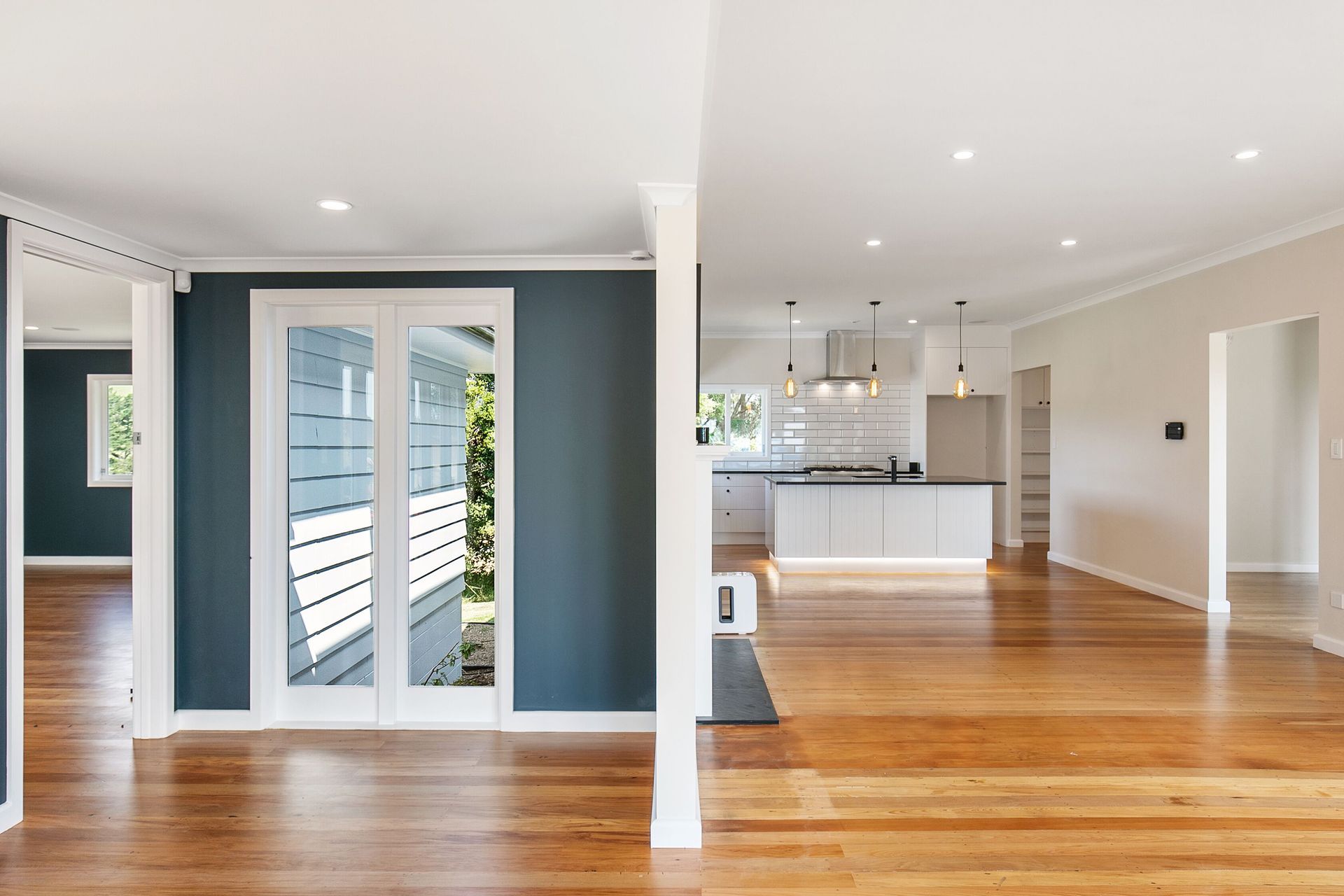 ArchiPro Project Summary - Beachlands Farm House: A $1.2m design and build project featuring a modern renovation of a 250 m2 farmhouse, complete with stunning views of Hauraki Gulf and Rangitoto, enhanced insulation, new Rimu flooring, and state-of-the-art home automation and entertainment systems.