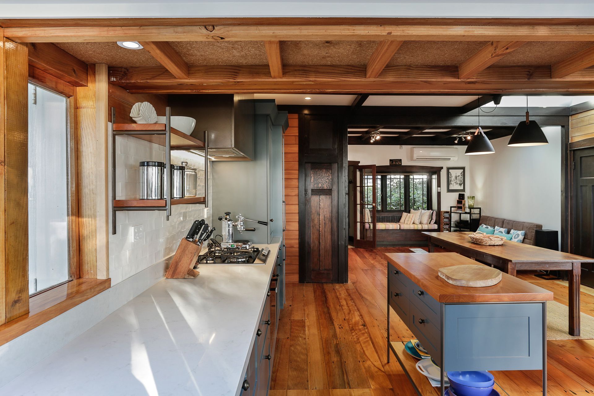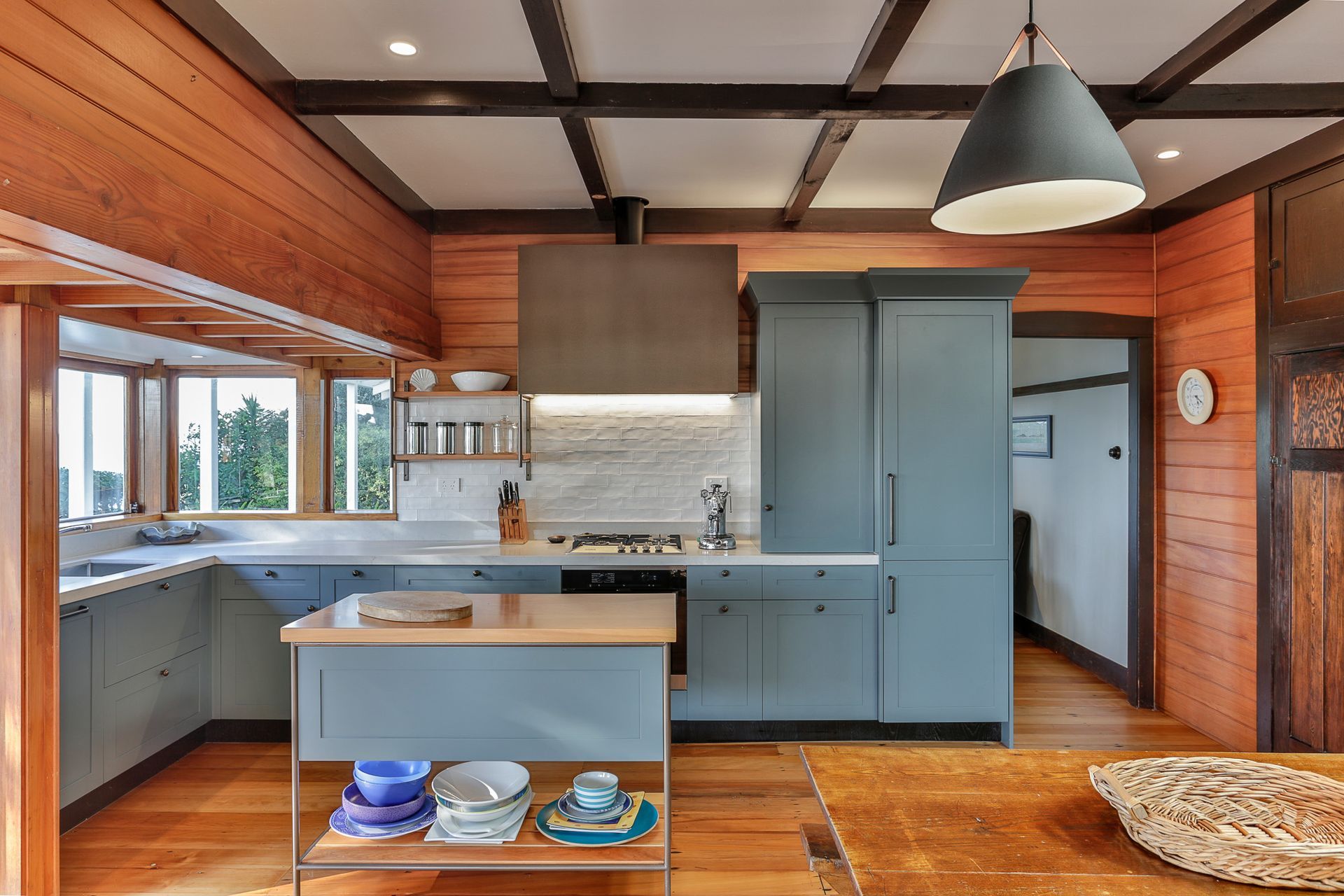 ArchiPro Project Summary - A beautifully revamped kitchen in an arts-and-crafts seaside getaway, maximizing space and functionality while preserving the home's original character with thoughtful design elements and a warm, inviting aesthetic.
